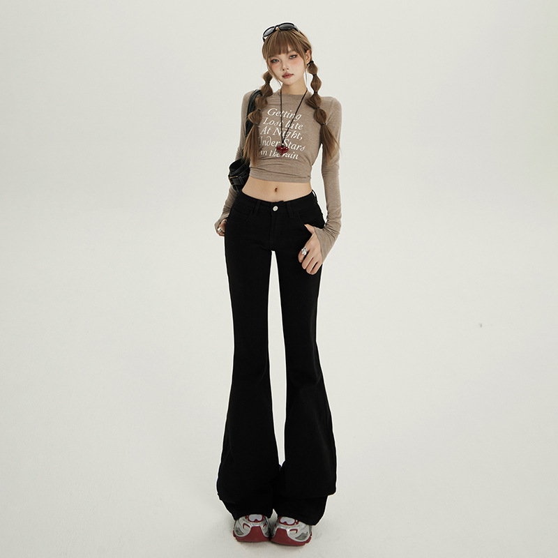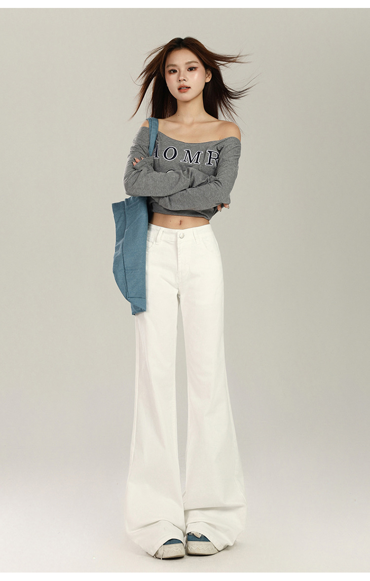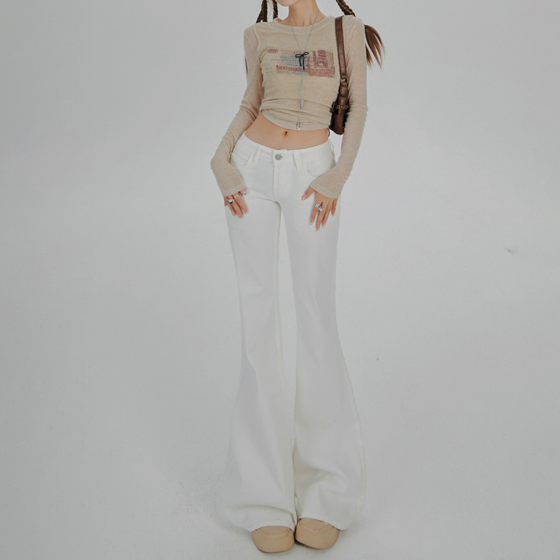 흰색 레깅스 없는 부츠컷 청바지 여성용 가을 겨울 기모 로우 웨이스트 슬림핏 신축성 만능 말굽형 바닥 길이 바지