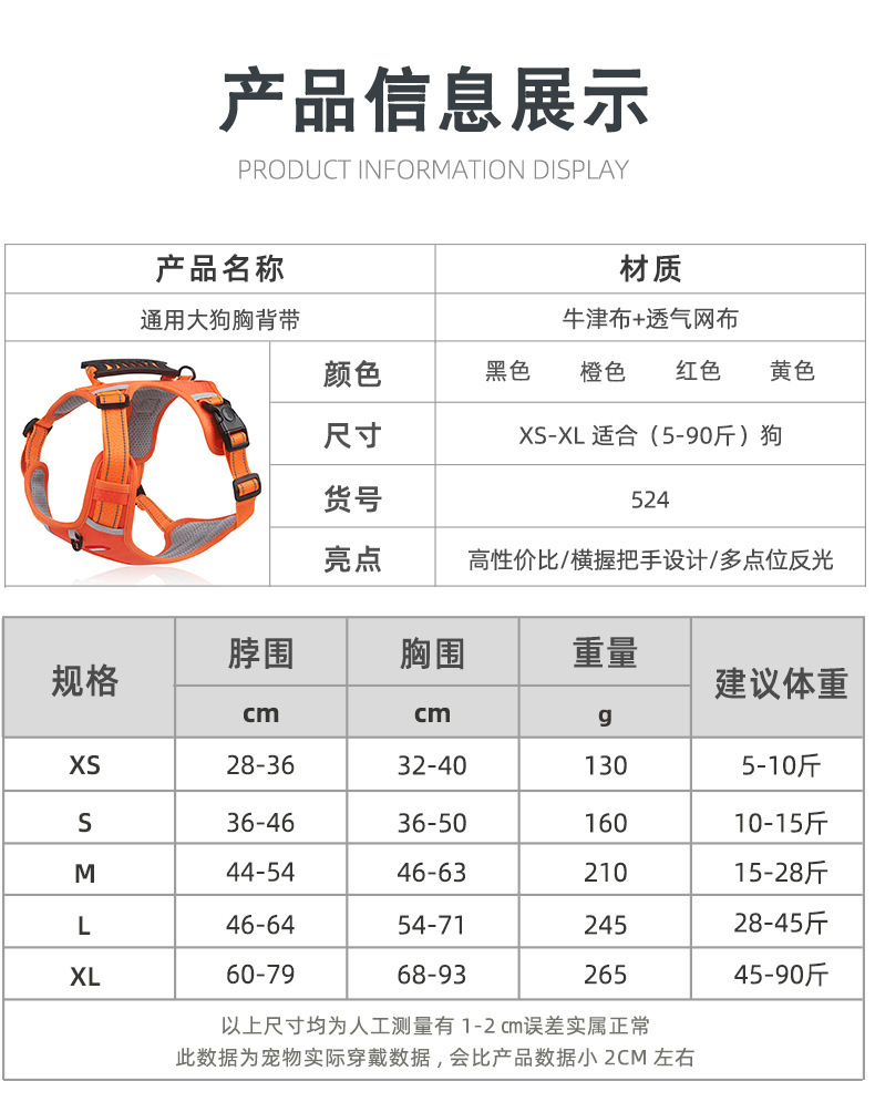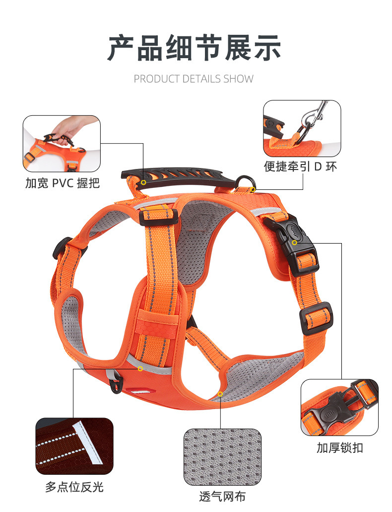 국경 간 새로운 애완 동물 가슴 조끼 반사 큰 개 가슴 스트랩 폭발 방지 개 견인 로프 도매스토어 가기