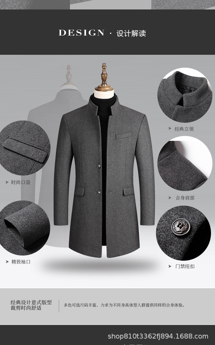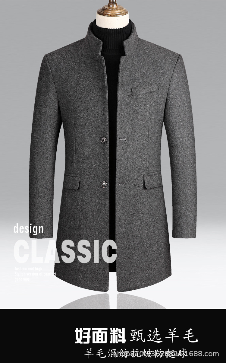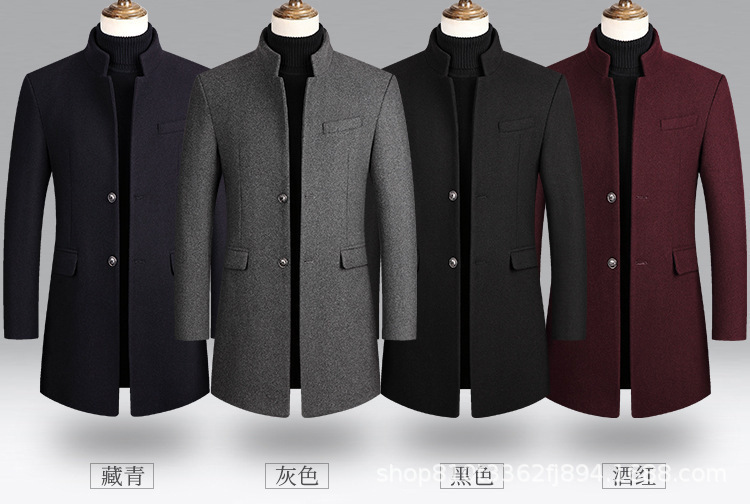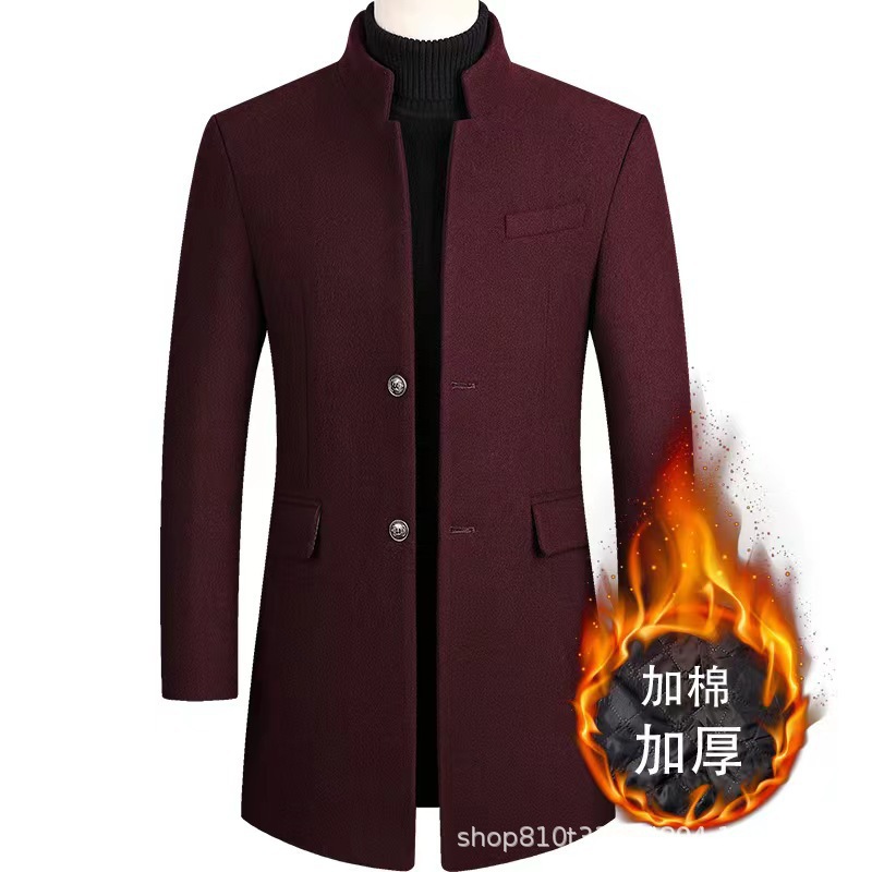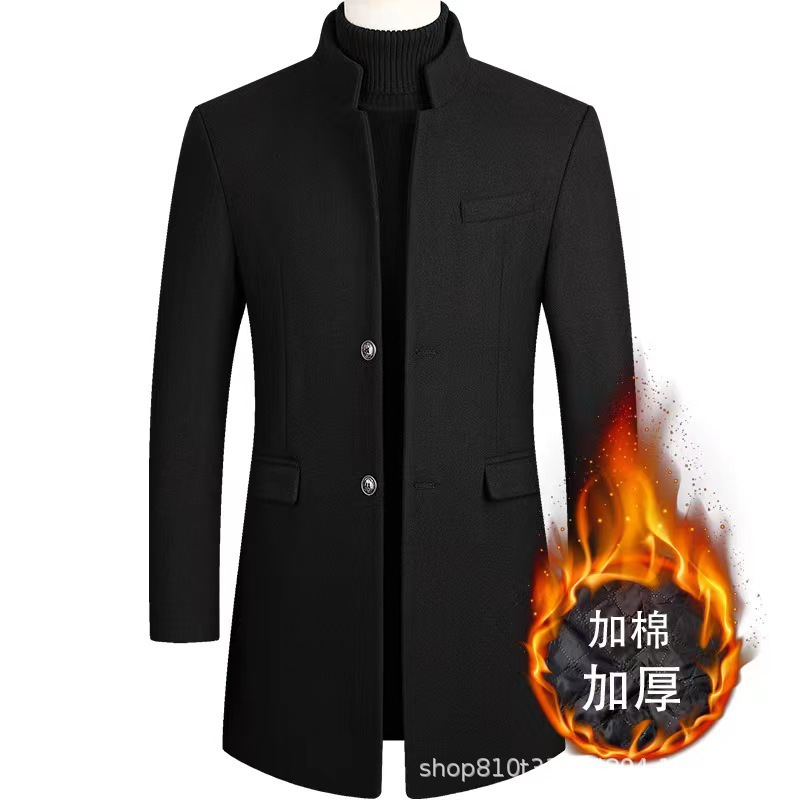 2024 가을과 겨울 남자 모직 코트 긴 윈드 브레이커 누빔안감 남자 코트 아빠 슬림 피트 중년스토어 가기