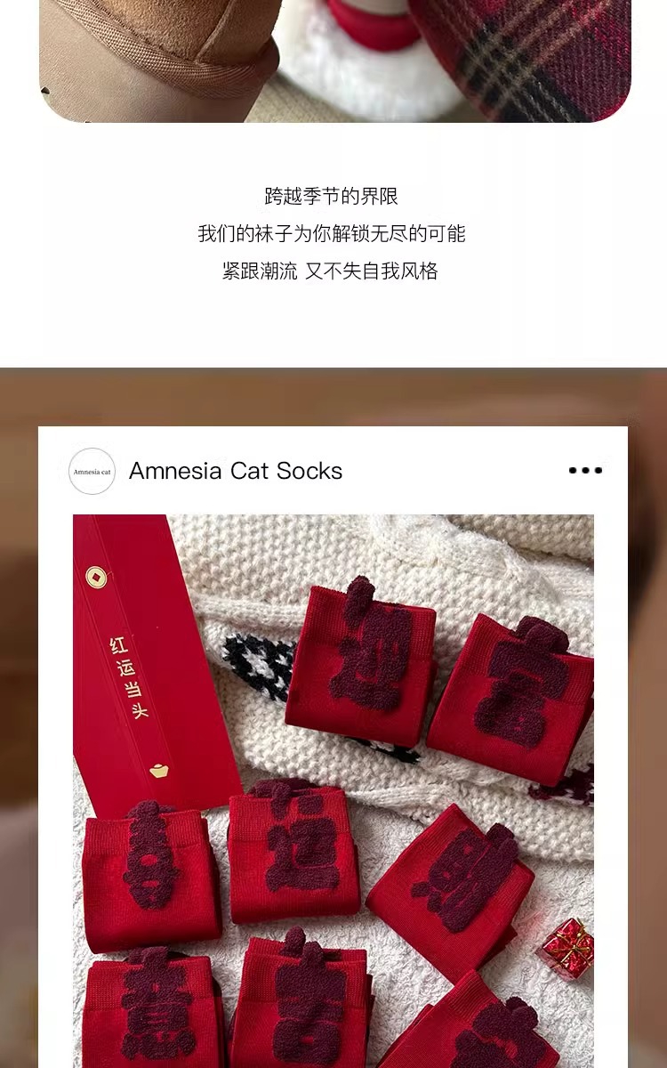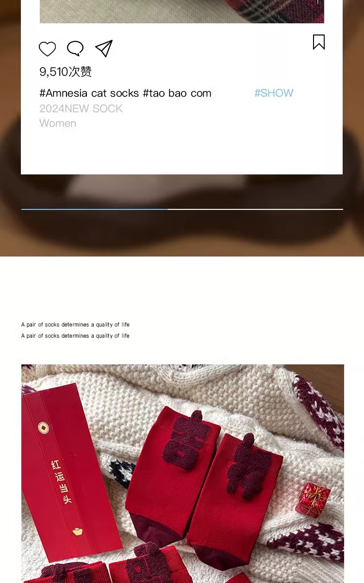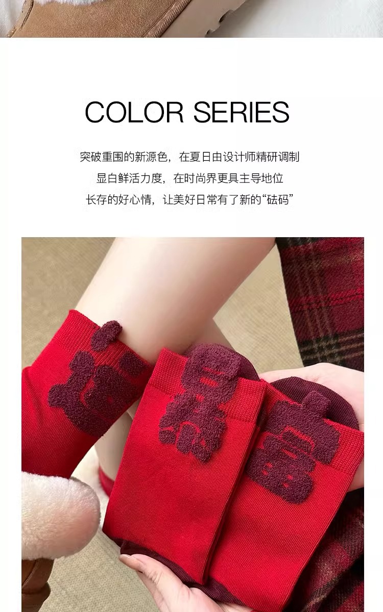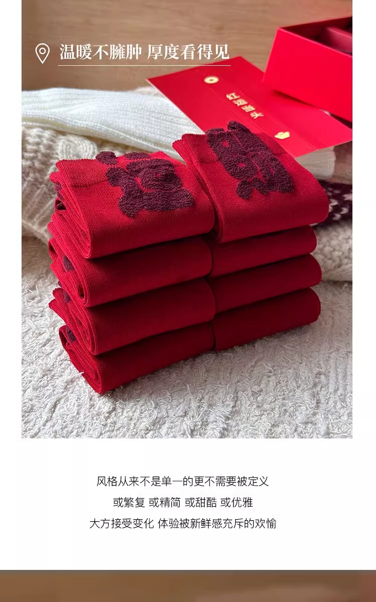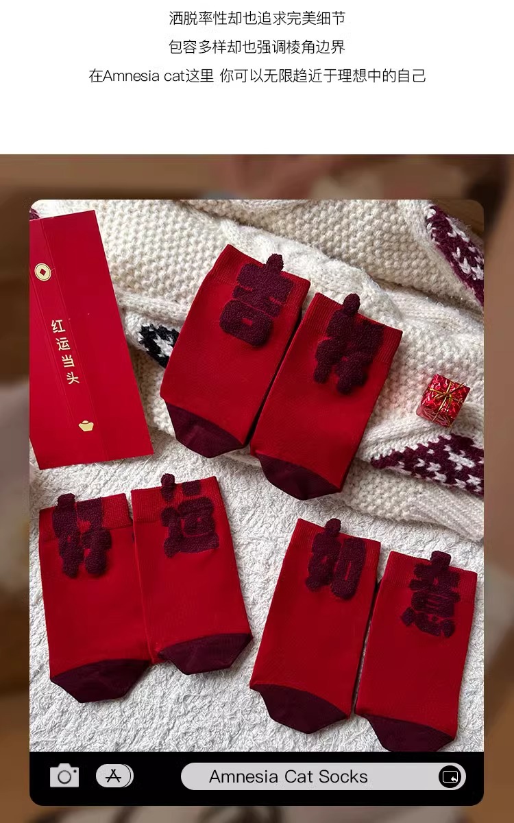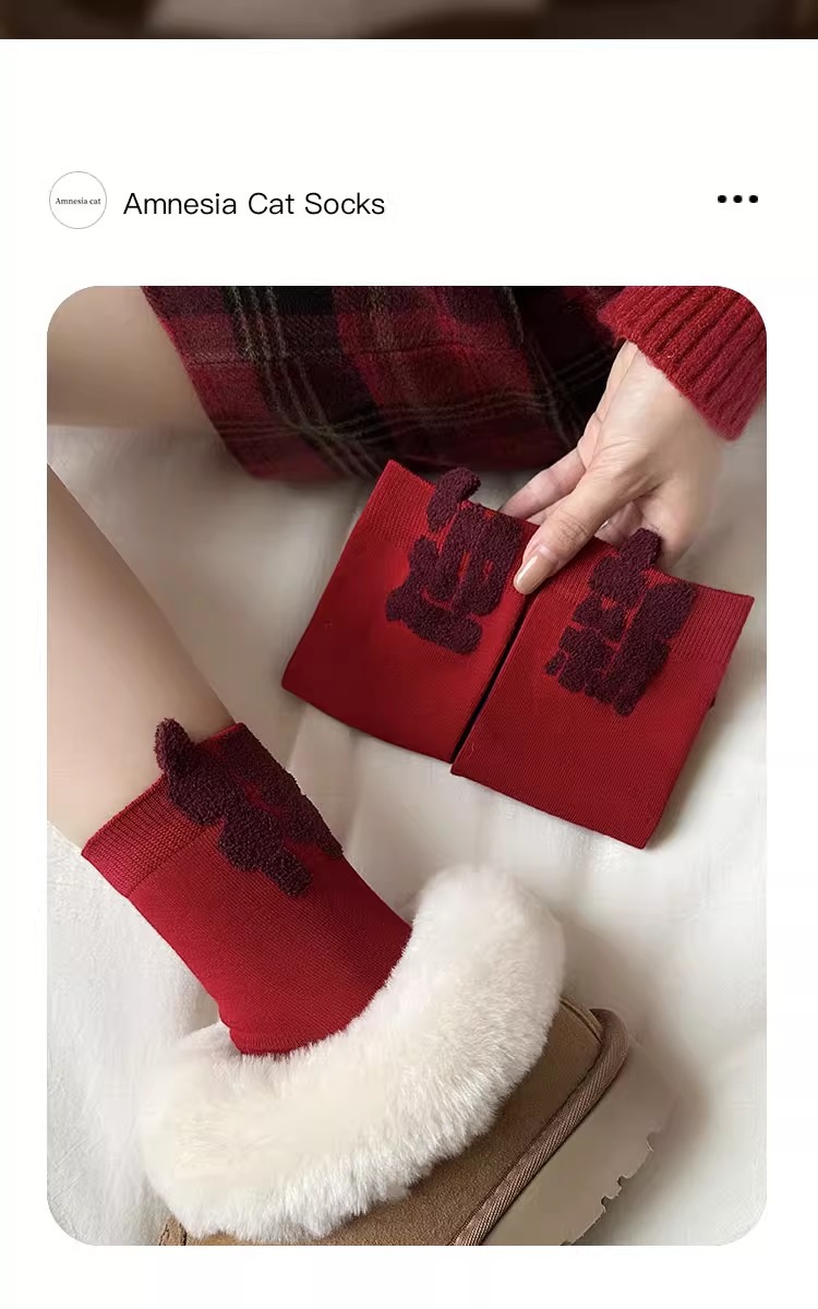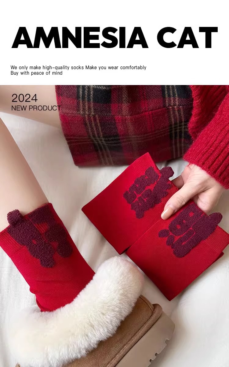 새해 포춘 굿럭 레드삭스 ~ 2025 올해 부자 코튼 양말 가을/겨울 여성 성격 AB 입체 캐릭터