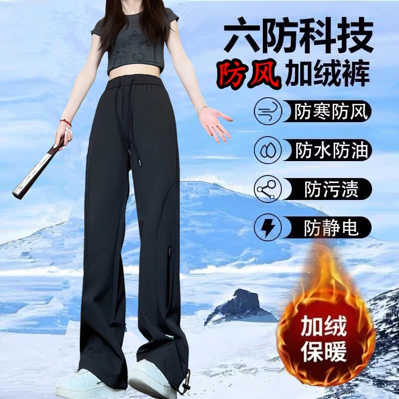 기모 코일 바지 여자의 가을과 겨울 새로운 직선 등산 바지 플러스 사이즈 캐주얼 스포츠 바지 방풍 방수 충전 바지