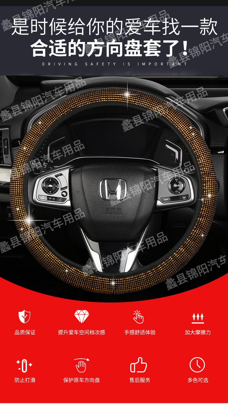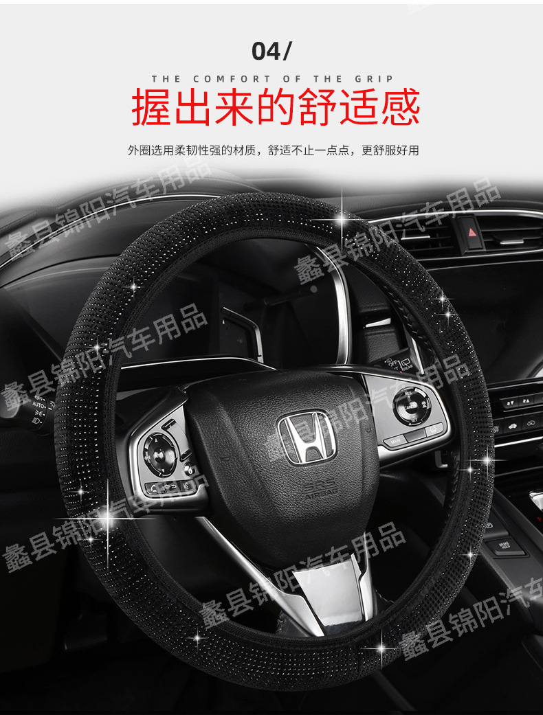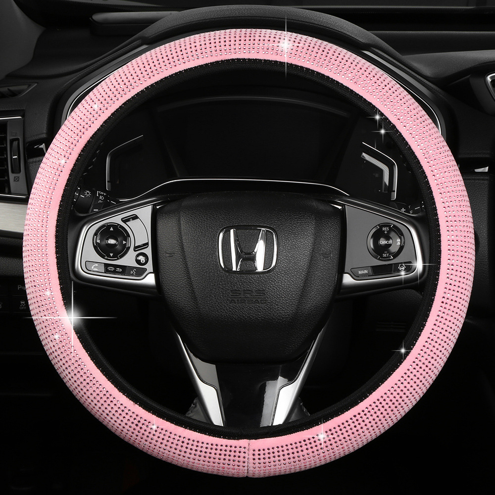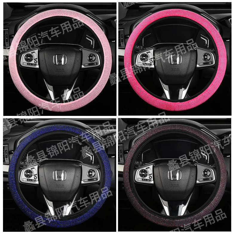 국경 간 풀 드릴 스티어링 휠 커버 4 계절 보편적 인 내부 링 다이아몬드 자동차 핸들 커버 유행 온라인 인기있는 여성의 미끄럼 방지 핸들 커버