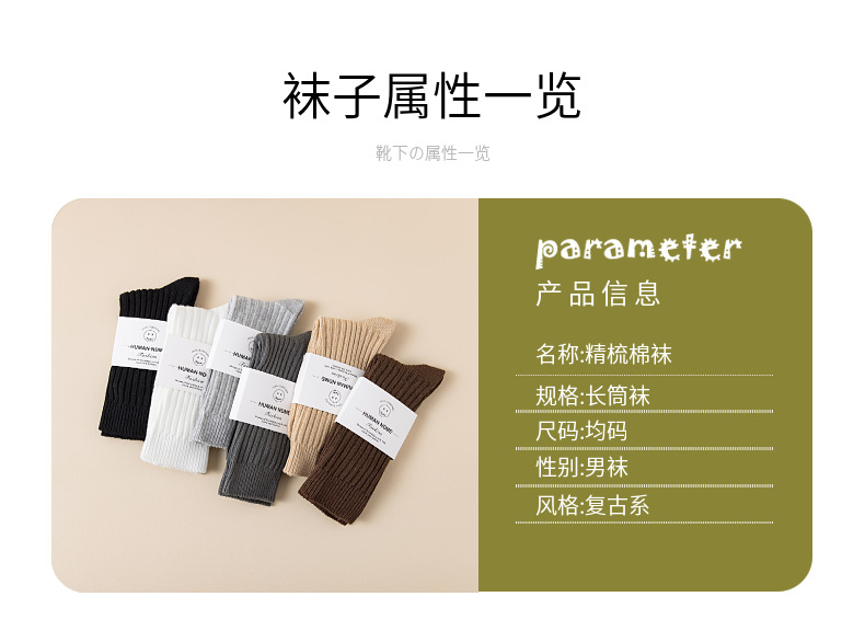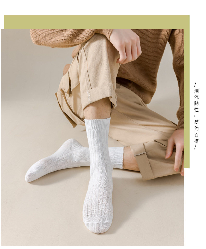 두꺼운 라인 더블 바늘 양말 남성용 블랙 화이트 롱 튜브 코튼 양말, 세련된 가을과 겨울 새로운 마틴 부츠 높은 양말