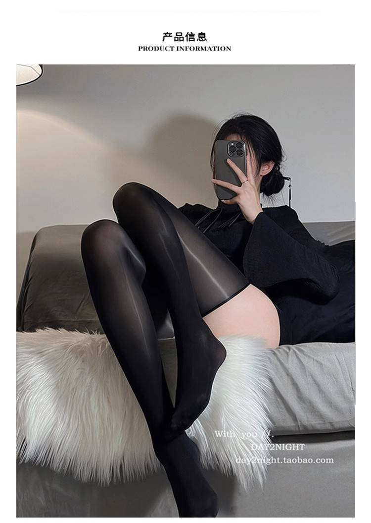 인터넷 유명 빈티지 오일 광택 실크 스타킹 반 무릎 블랙 실크 스타킹 블랙 안티 후크 실크 림리스 허벅지 양말