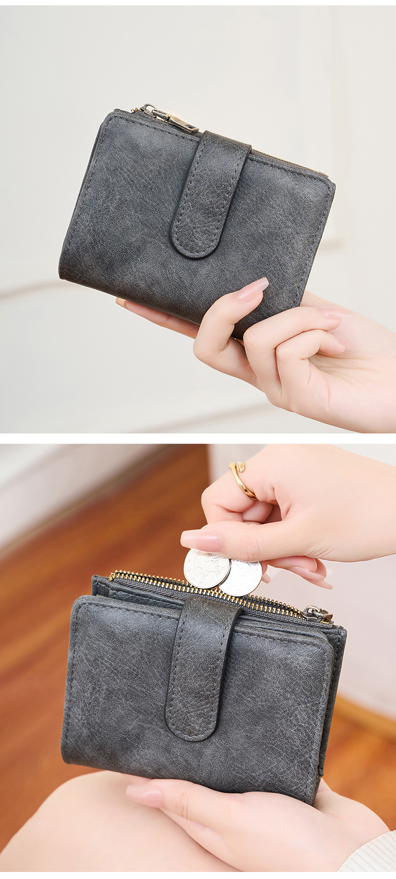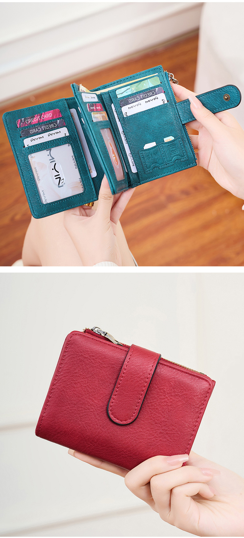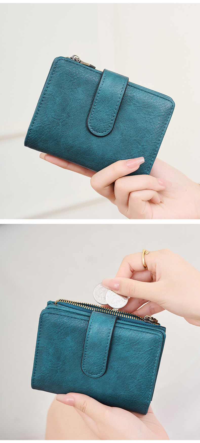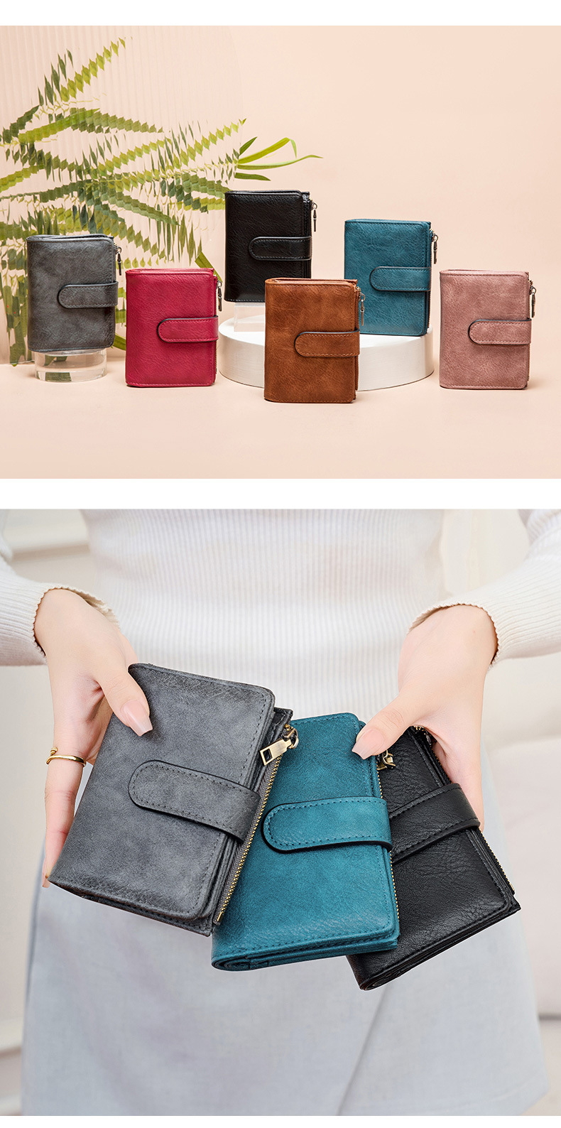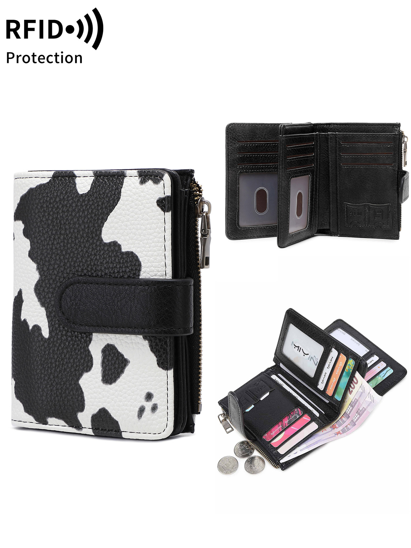 대외 무역 새로운 RFID 도난 방지 브러시 여성용 짧은 지갑 한국식 3 배 휴대용 클러치 간단한 단색 지갑스토어 가기