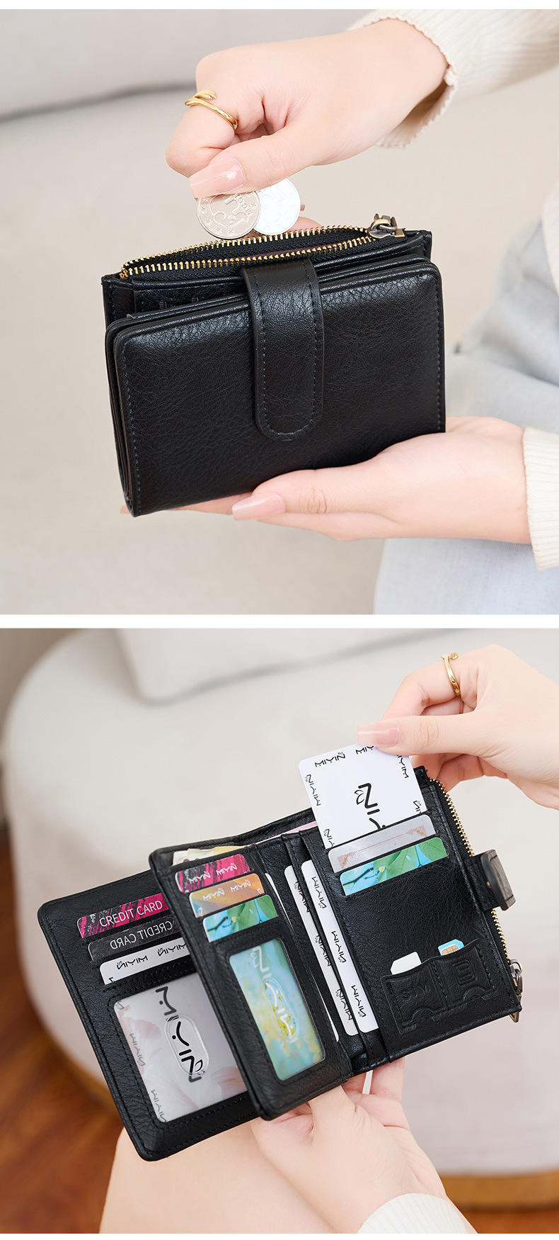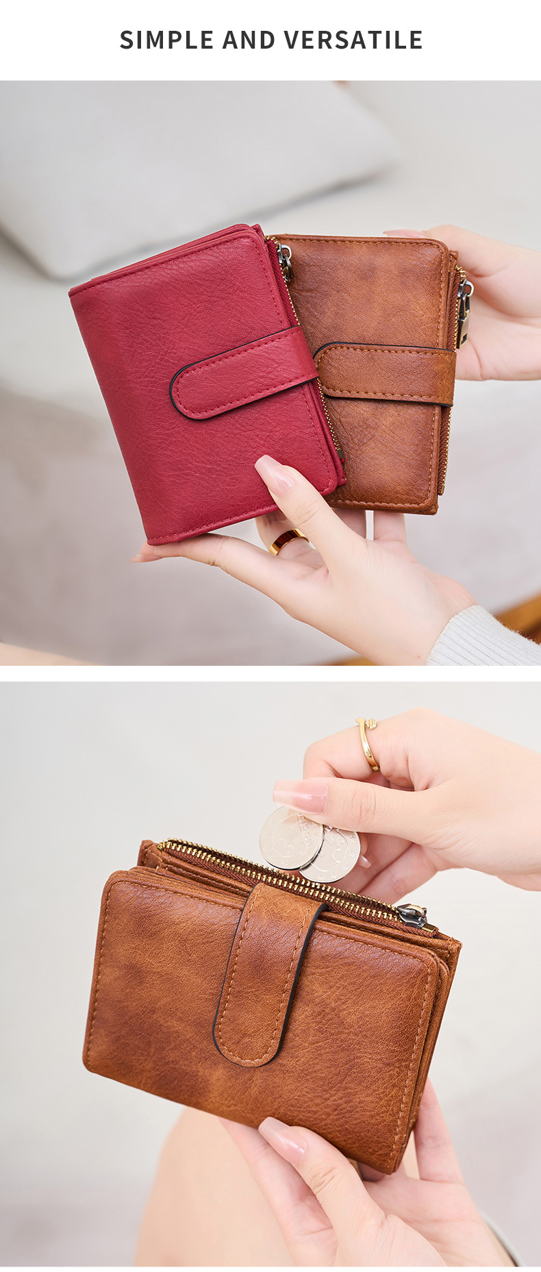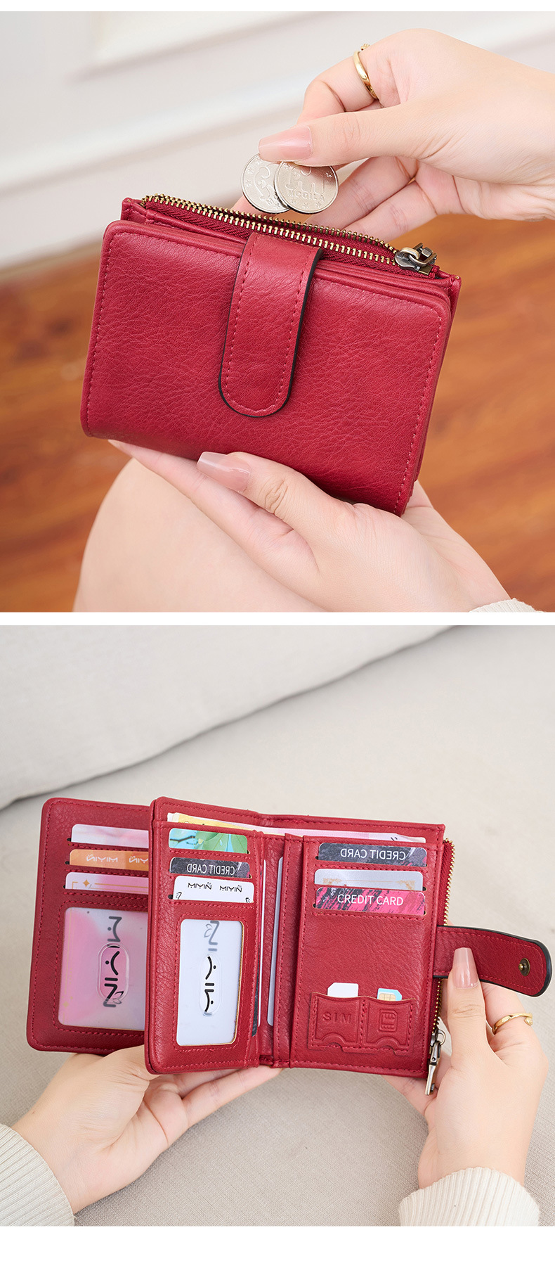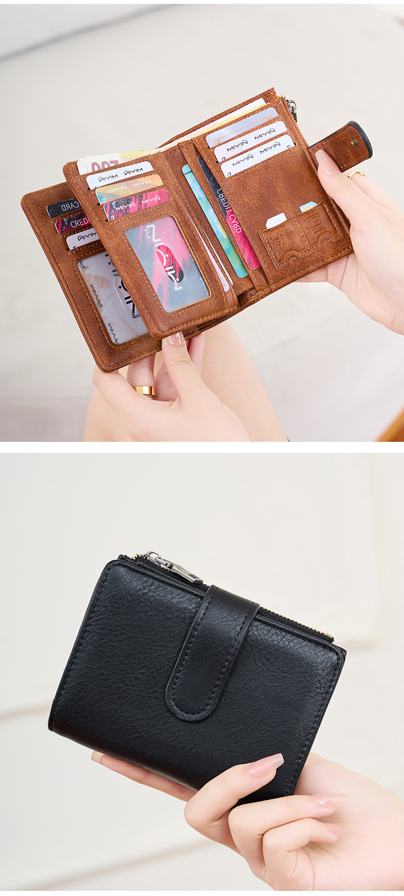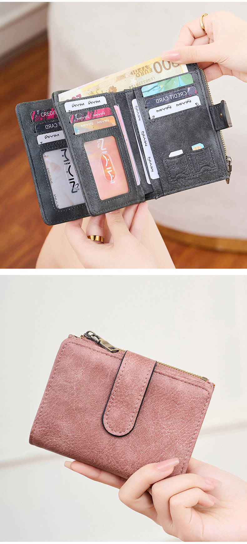 대외 무역 새로운 RFID 도난 방지 브러시 여성용 짧은 지갑 한국식 3 배 휴대용 클러치 간단한 단색 지갑스토어 가기