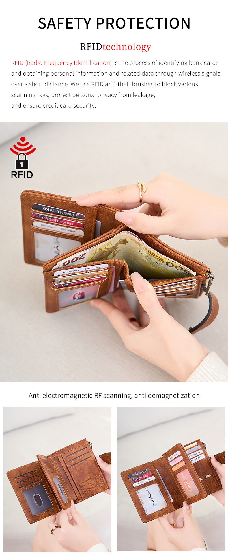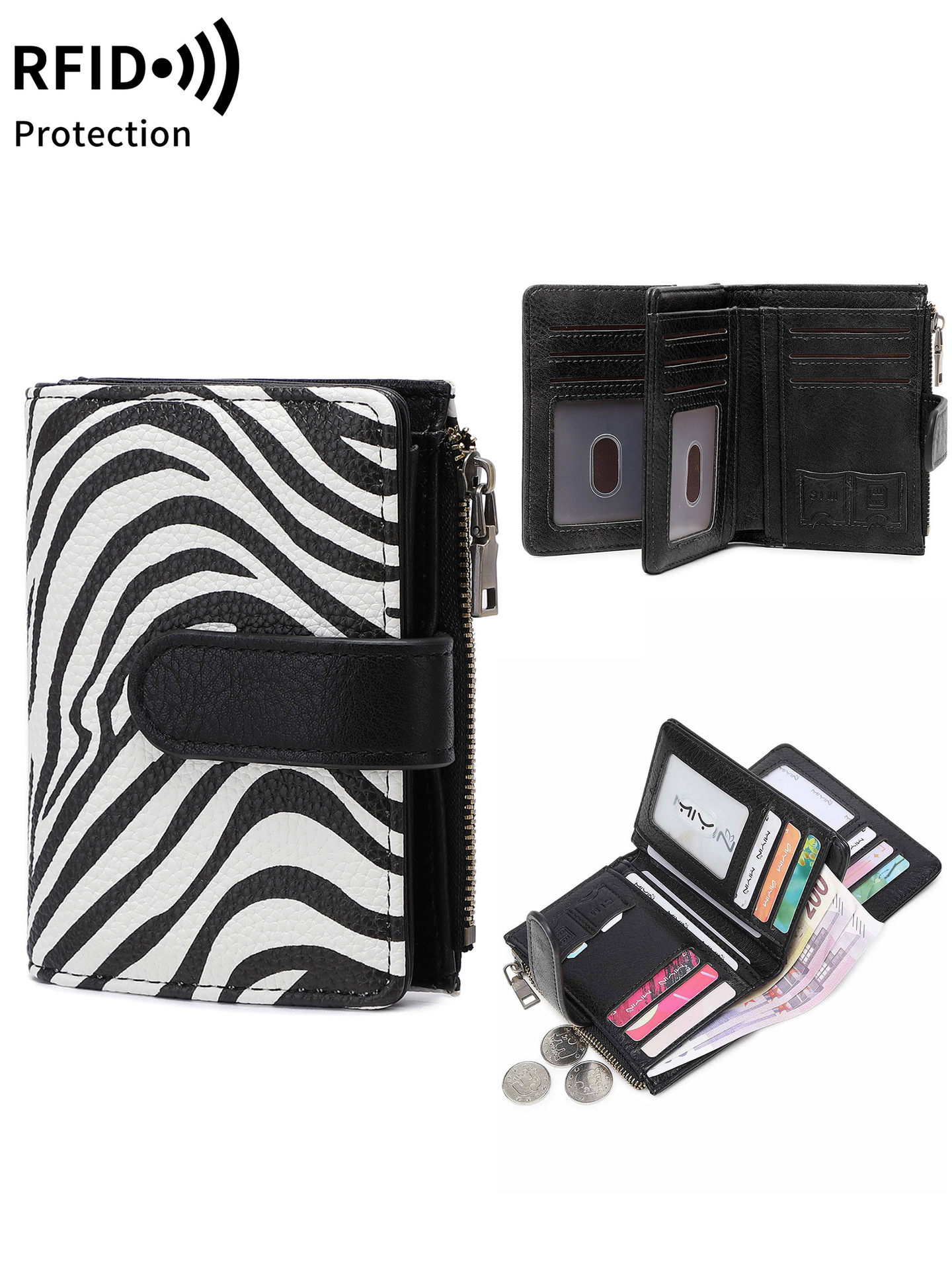 대외 무역 새로운 RFID 도난 방지 브러시 여성용 짧은 지갑 한국식 3 배 휴대용 클러치 간단한 단색 지갑