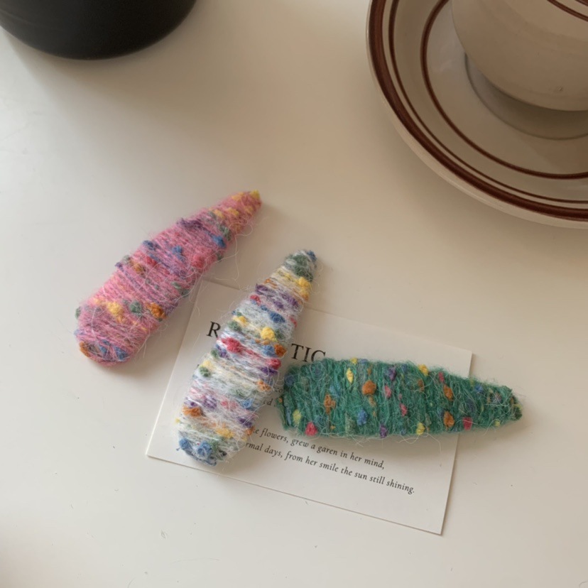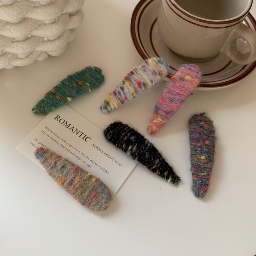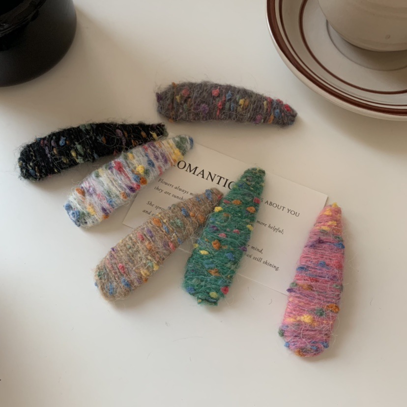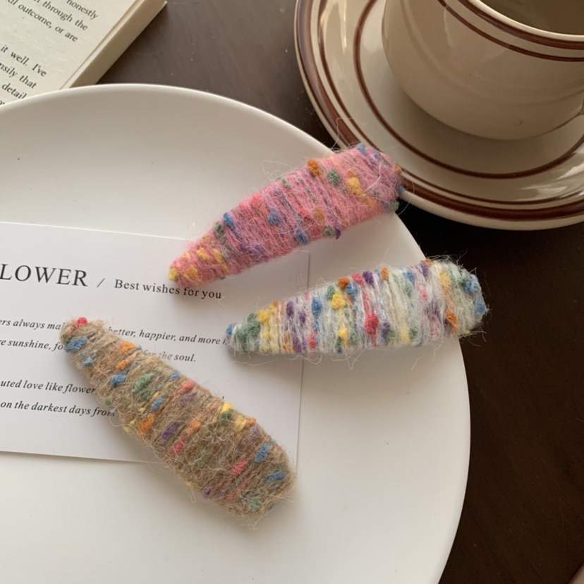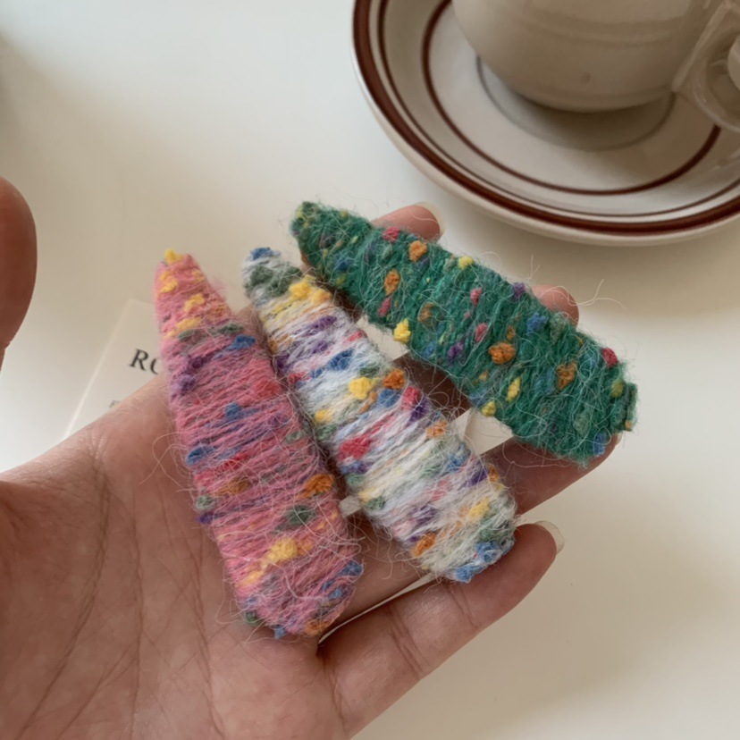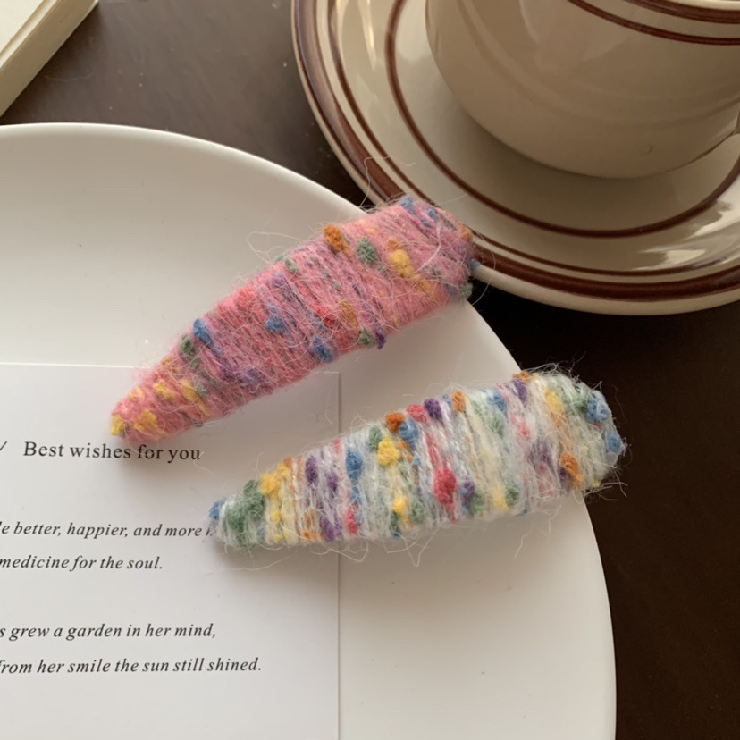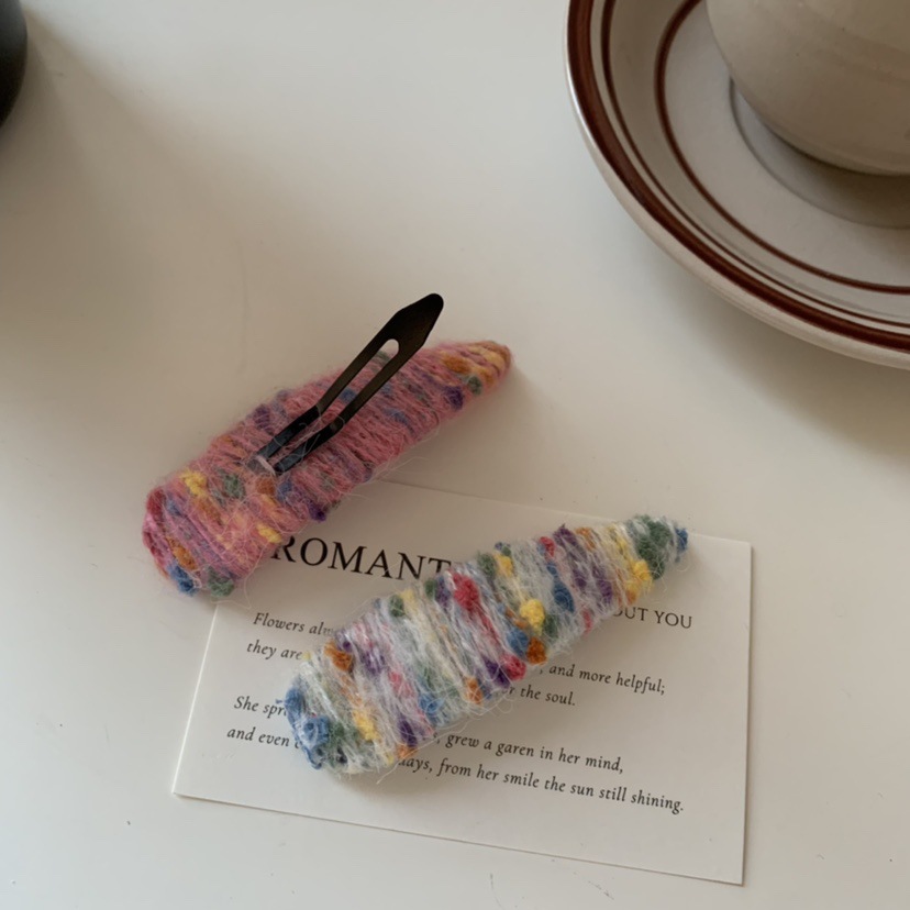 레인보우 컬러 샤넬 스타일 울 니트 헤어핀 BB 클립 손으로 짠 헤어핀 뱅 클립 고급 엣지 클립 헤어 액세서리