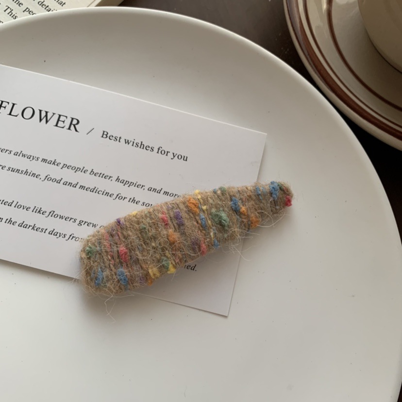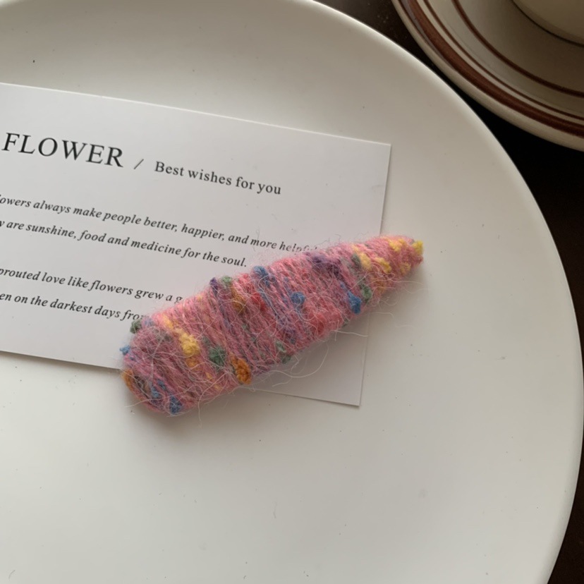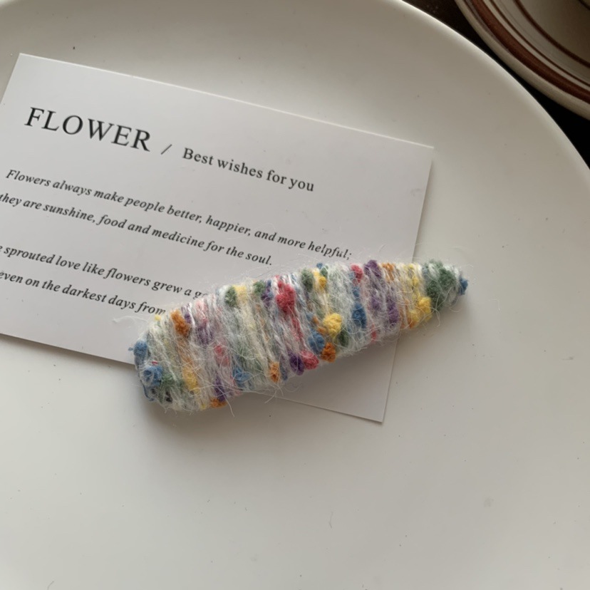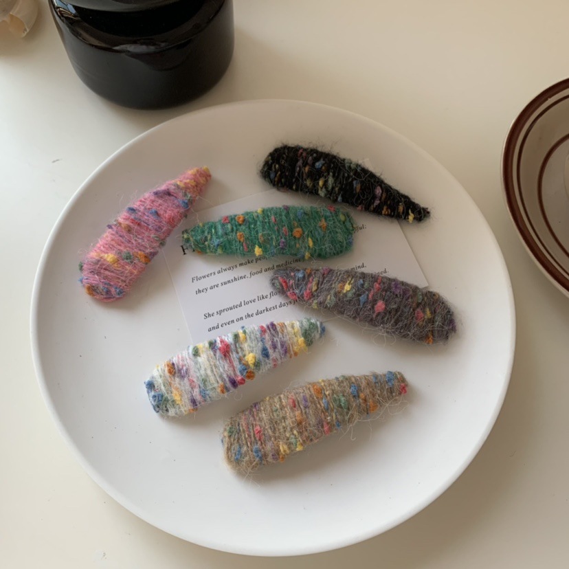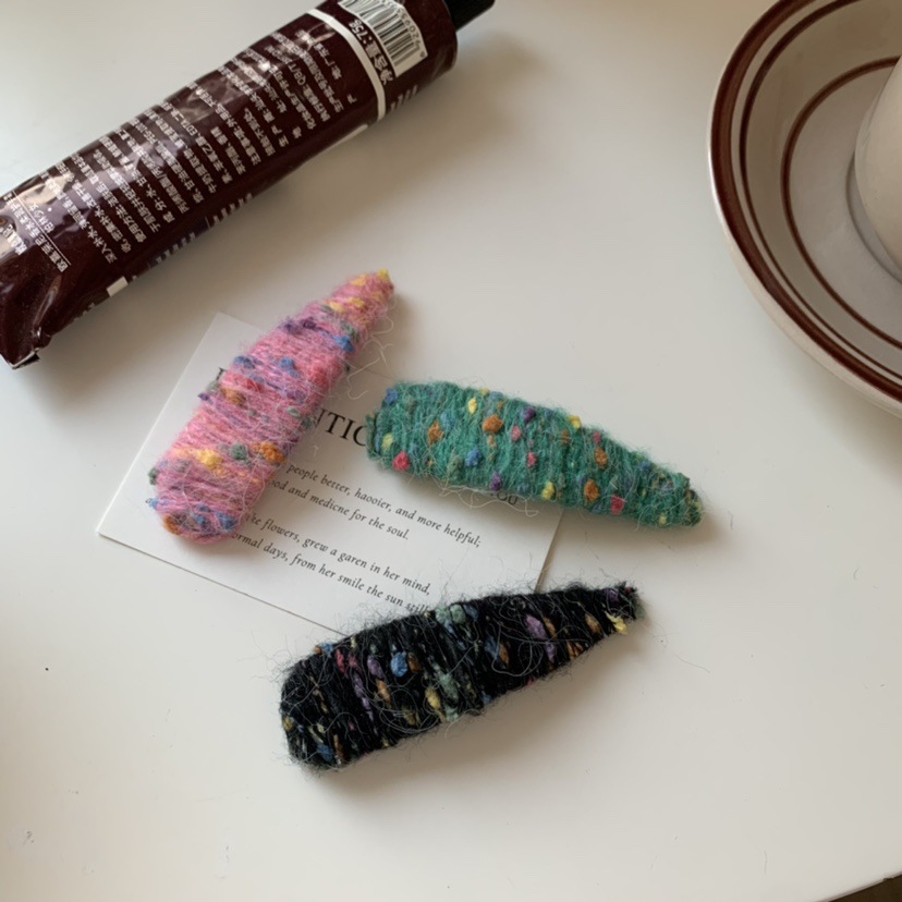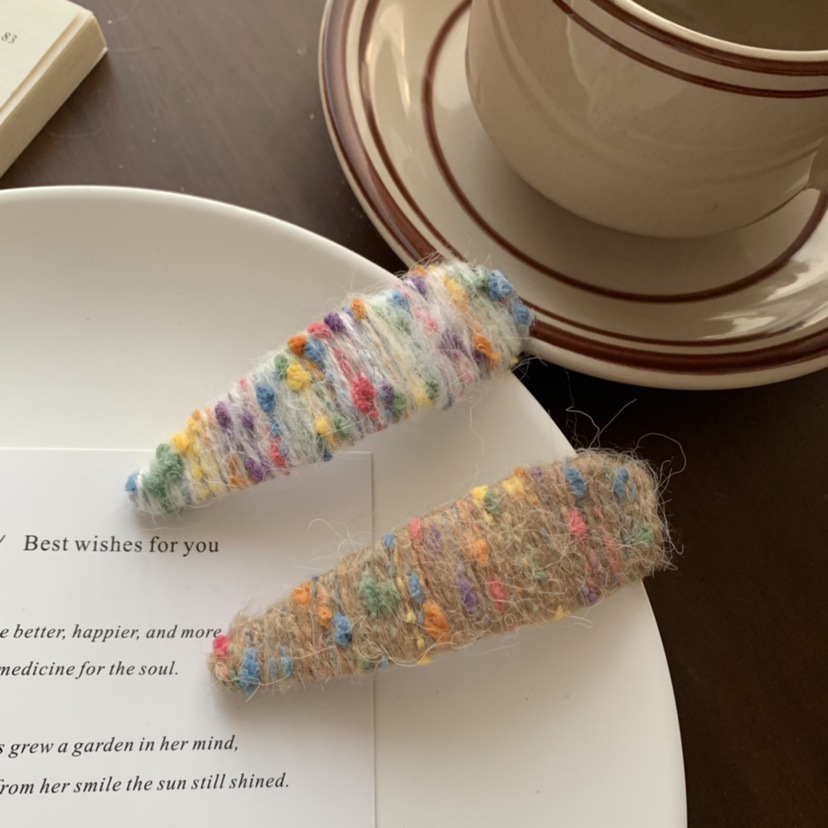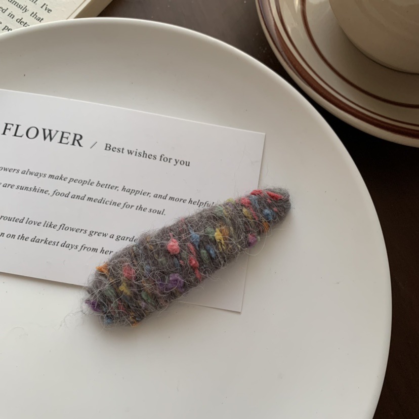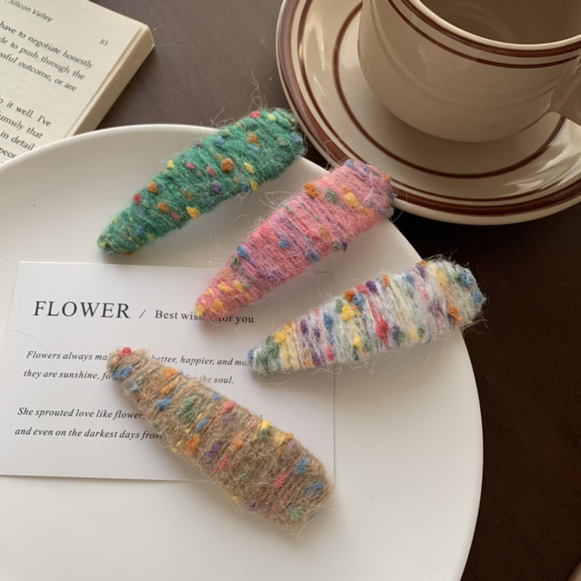 레인보우 컬러 샤넬 스타일 울 니트 헤어핀 BB 클립 손으로 짠 헤어핀 뱅 클립 고급 엣지 클립 헤어 액세서리