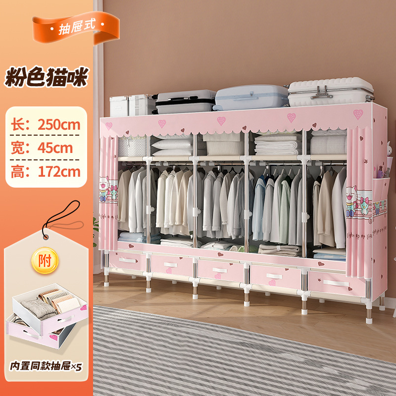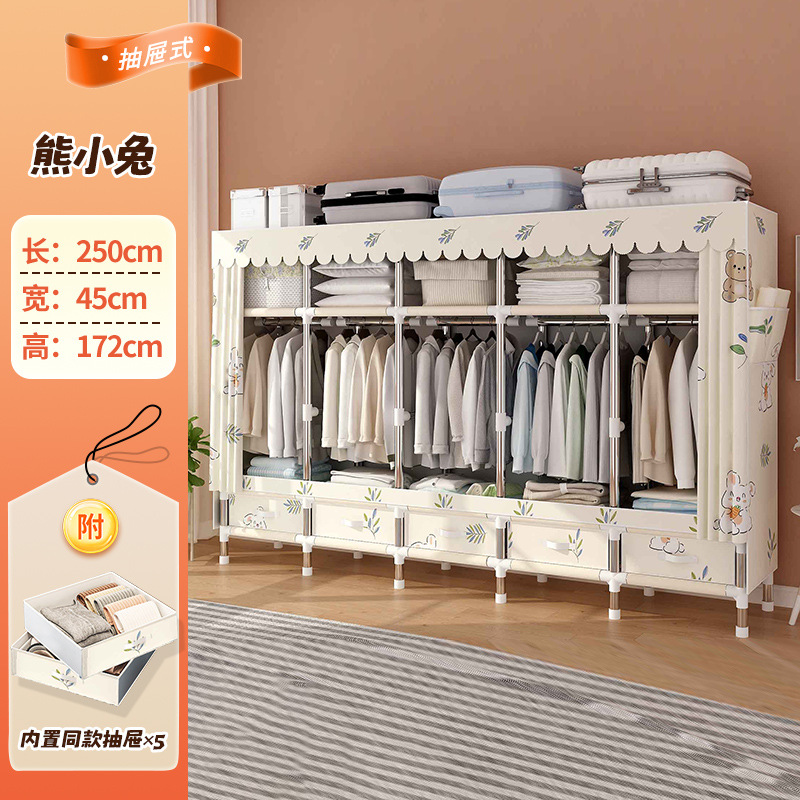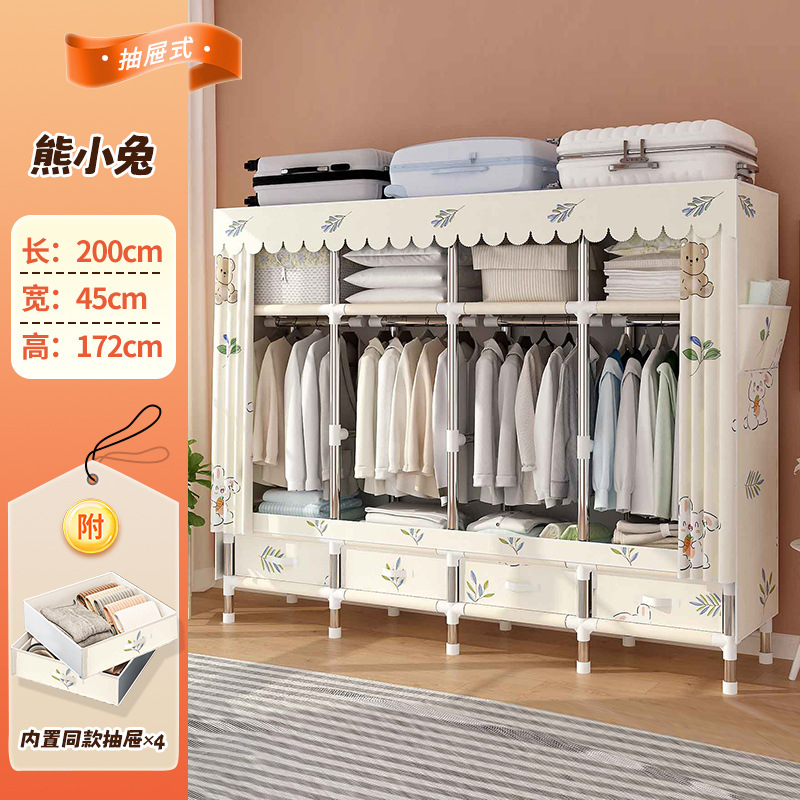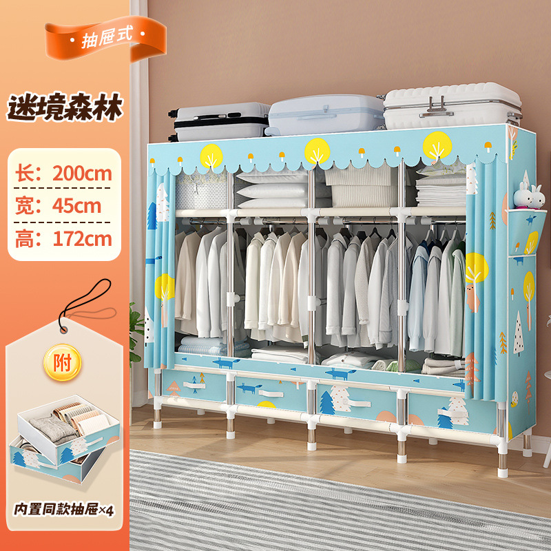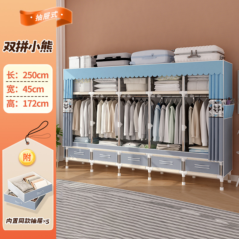 일본식 간단한 옷장 홈 침실 서랍이있는 다층 천 옷장 임대실 보관 캐비닛 대용량 옷장