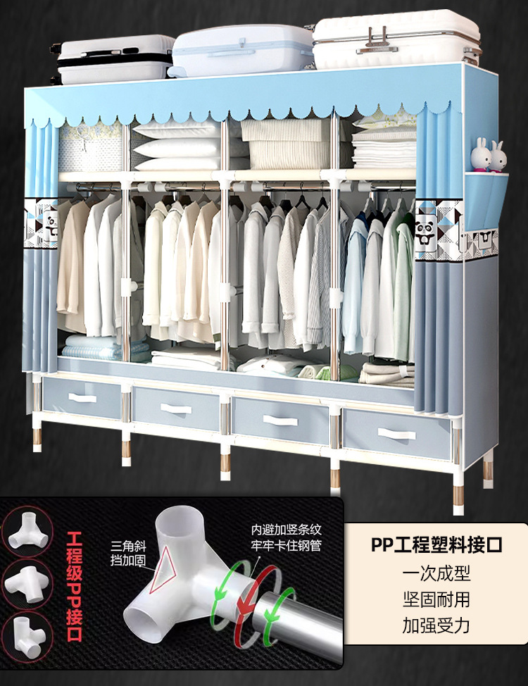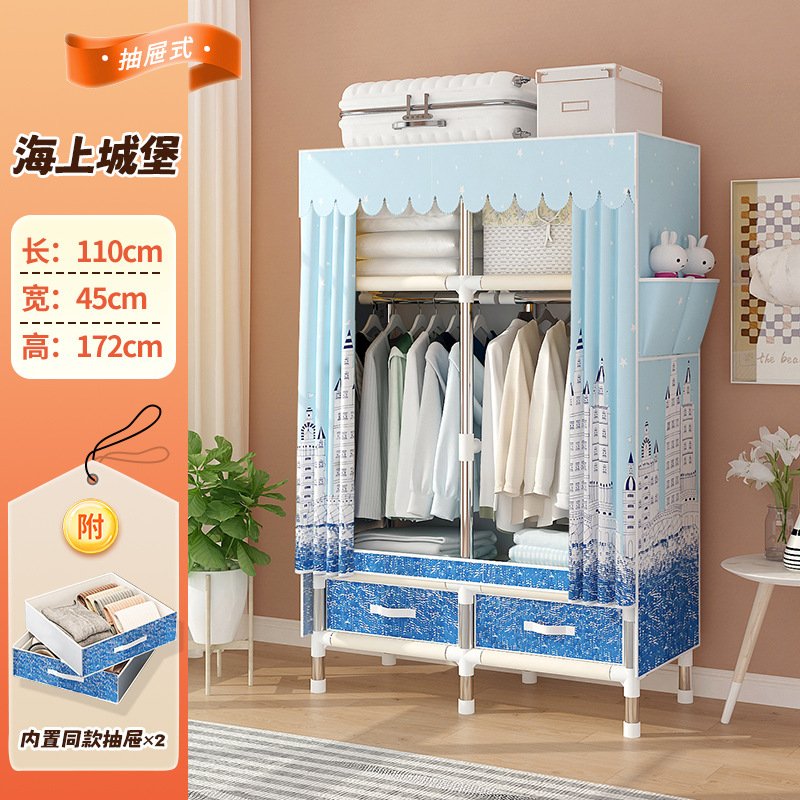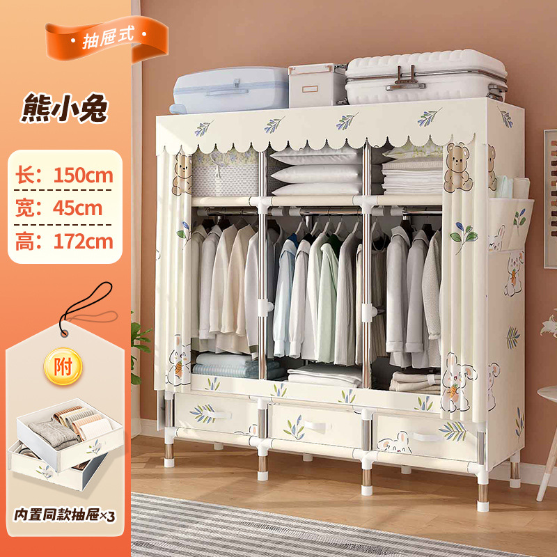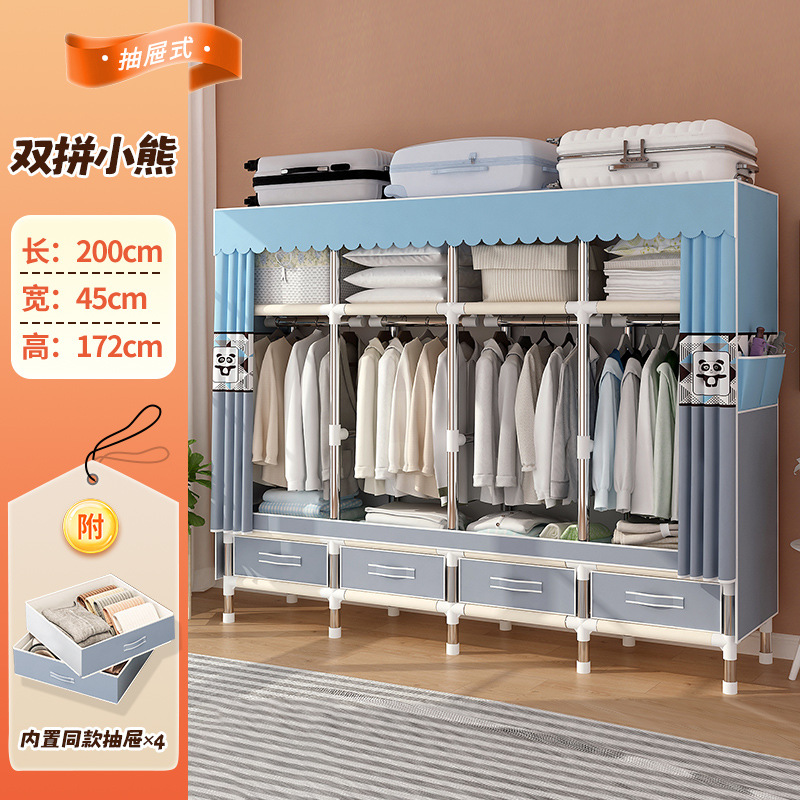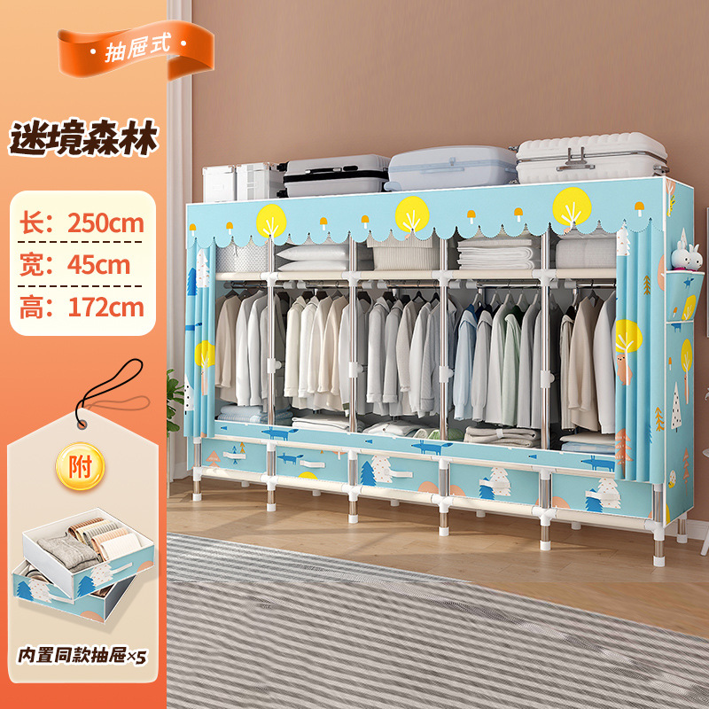 일본식 간단한 옷장 홈 침실 서랍이있는 다층 천 옷장 임대실 보관 캐비닛 대용량 옷장