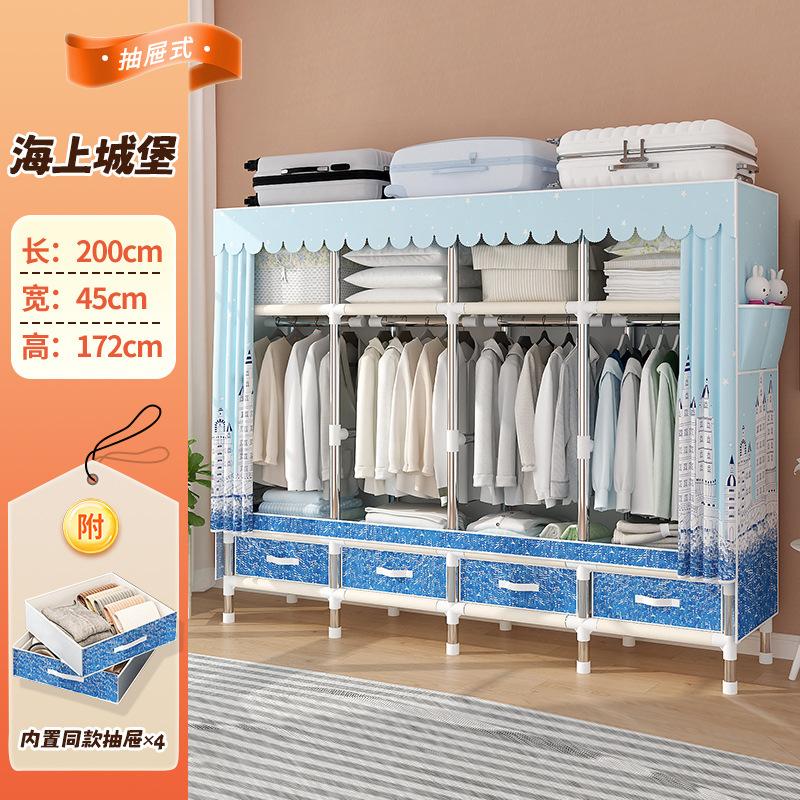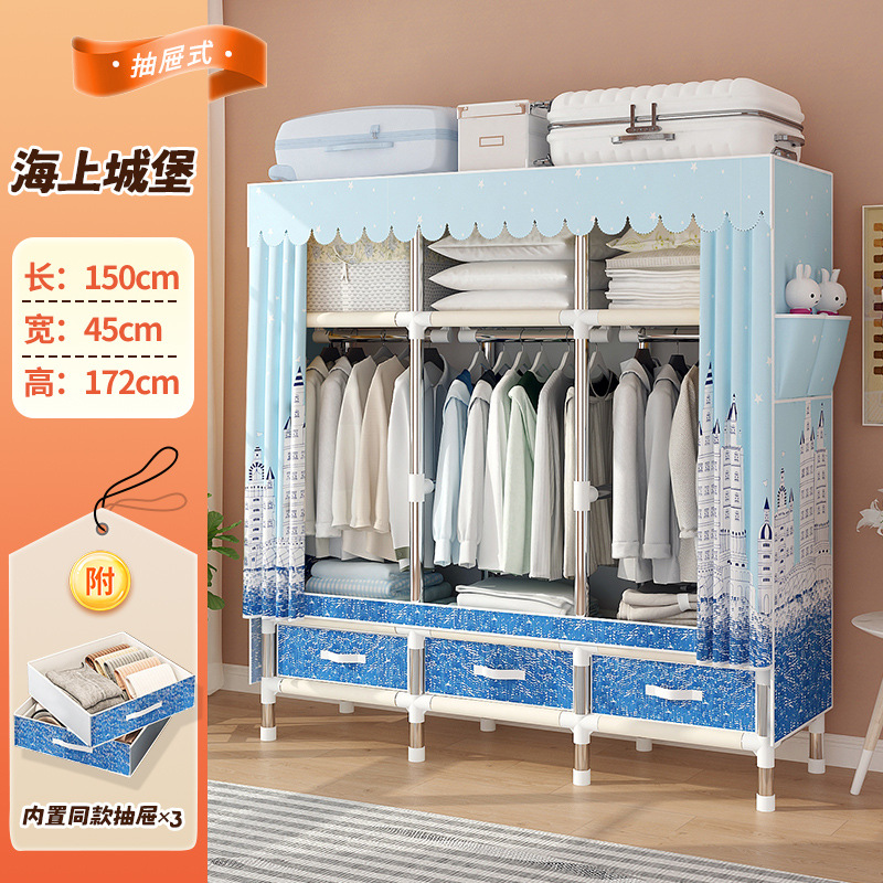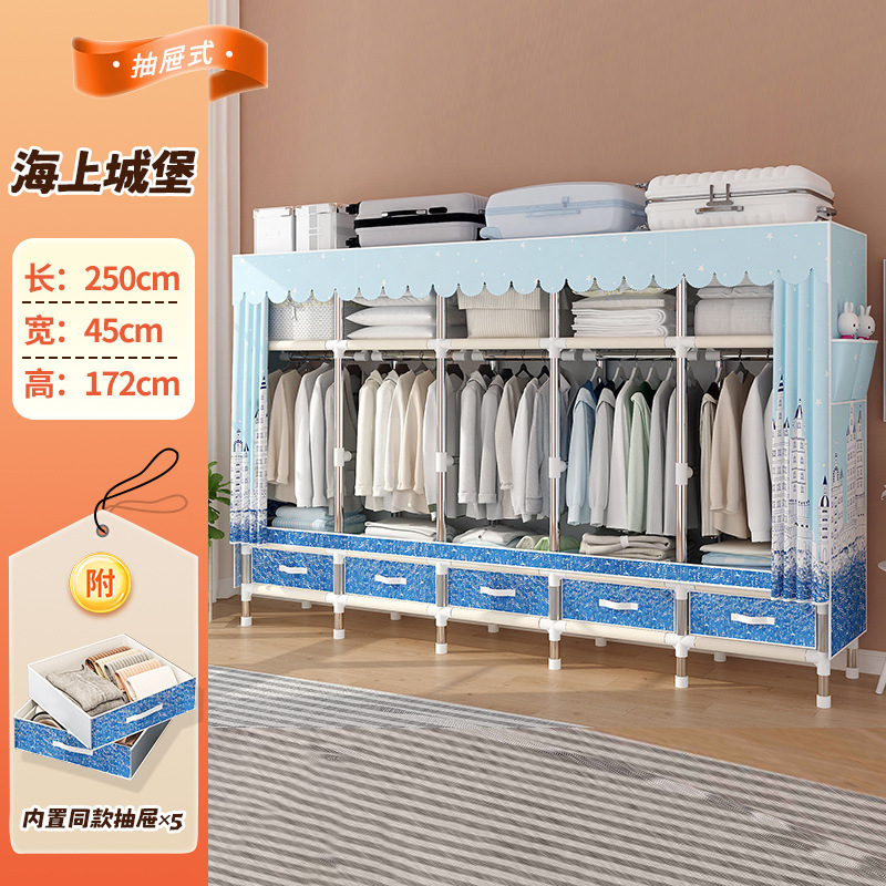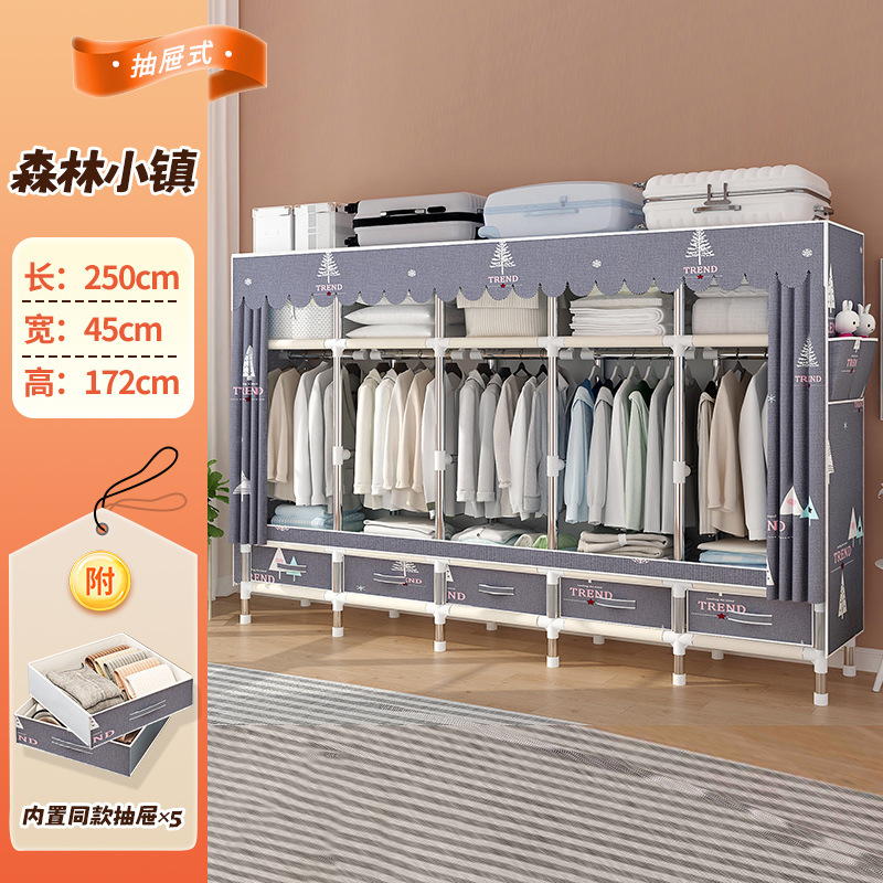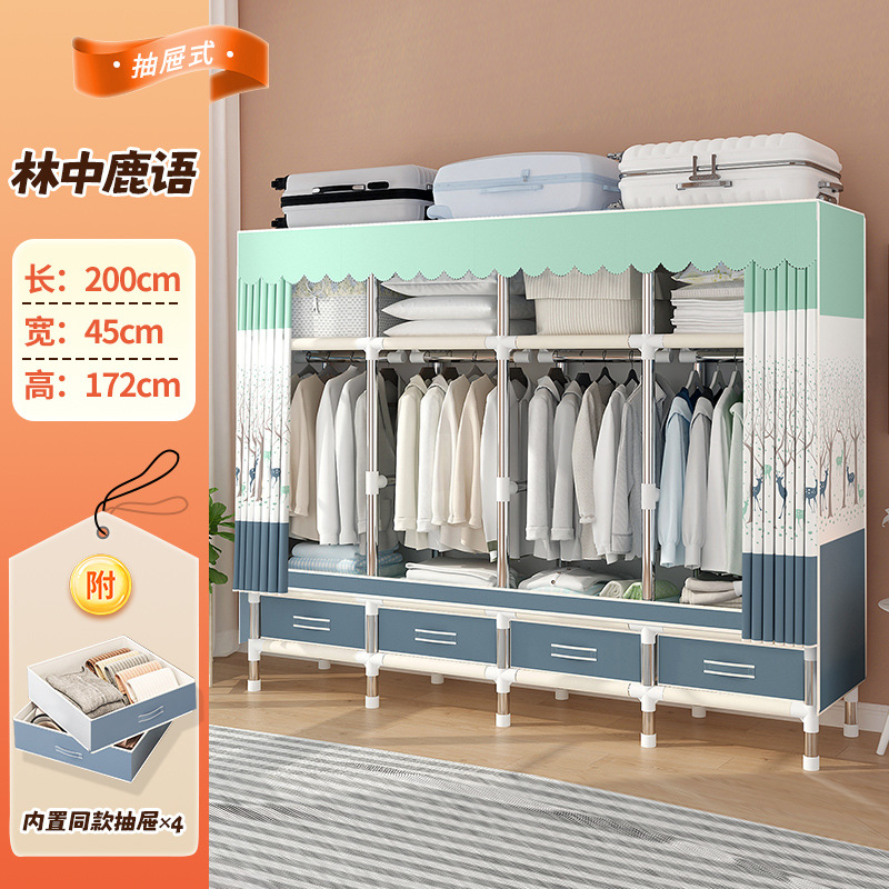 일본식 간단한 옷장 홈 침실 서랍이있는 다층 천 옷장 임대실 보관 캐비닛 대용량 옷장스토어 가기