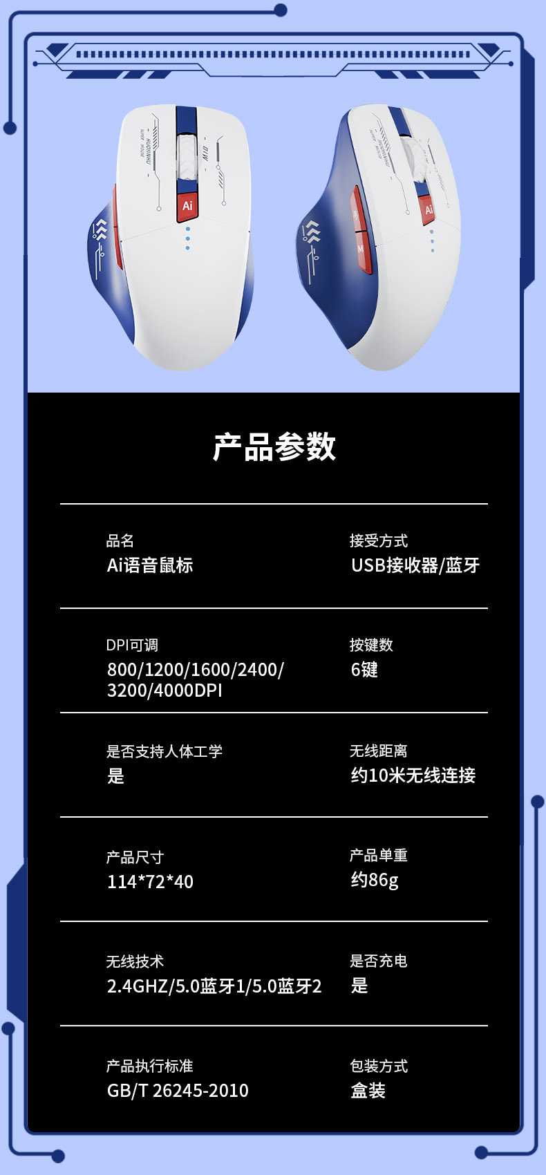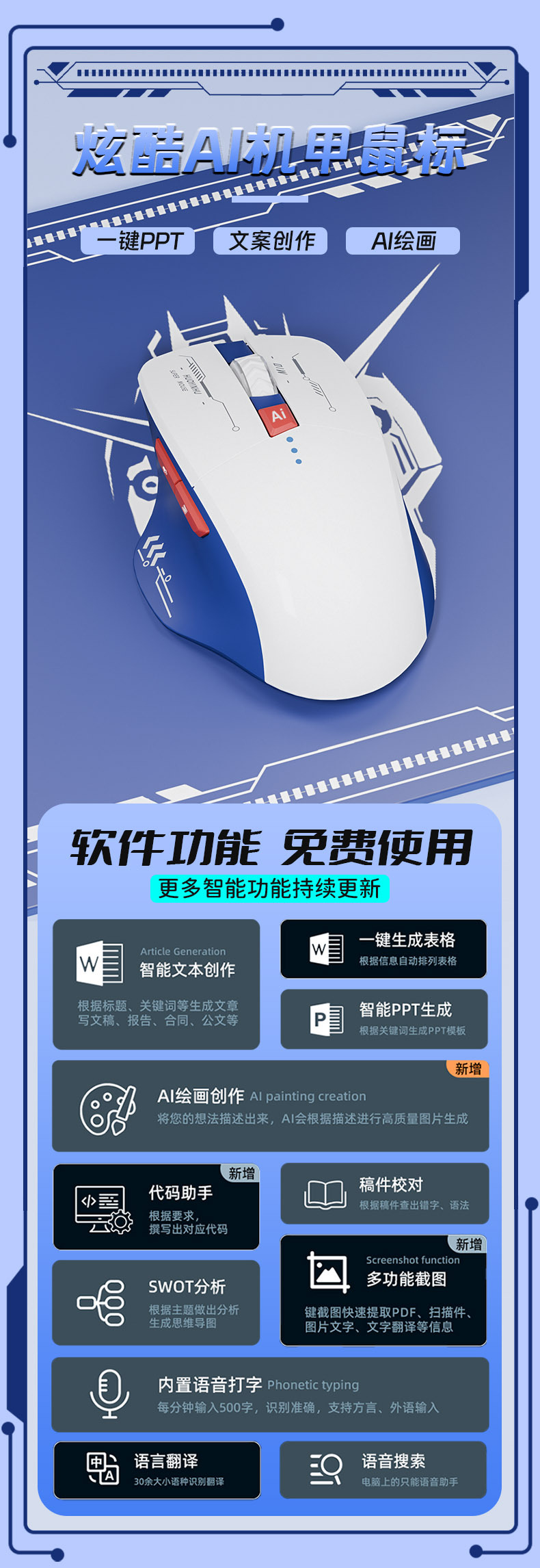鼠标ai智能蓝牙鼠标无线鼠标语音智能问答写作一键生成PPT办公鼠
