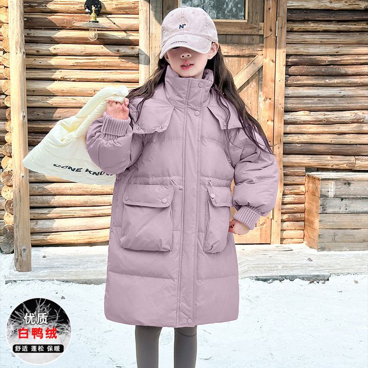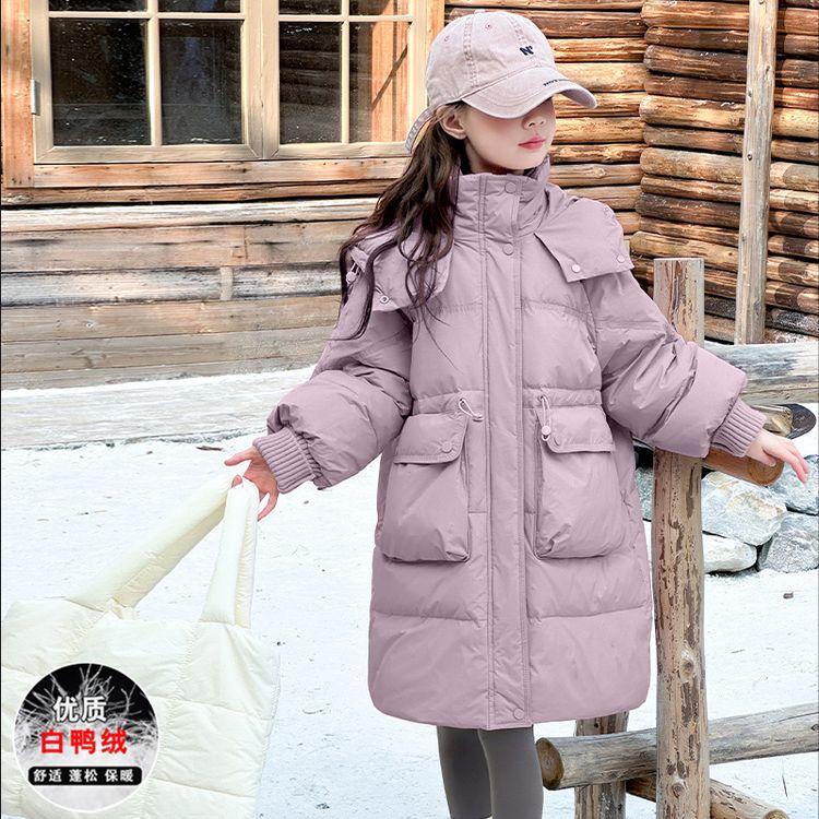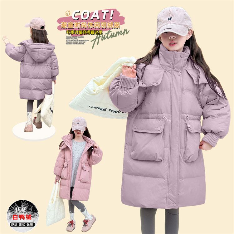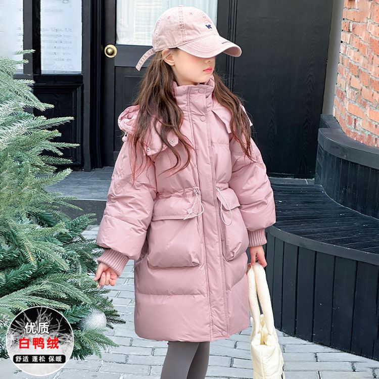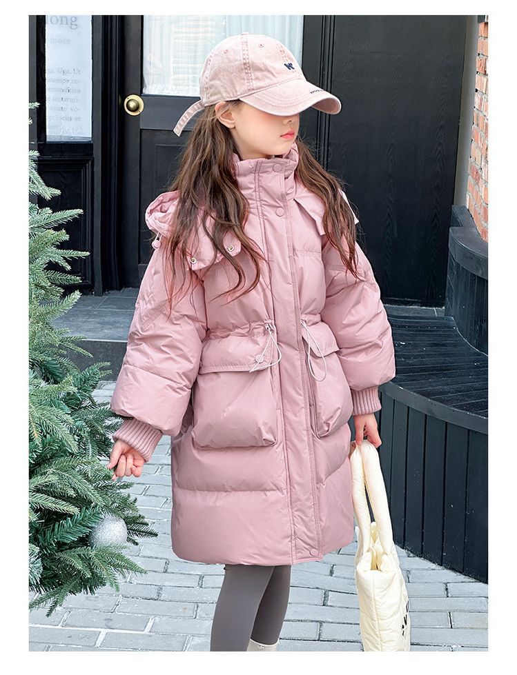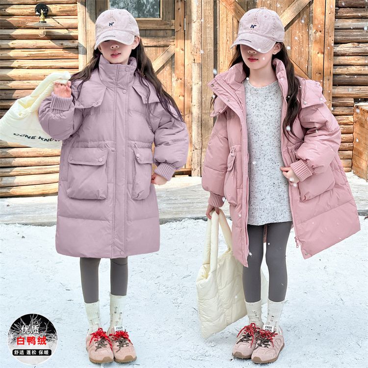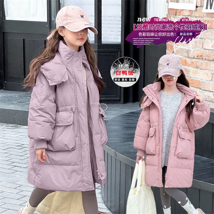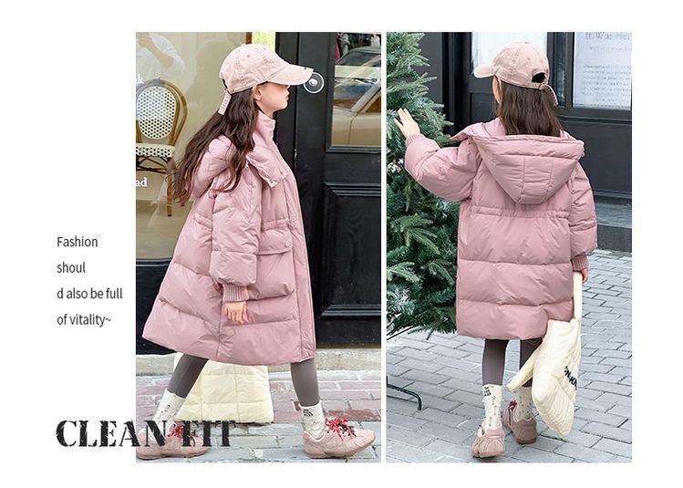 소녀 다운 재킷 겨울 2024 새로운 소녀 중 및 긴 겨울 옷 어린이 따뜻한 대외 무역 겨울 코트스토어 가기