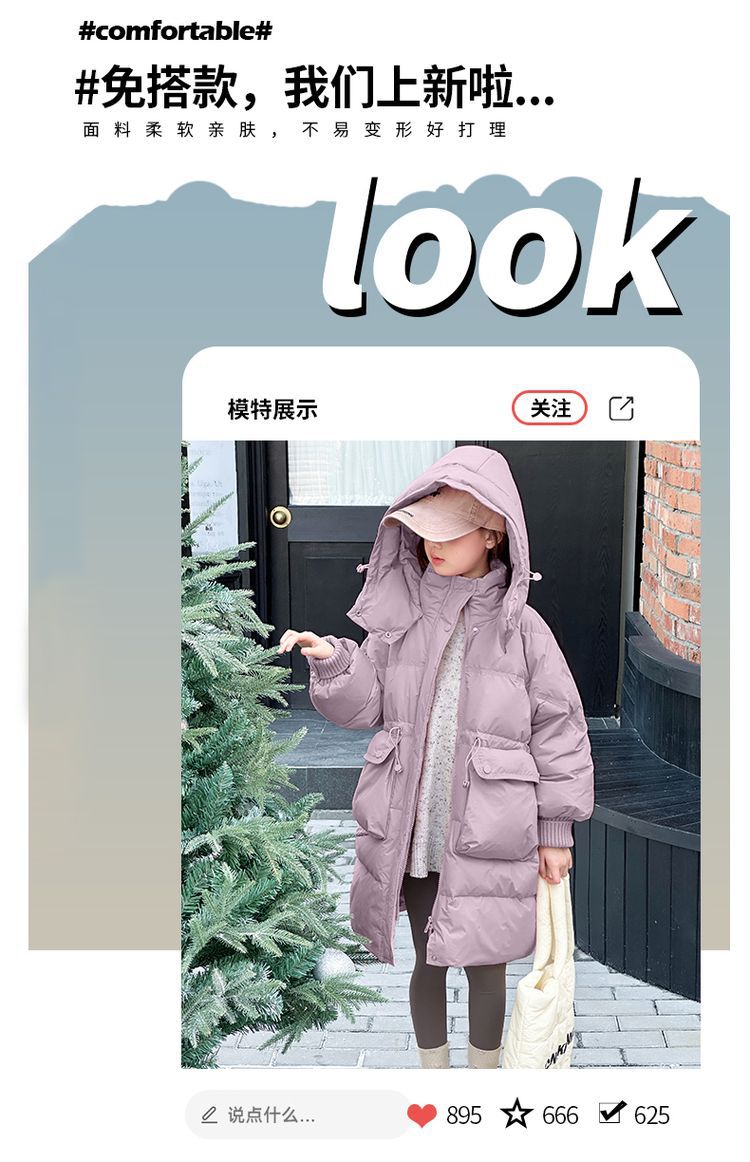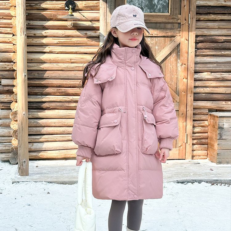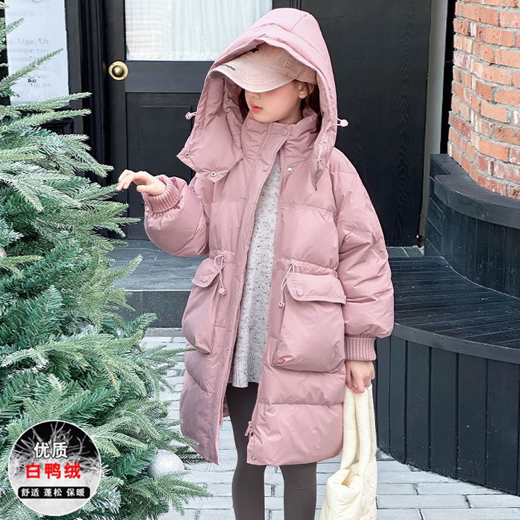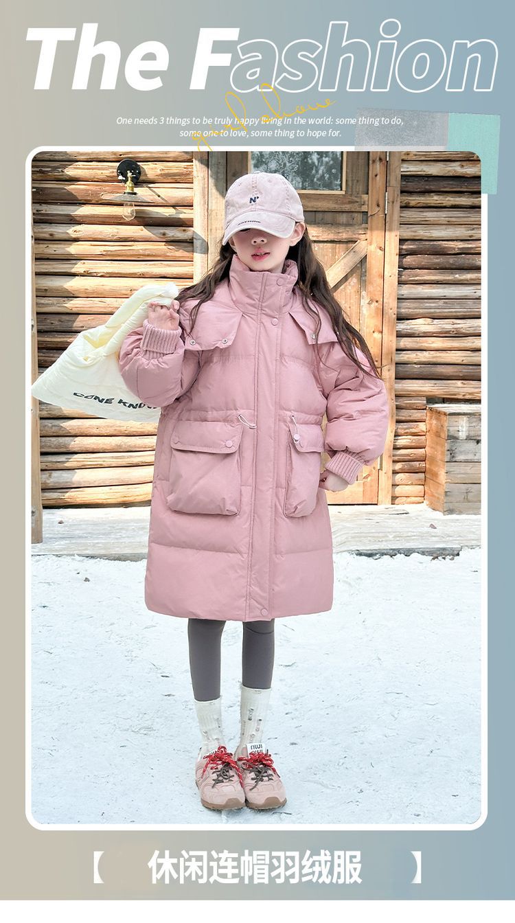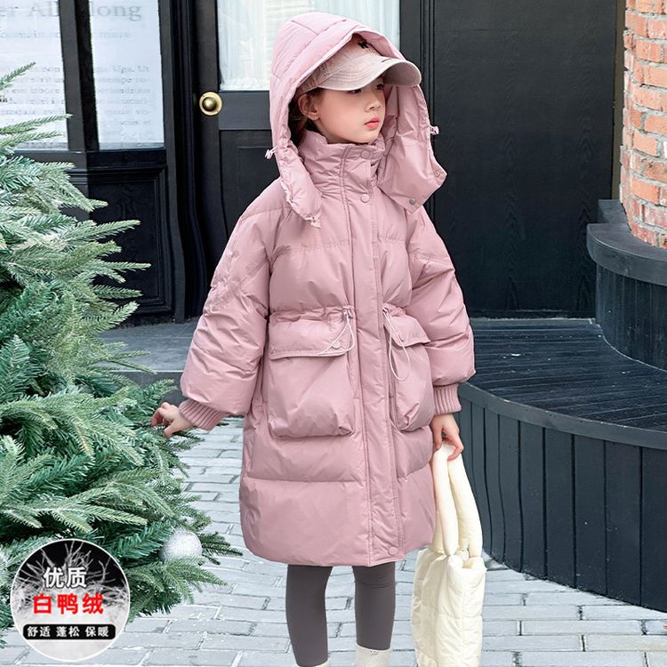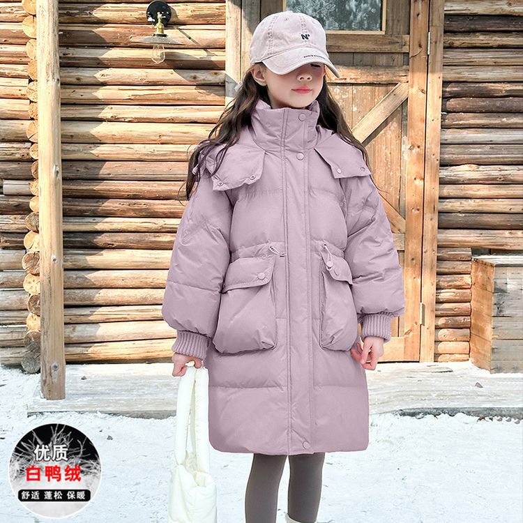 소녀 다운 재킷 겨울 2024 새로운 소녀 중 및 긴 겨울 옷 어린이 따뜻한 대외 무역 겨울 코트스토어 가기