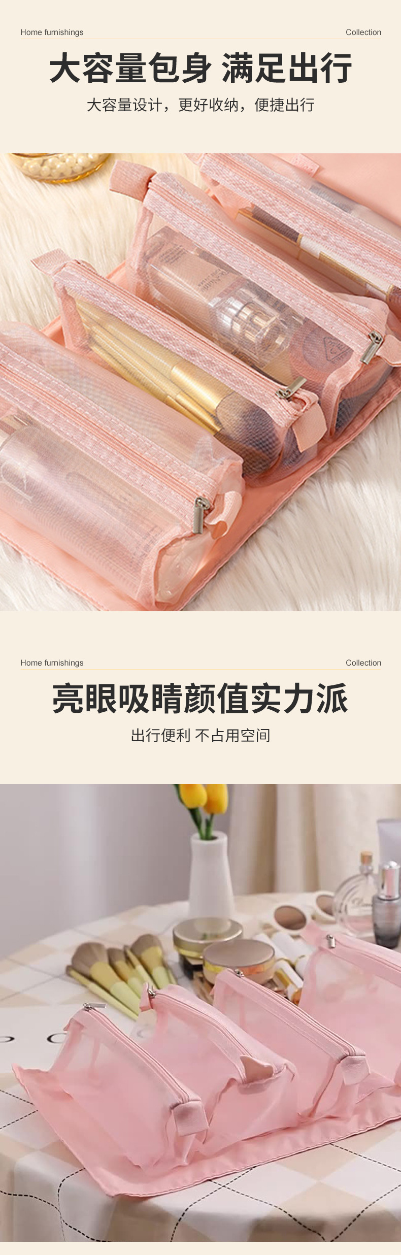 대용량 4-in-1 분리형 휴대용 고급스러운 여행용 다기능 세면도구 수납 가방 화장품스토어 가기
