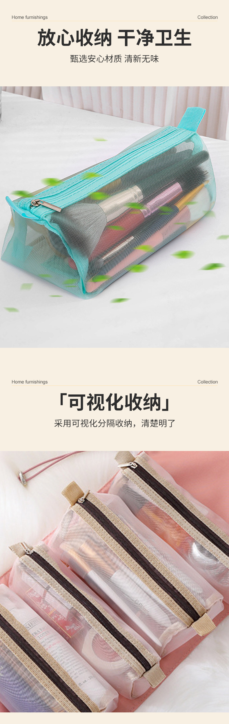대용량 4-in-1 분리형 휴대용 고급스러운 여행용 다기능 세면도구 수납 가방 화장품