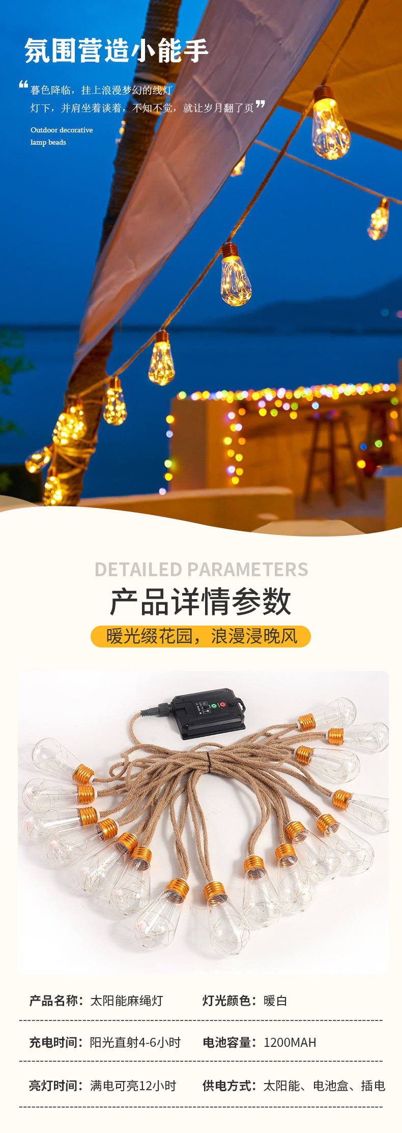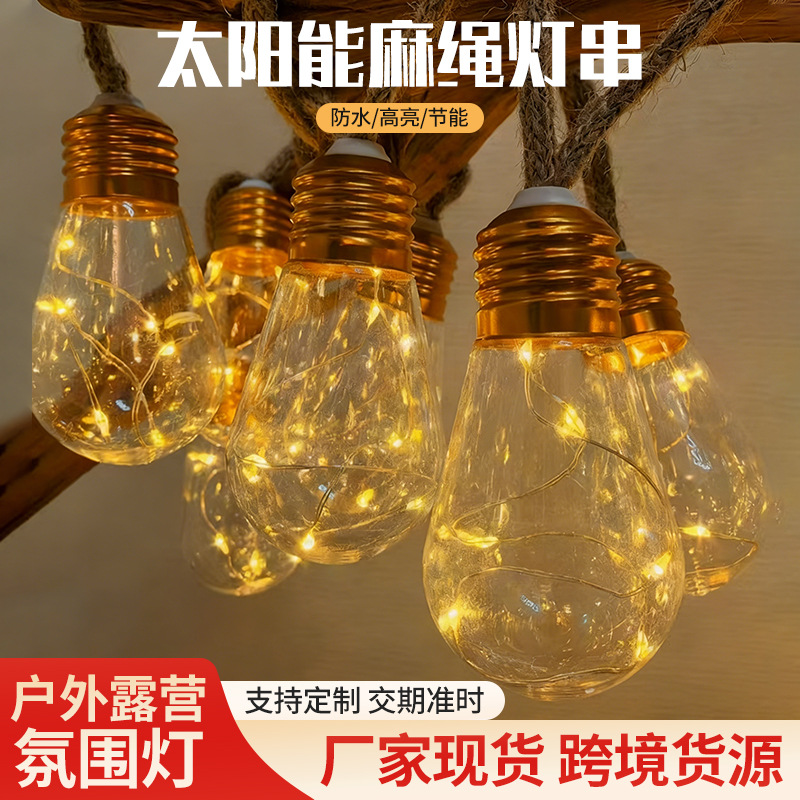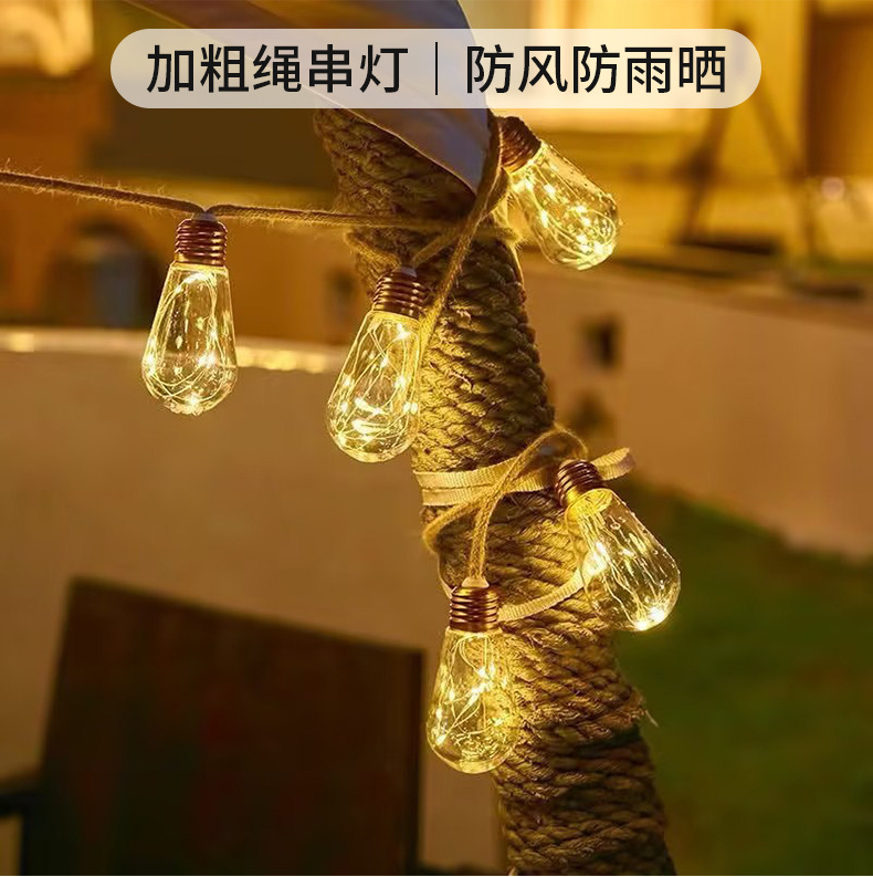 국경 새 제품 분위기 램프 야외 방수 캠핑 태양 대마 문자열 램프 안뜰 구리 와이어 램프 크리스마스 전구 램프