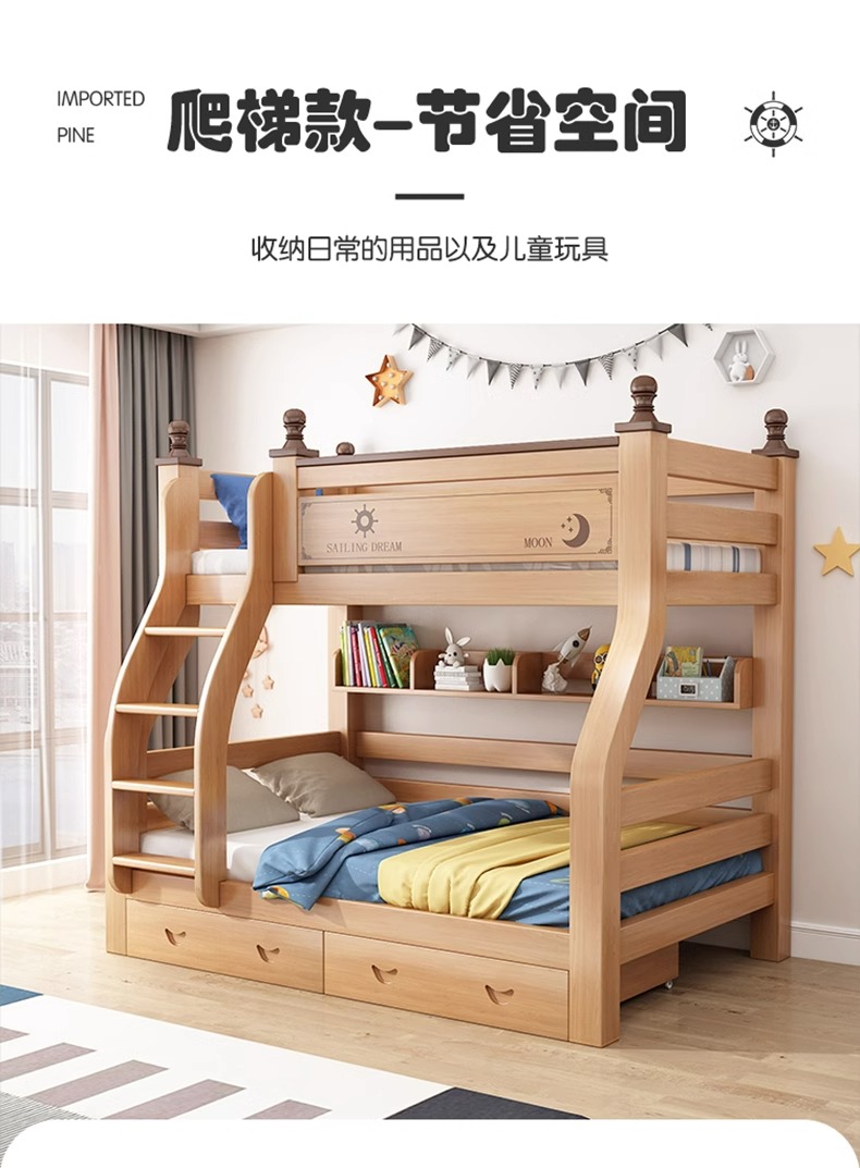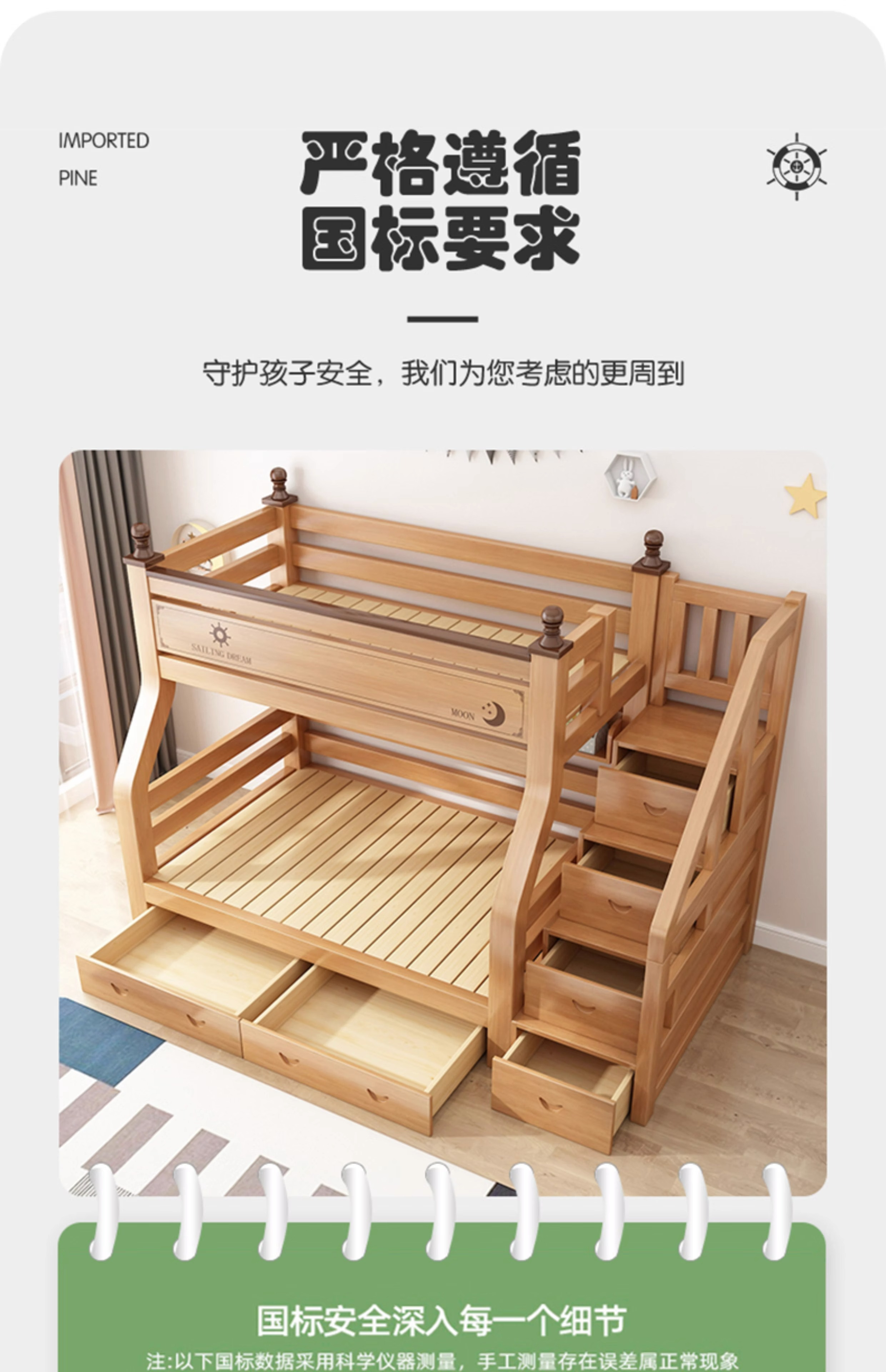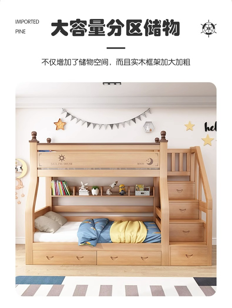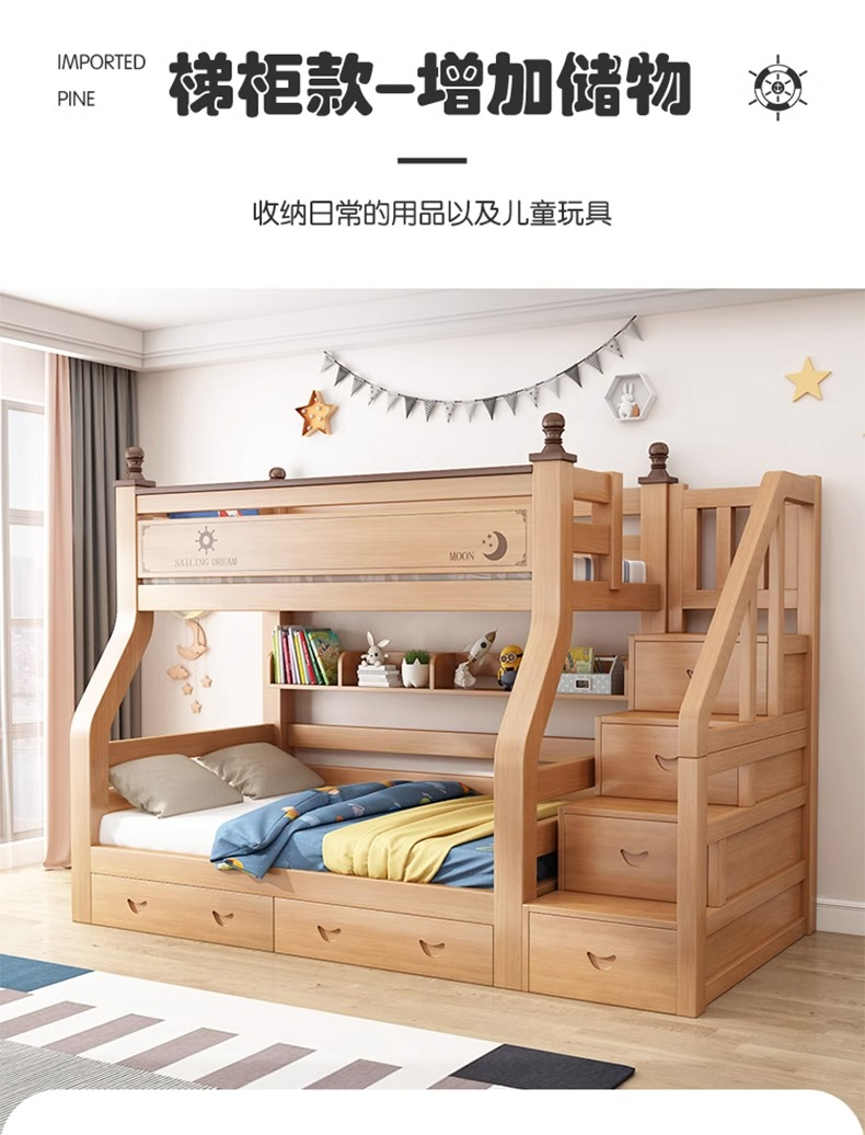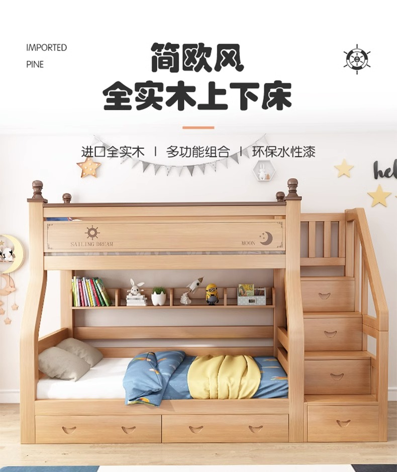 단단한 나무 이층 침대 이층 작은 아파트 높고 낮은 침대 벙크 나무 침대 다기능 성인 어머니 침대 어린이 침대