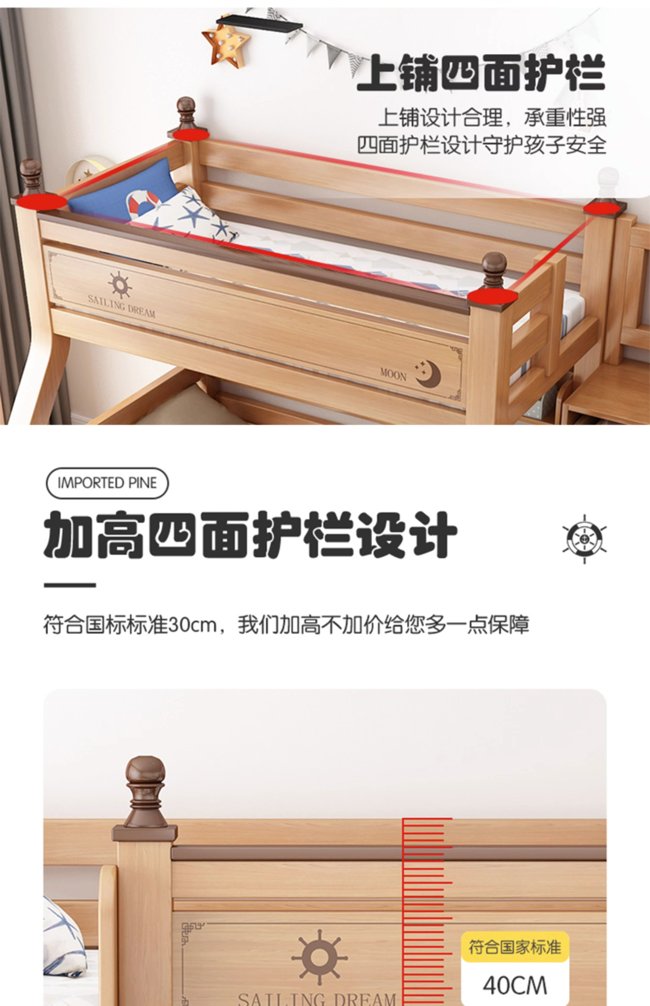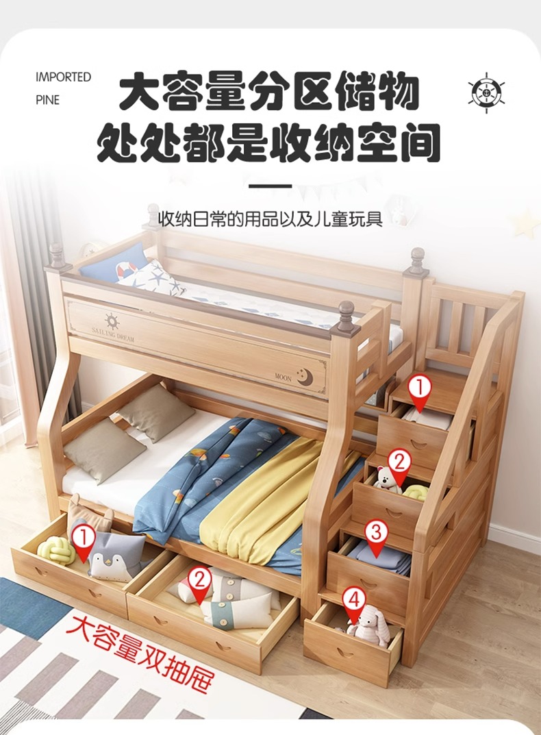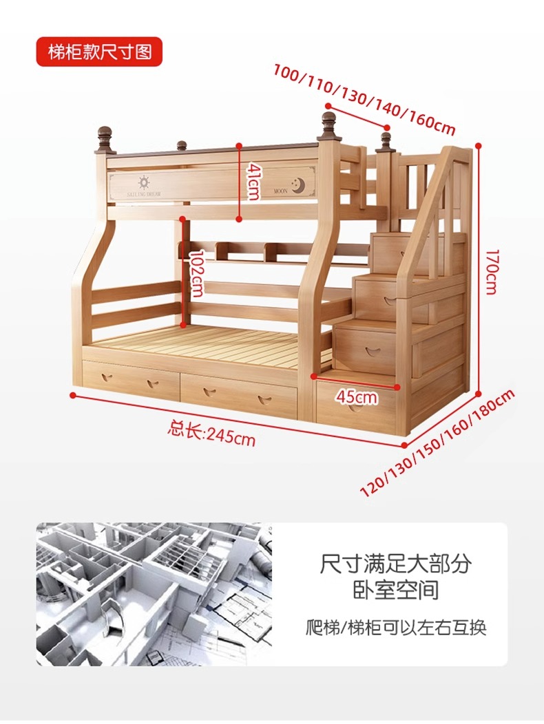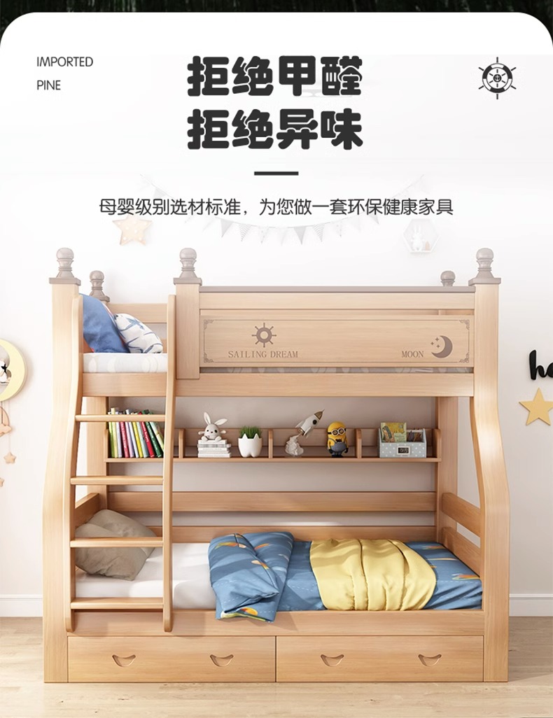 단단한 나무 이층 침대 이층 작은 아파트 높고 낮은 침대 벙크 나무 침대 다기능 성인 어머니 침대 어린이 침대