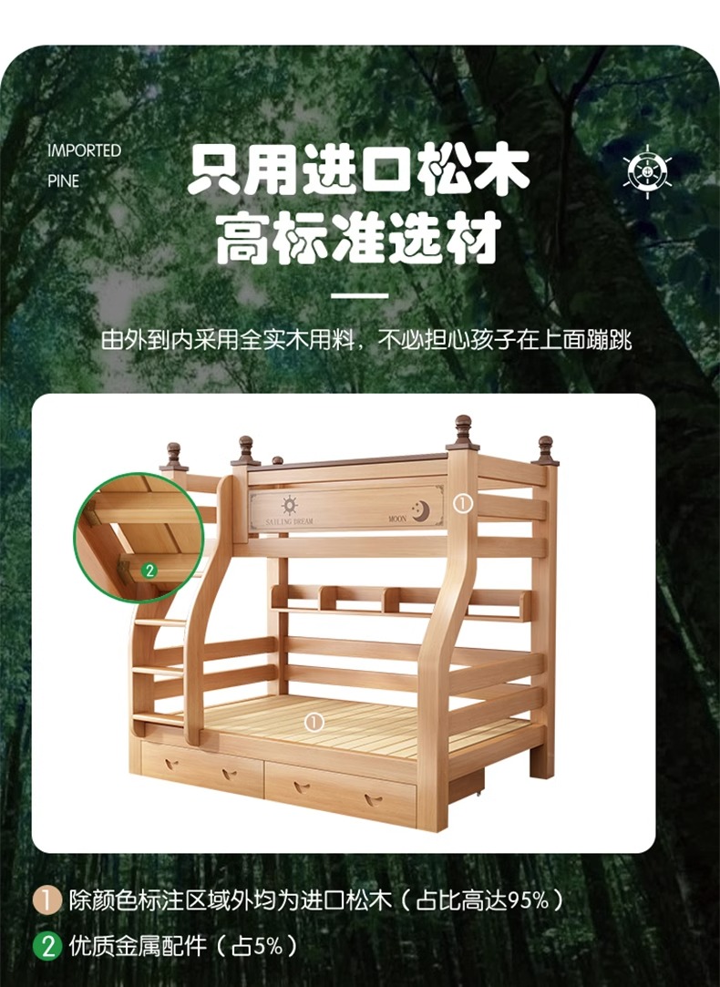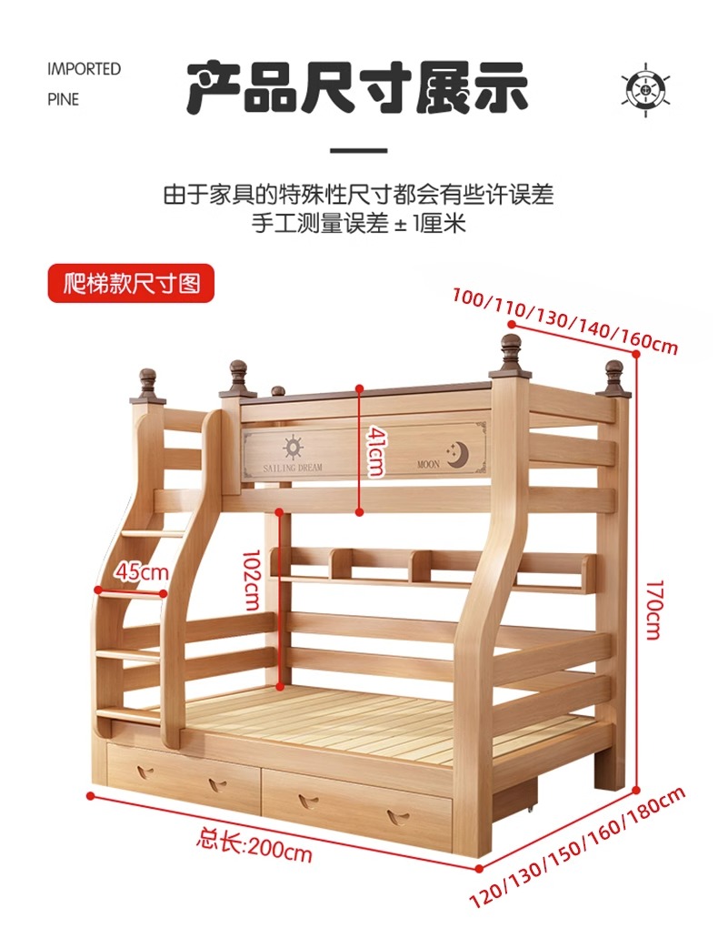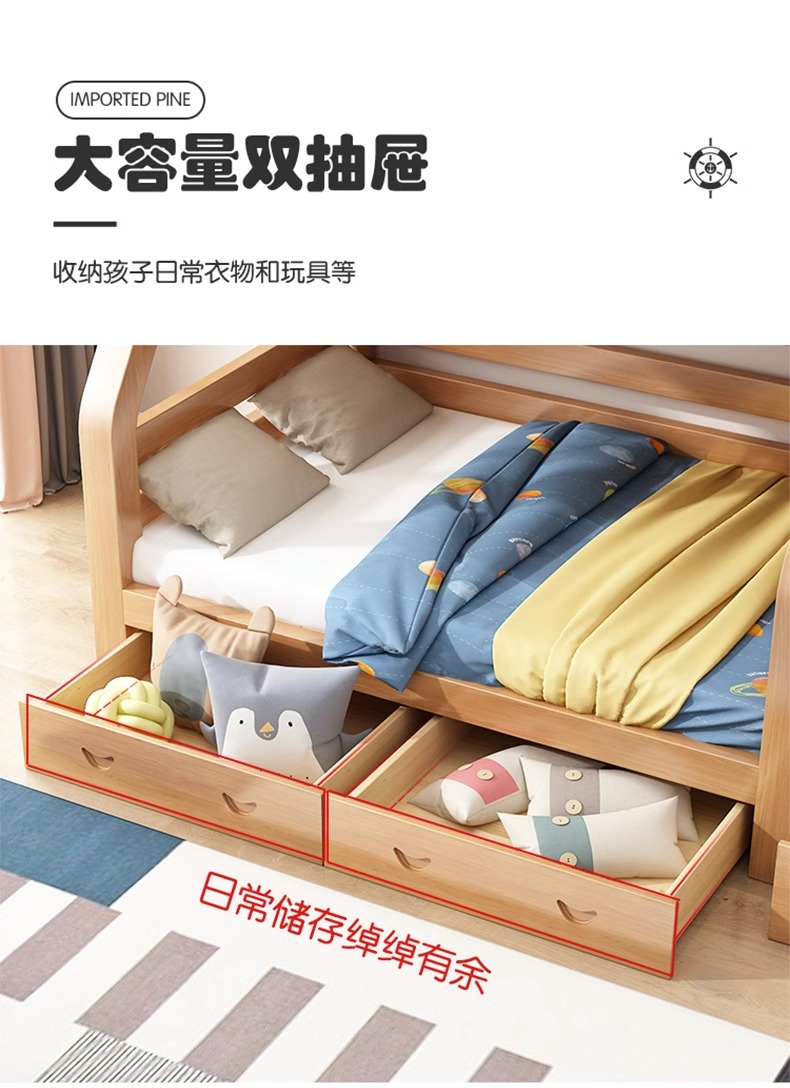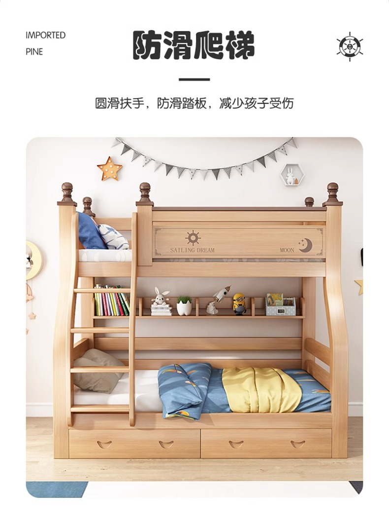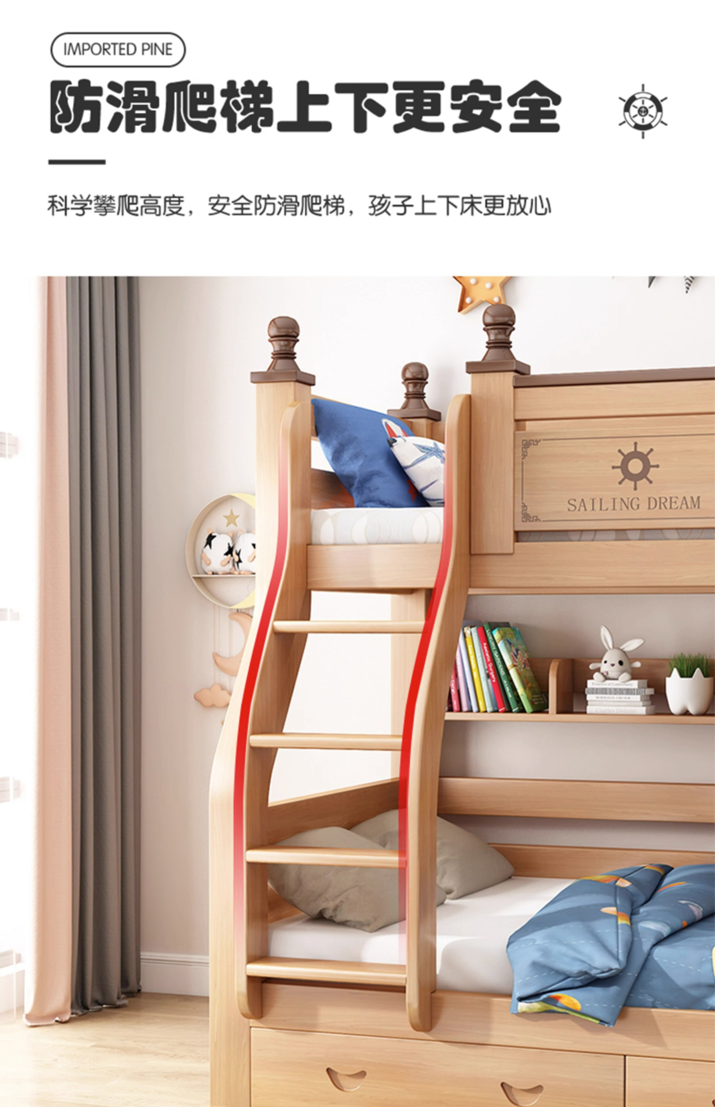 단단한 나무 이층 침대 이층 작은 아파트 높고 낮은 침대 벙크 나무 침대 다기능 성인 어머니 침대 어린이 침대