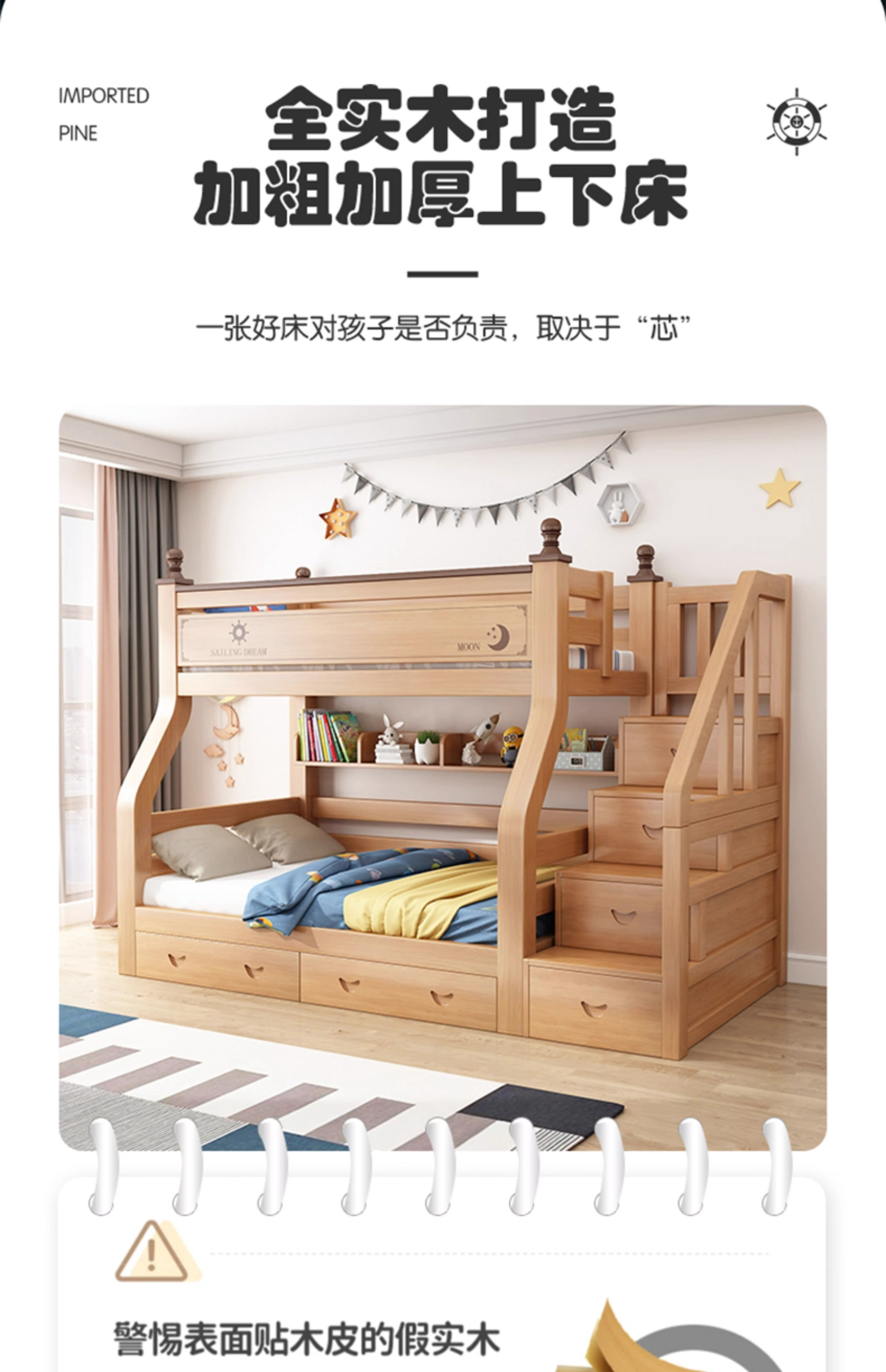 단단한 나무 이층 침대 이층 작은 아파트 높고 낮은 침대 벙크 나무 침대 다기능 성인 어머니 침대 어린이 침대스토어 가기