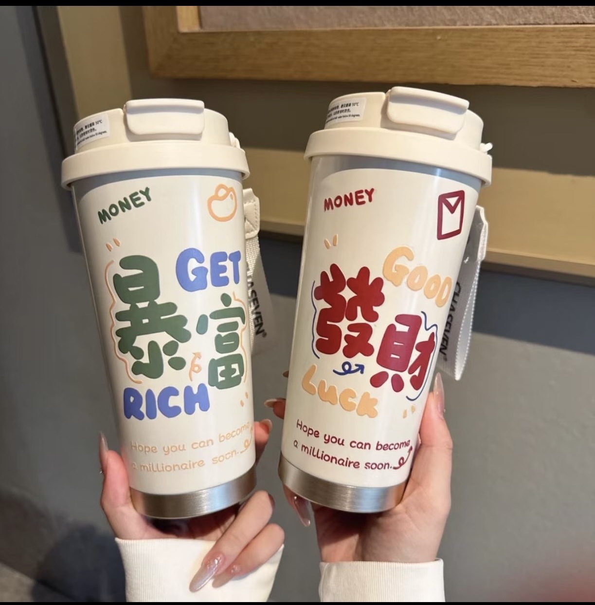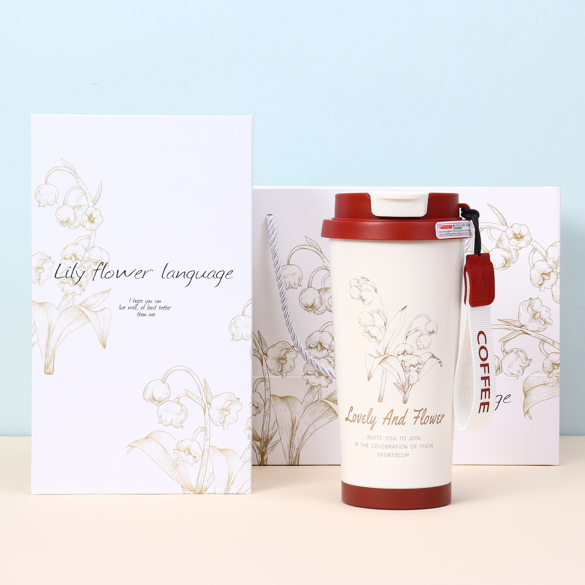 • 빨간색 컵에는 인쇄가 있습니다. 흰색 선물 상자 [이중 음료 뚜껑 - 식품 등급 스테인리스 스틸]