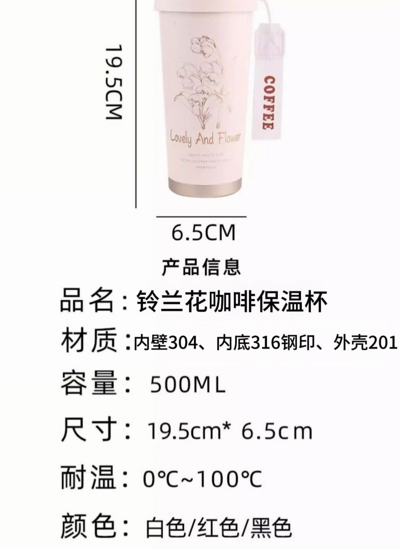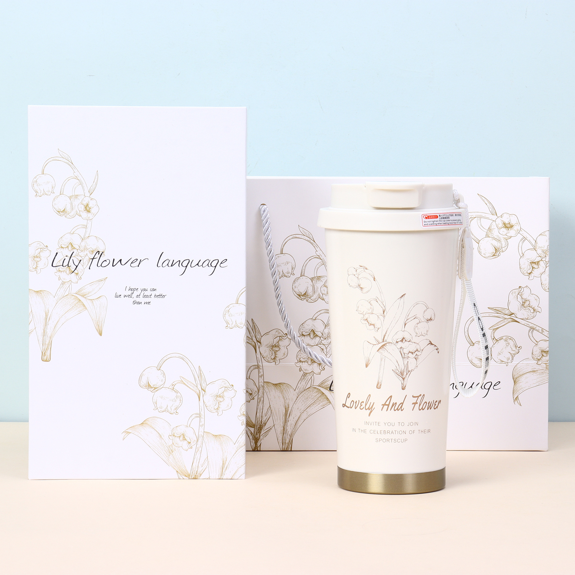 • 흰색 컵에는 인쇄가 있습니다. 흰색 선물 상자 [이중 음료 뚜껑 - 식품 등급 스테인레스 스틸]