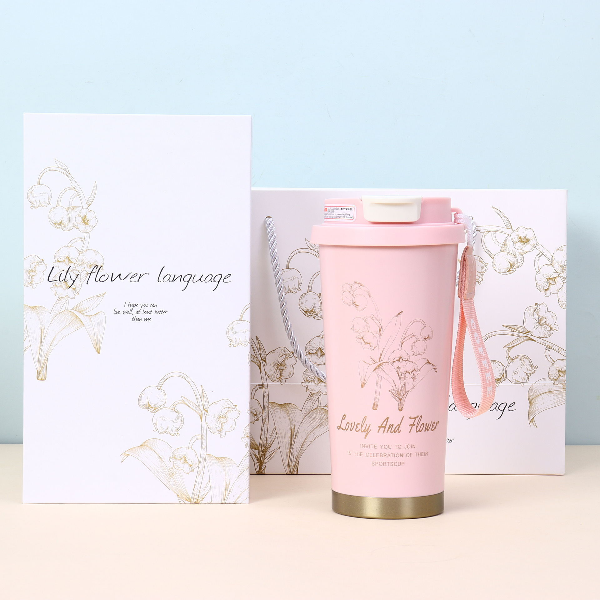 • 핑크색 컵에는 인쇄가 있습니다. 흰색 선물 상자 [이중 음료 뚜껑 - 식품 등급 스테인리스 스틸]