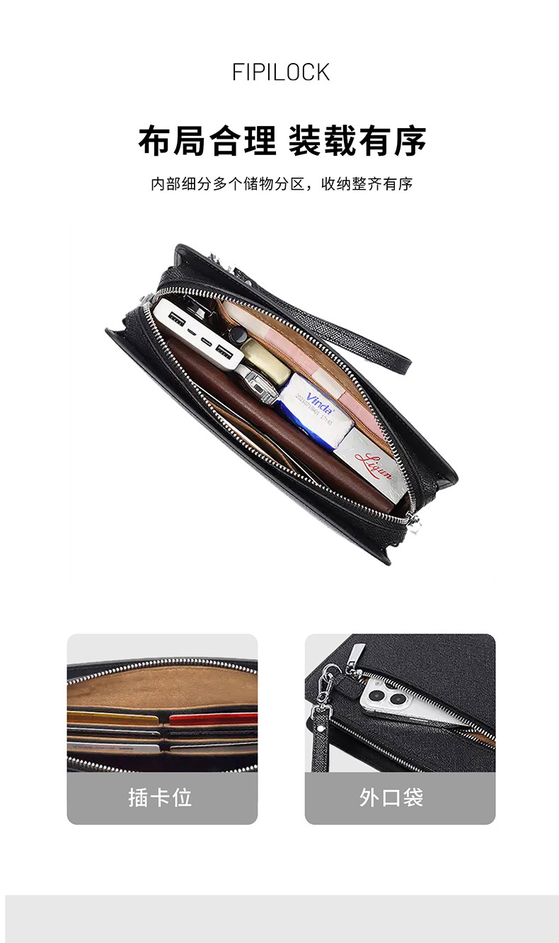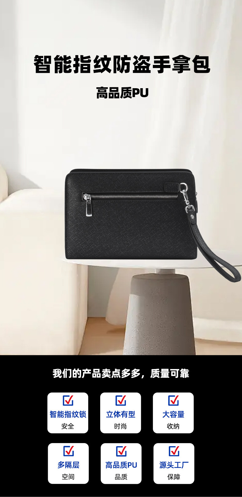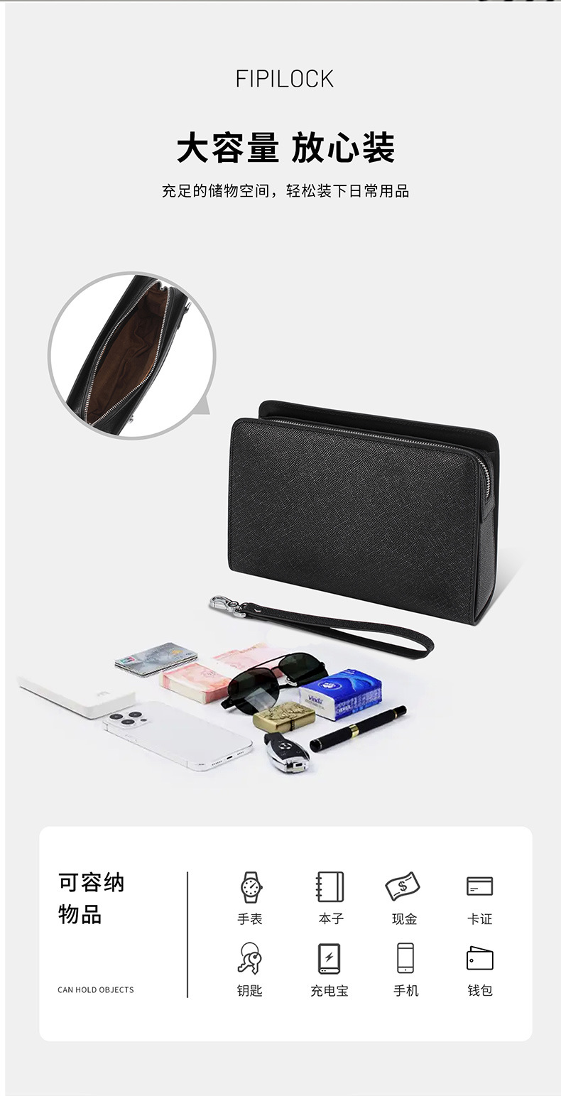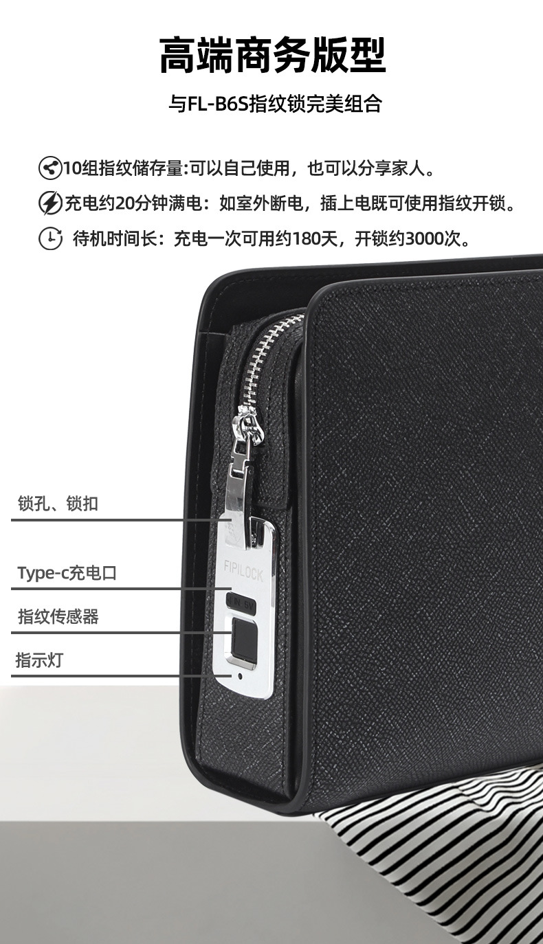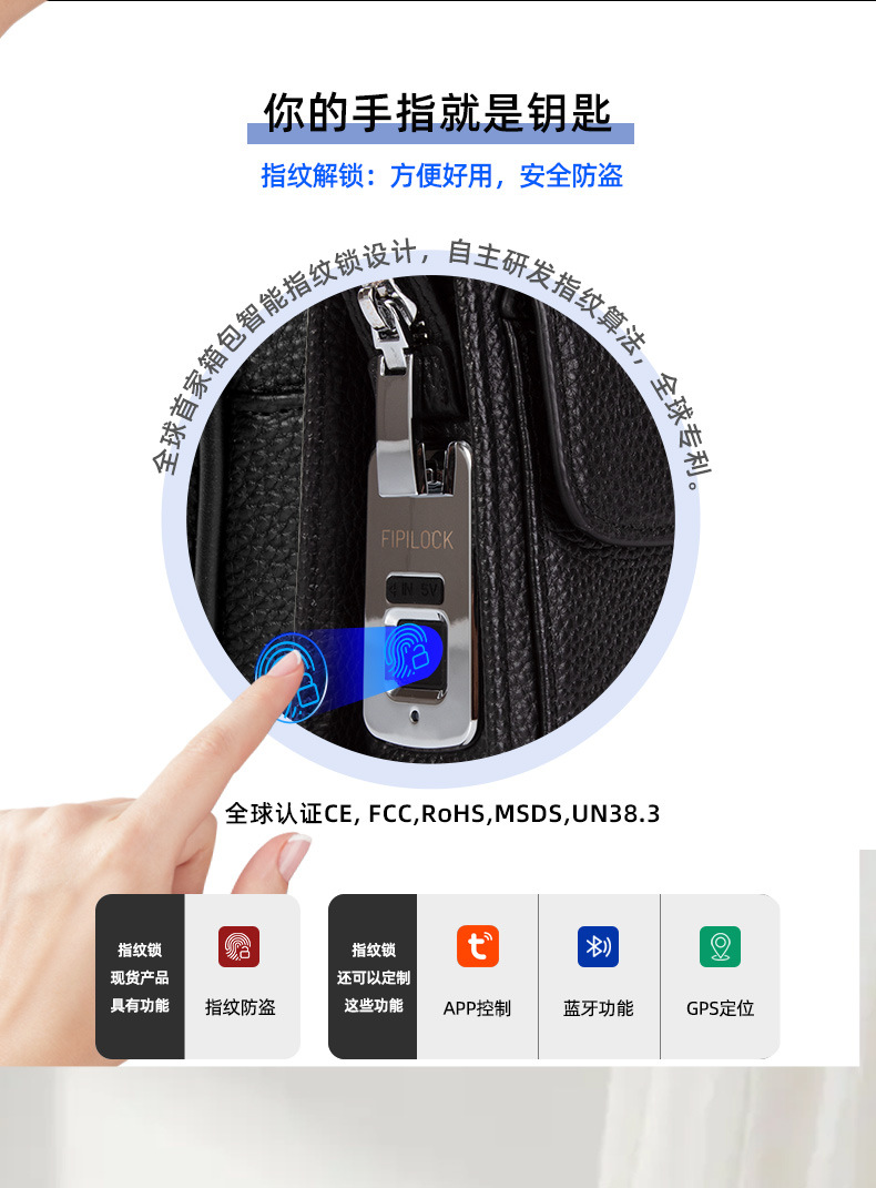 FIPILOCK 지문 잠금 핸드백 재고 PU 하이 엔드 센스 비즈니스 남성 가방 대용량 패션 도난 방지 핸드백