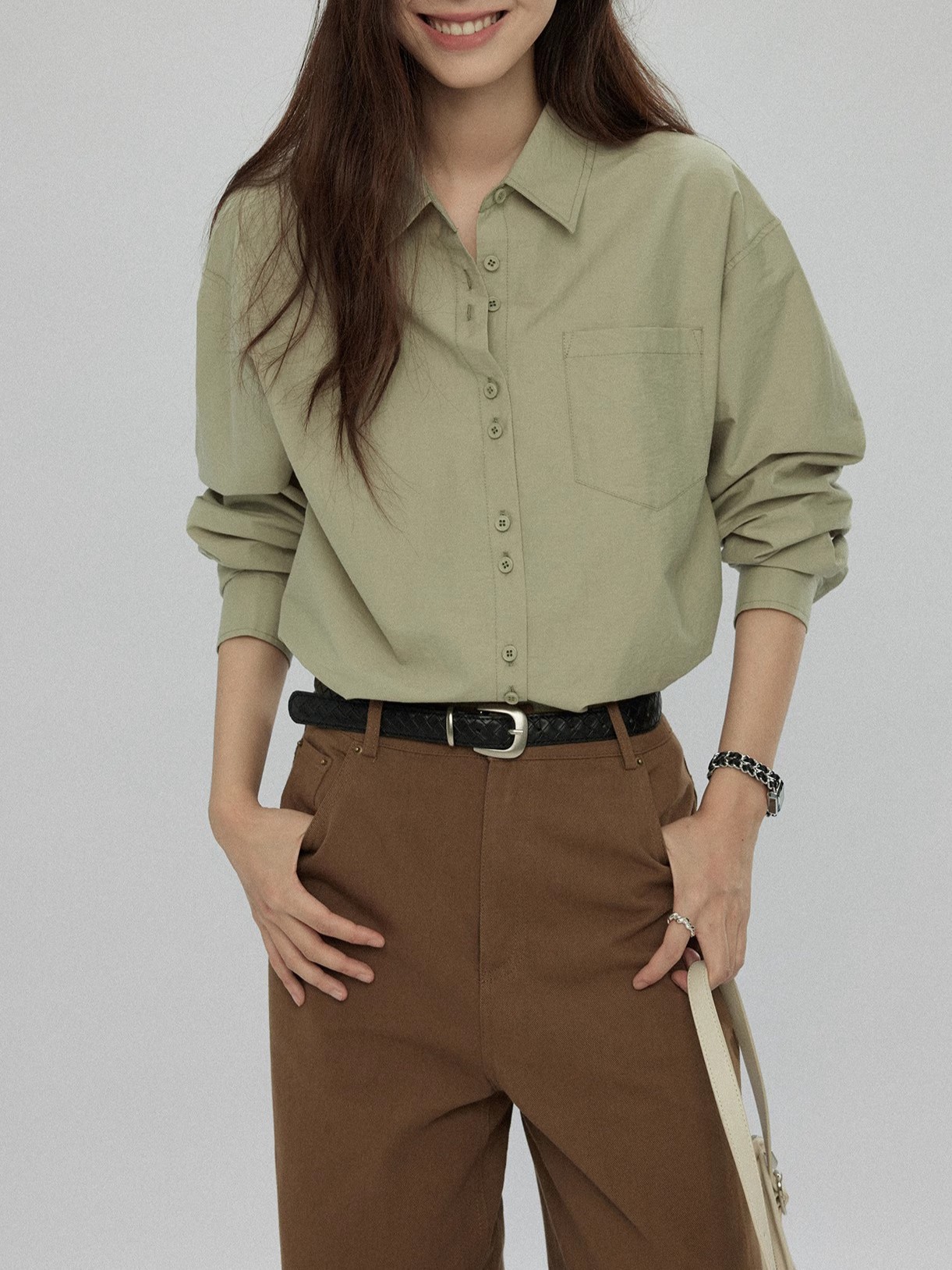 졸리 선택 긴팔 옷깃 셔츠 여성용 가을 느슨한 간단한 게으른 스타일 하이 엔드 올 매치 재킷