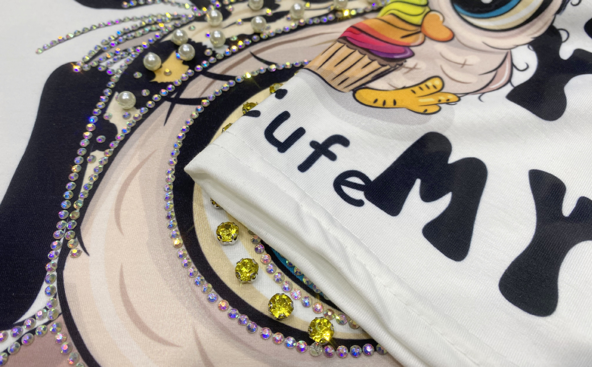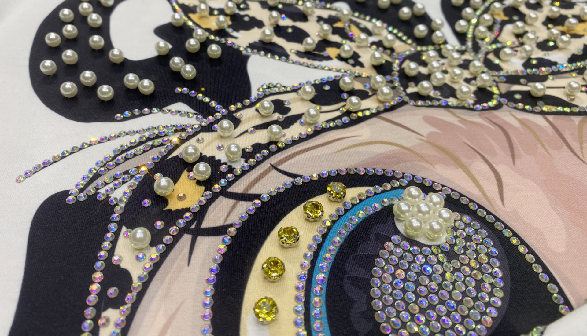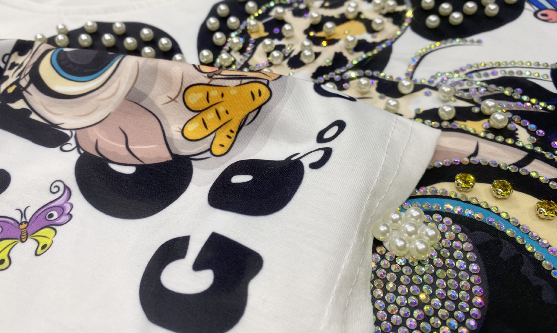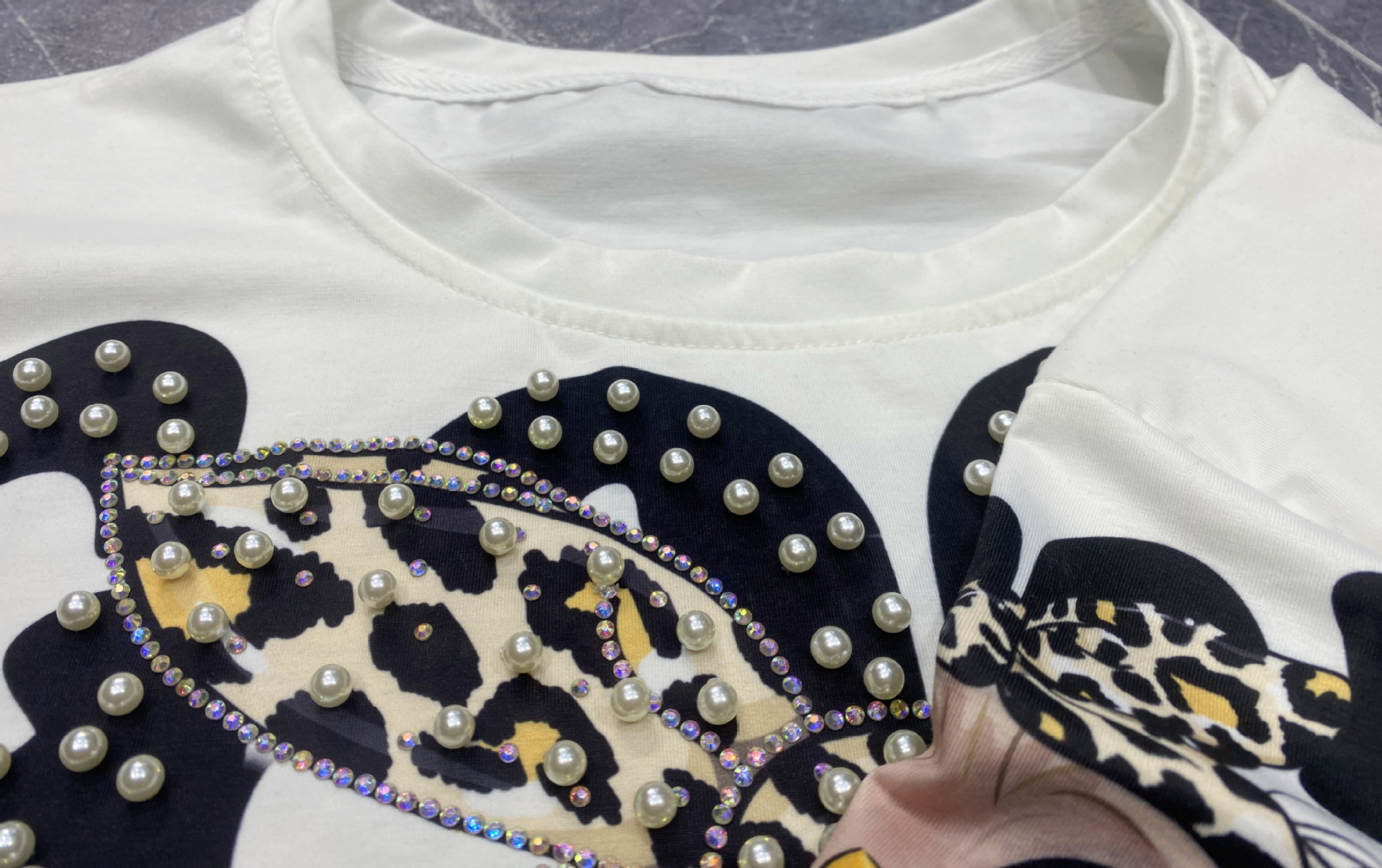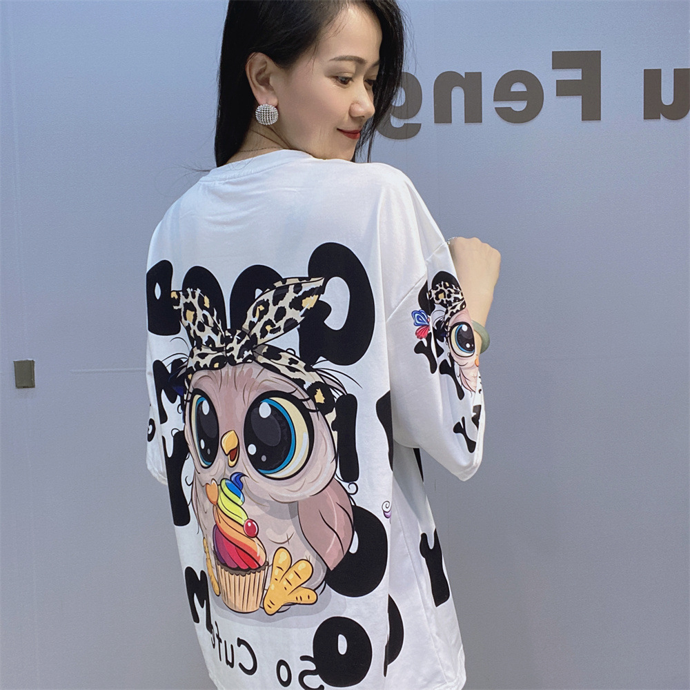 대외 무역 국경 패션 새로운 라운드 넥 반팔 티셔츠 여성 여름 2025 새로운 느슨한 중공업 플래시 다이아몬드 반소매 탑스토어 가기