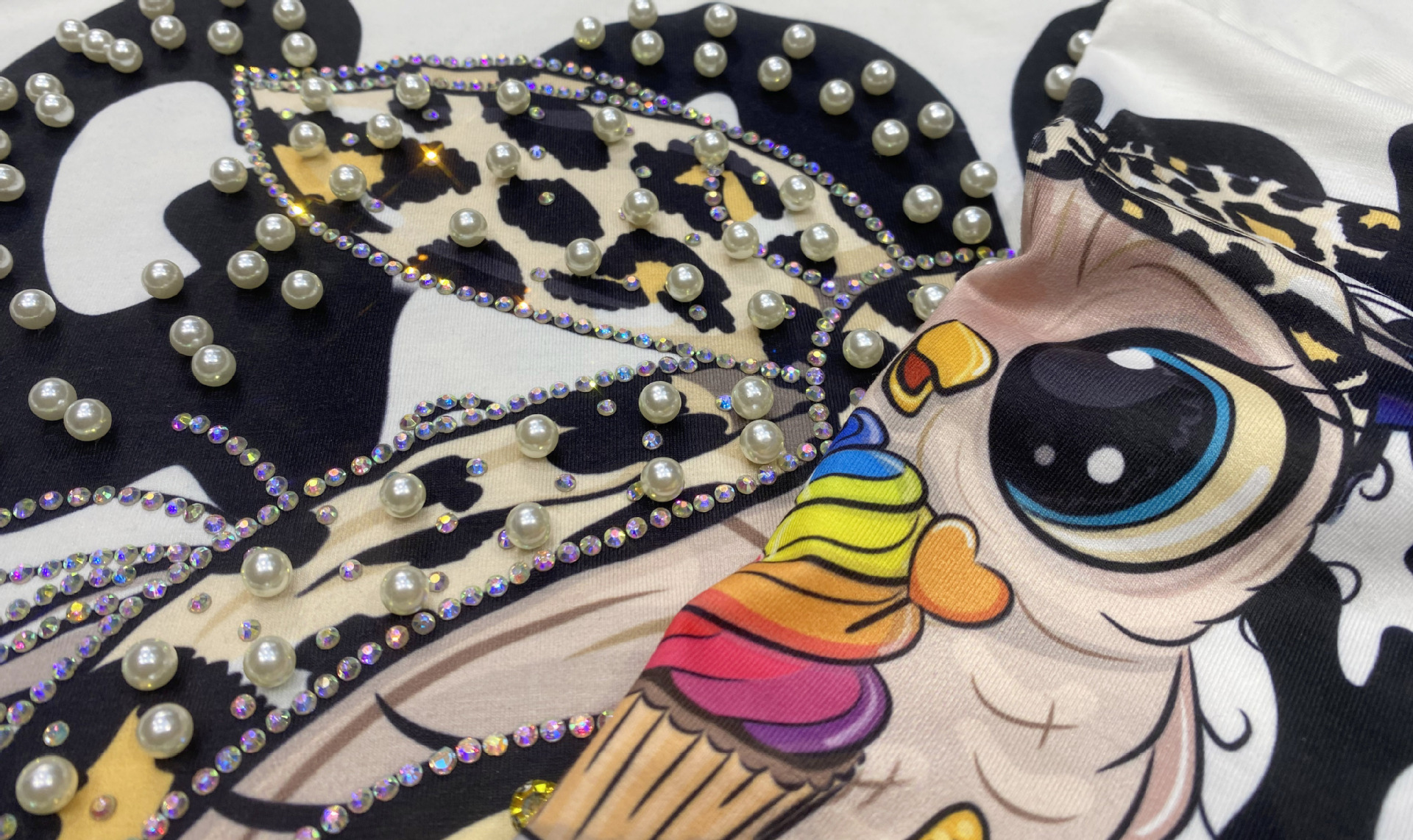 대외 무역 국경 패션 새로운 라운드 넥 반팔 티셔츠 여성 여름 2025 새로운 느슨한 중공업 플래시 다이아몬드 반소매 탑