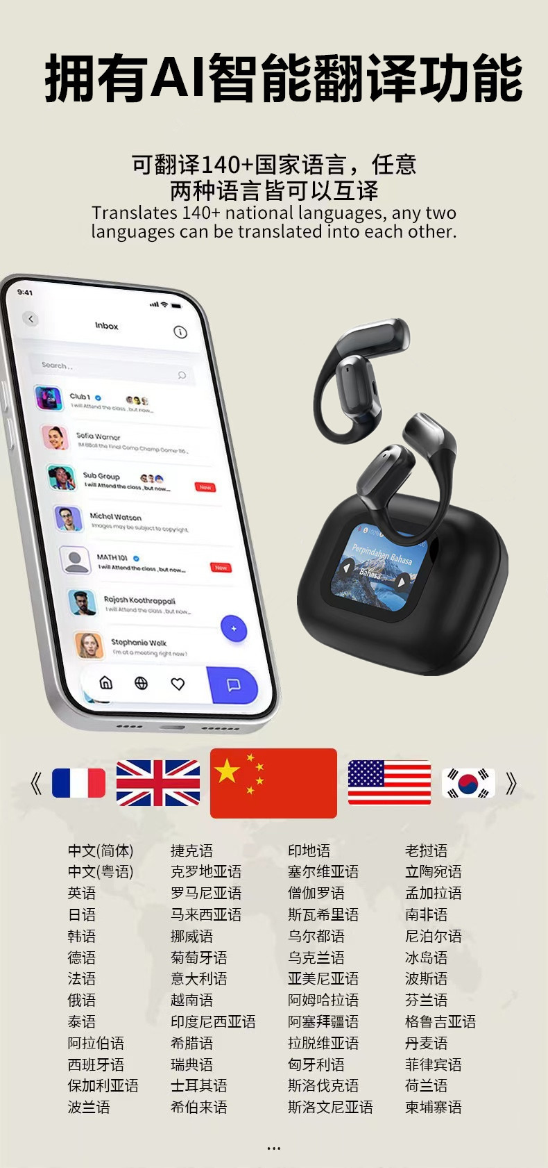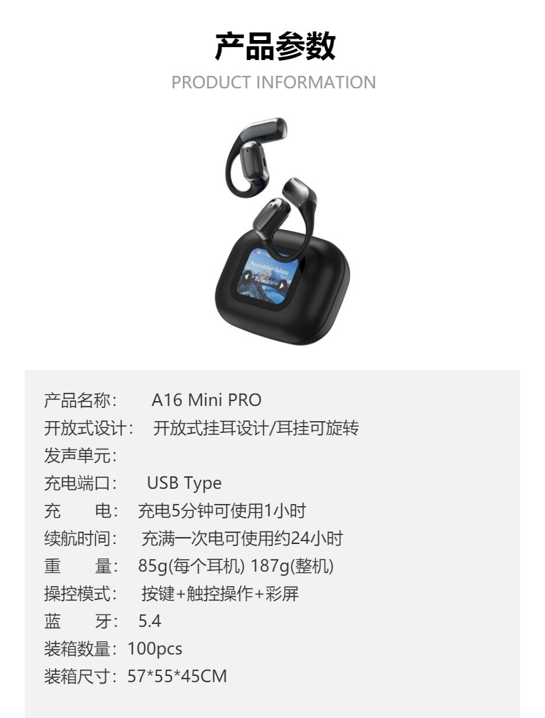Ai 번역 스마트 컬러 스크린 골전도 블루투스 헤드셋 고품질 A16 미니 프로 무선 소음 감소 헤드셋