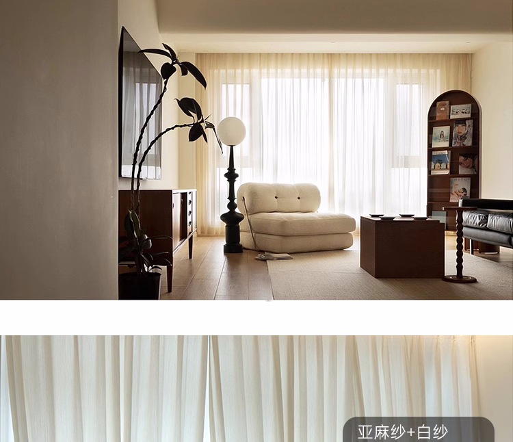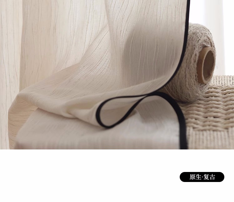 푸펑 원사 투명 불투명 린넨 커튼 창 화면 발코니 거실 로그 골동품 검은 가장자리 완성 된 거즈 커튼