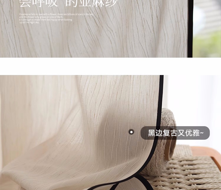 푸펑 원사 투명 불투명 린넨 커튼 창 화면 발코니 거실 로그 골동품 검은 가장자리 완성 된 거즈 커튼스토어 가기