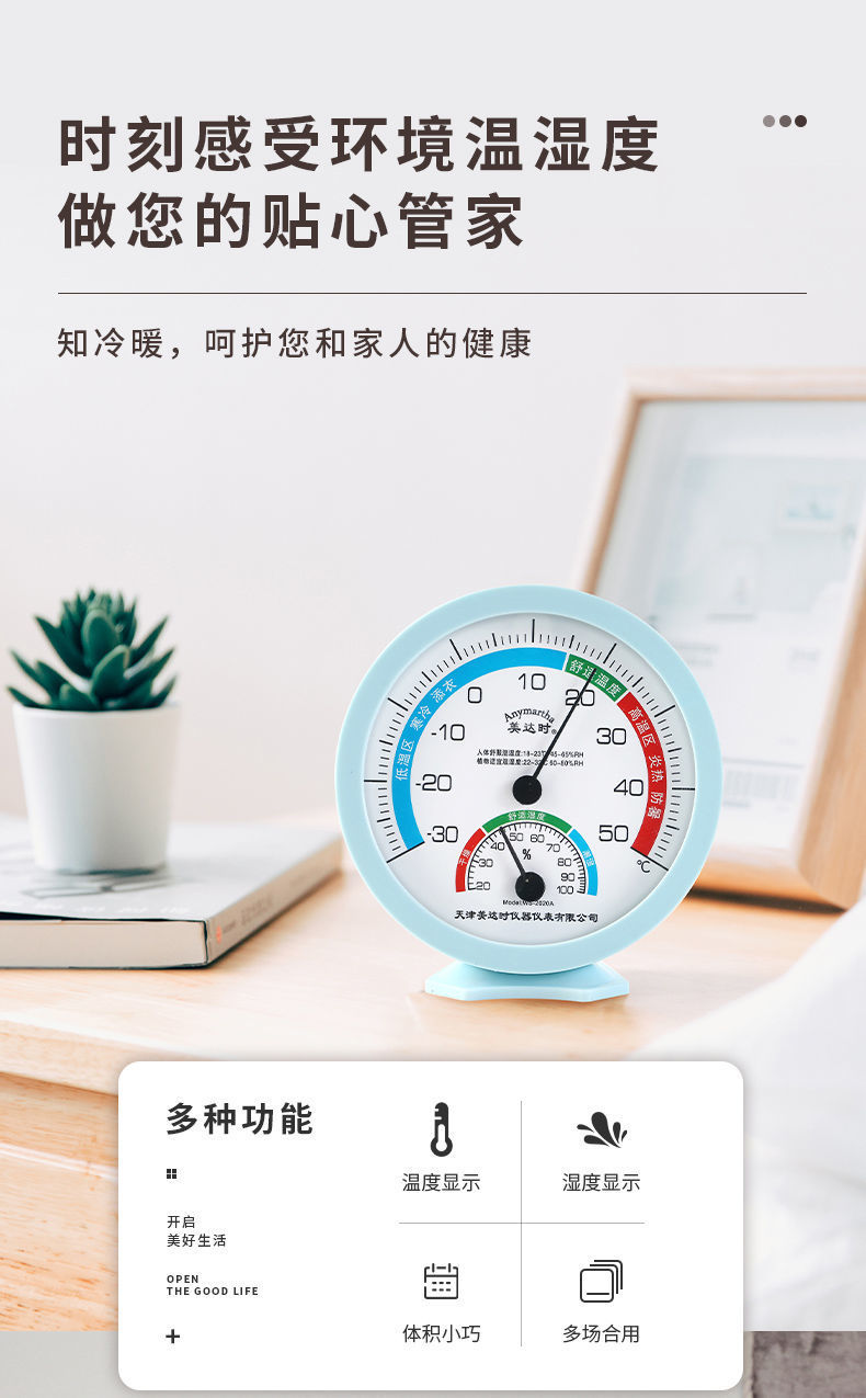 Meida 시간 온도 및 습도계 홈 벽걸이 데스크탑 베이비 룸 약국 온실 실내 고정밀 온도계스토어 가기
