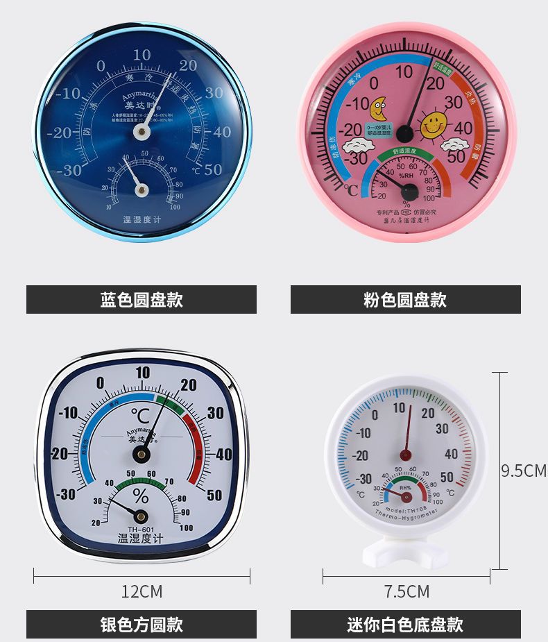 Meida 시간 온도 및 습도계 홈 벽걸이 데스크탑 베이비 룸 약국 온실 실내 고정밀 온도계