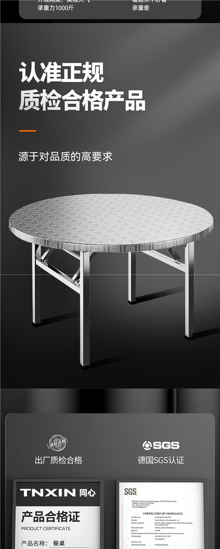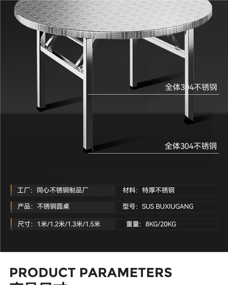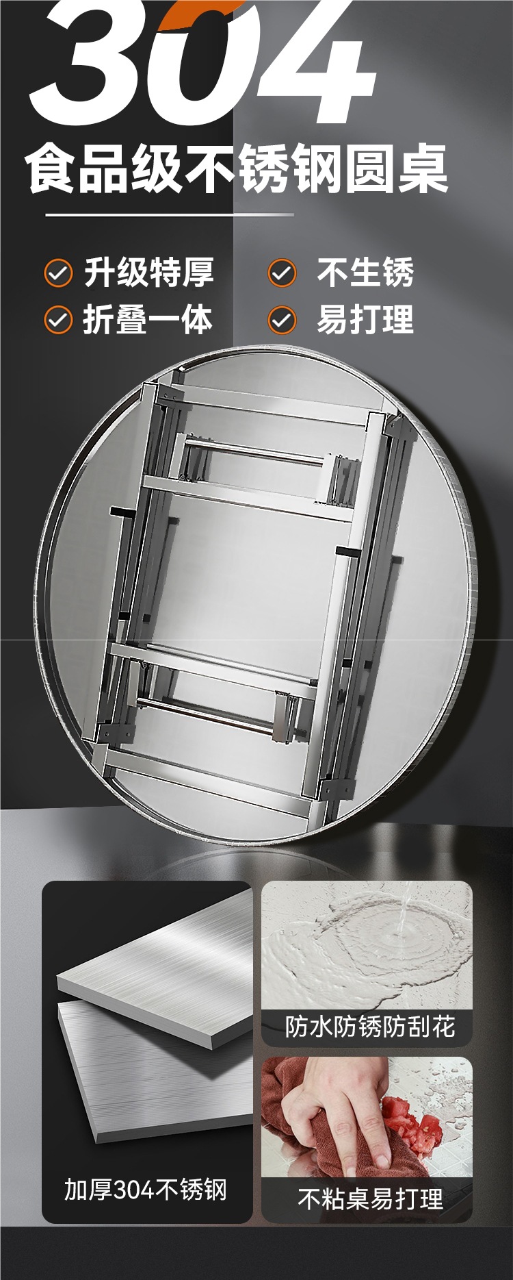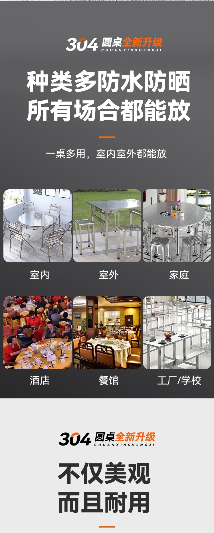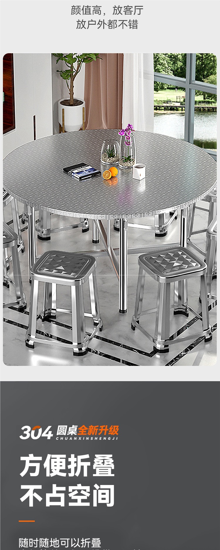 304 스테인레스 스틸 접이식 라운드 테이블 야외 거실 경제적 인 가구 식당 테이블 임대 룸 다이닝 라운드 테이블