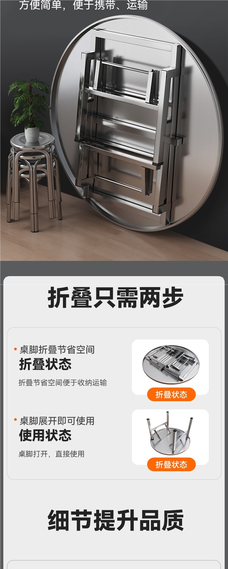 304 스테인레스 스틸 접이식 라운드 테이블 야외 거실 경제적 인 가구 식당 테이블 임대 룸 다이닝 라운드 테이블스토어 가기