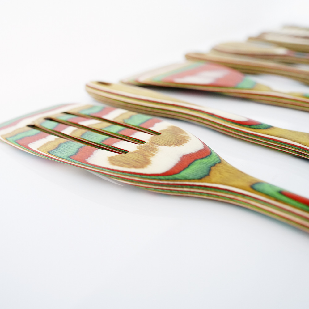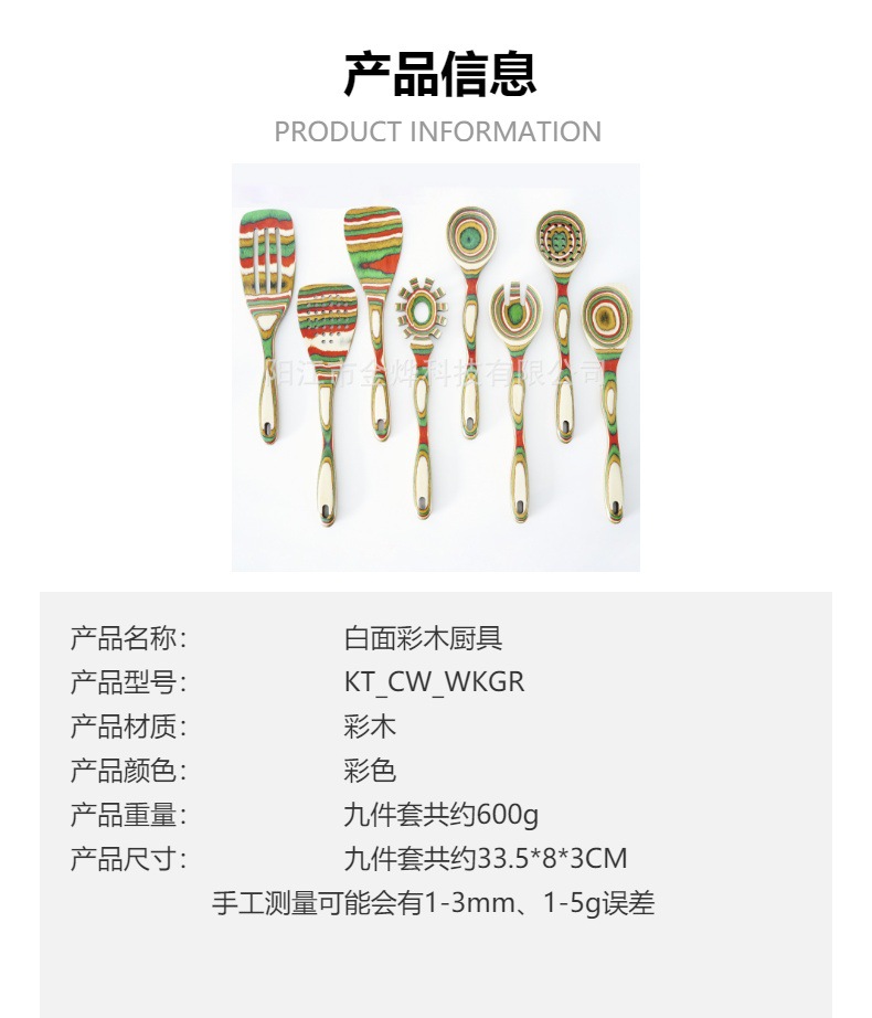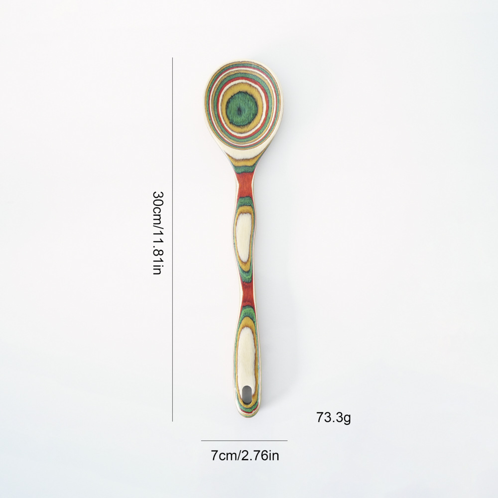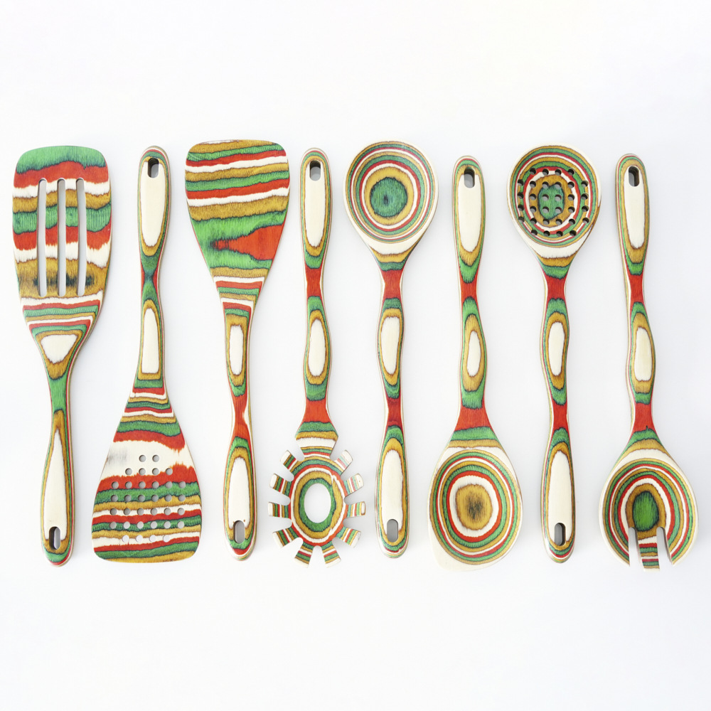 아마존 뜨거운 판매 다채로운 나무 스페이드 스푼 다채로운 나무 주방용품 9 조각 세트 환경 친화적 인 나무 주방용품 창조적 인 디자인 요리 도구