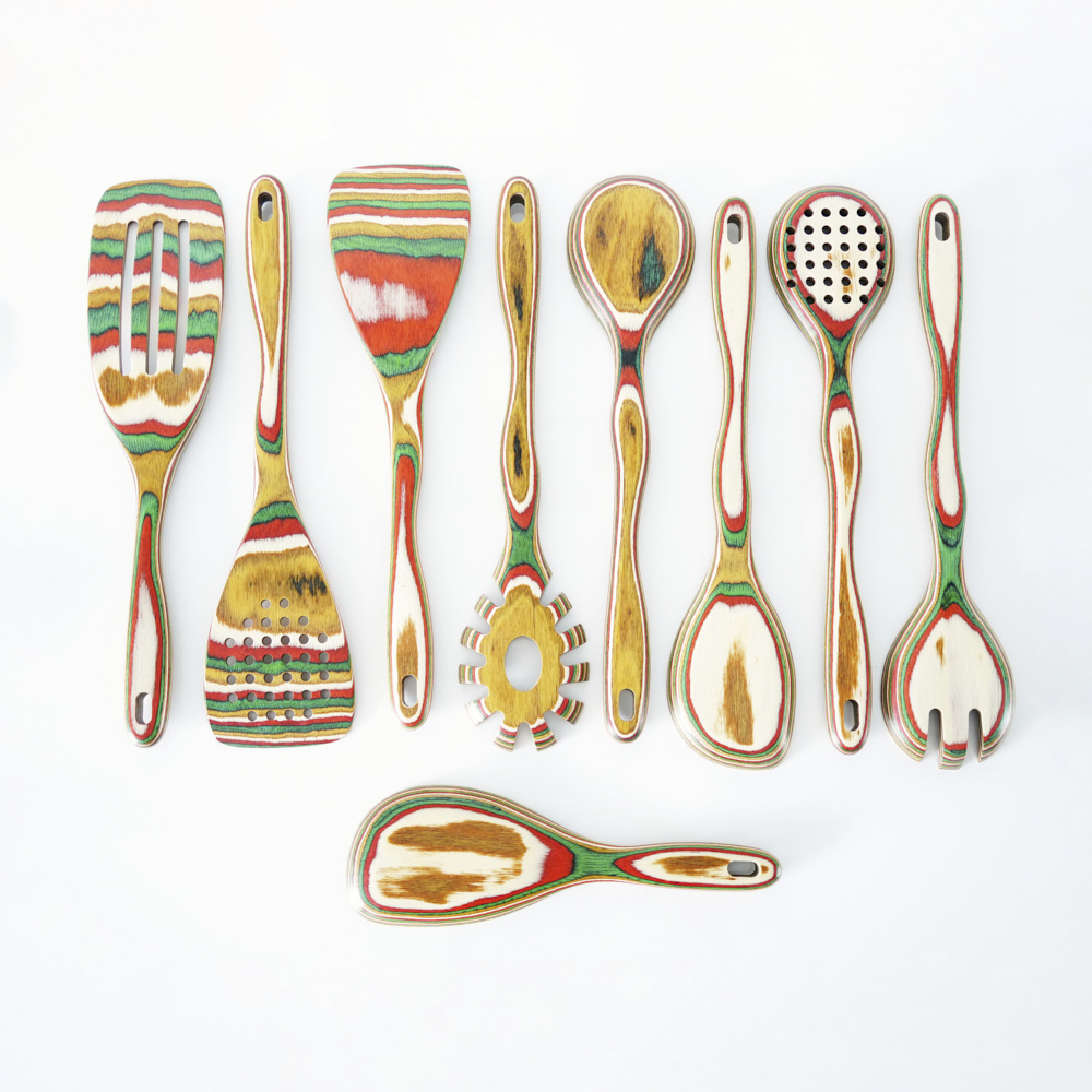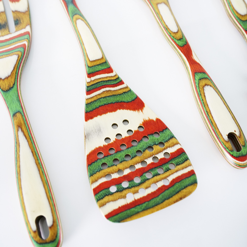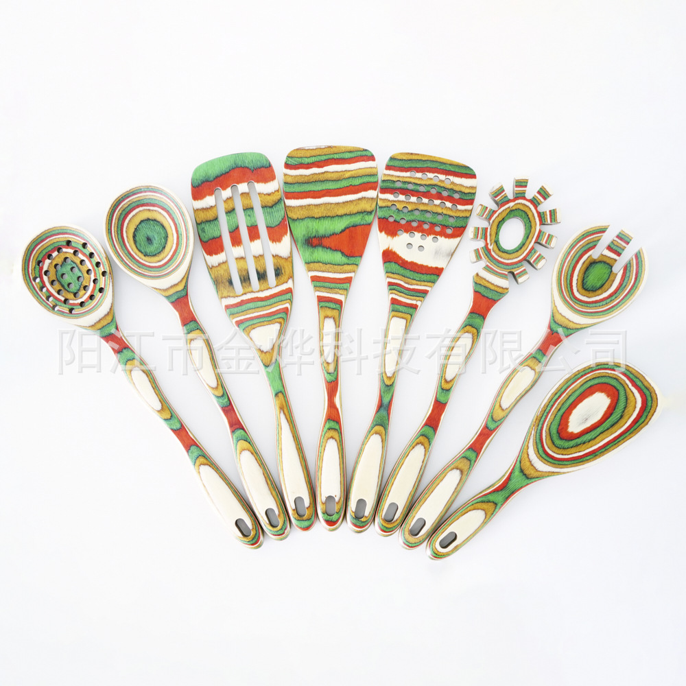 아마존 뜨거운 판매 다채로운 나무 스페이드 스푼 다채로운 나무 주방용품 9 조각 세트 환경 친화적 인 나무 주방용품 창조적 인 디자인 요리 도구스토어 가기
