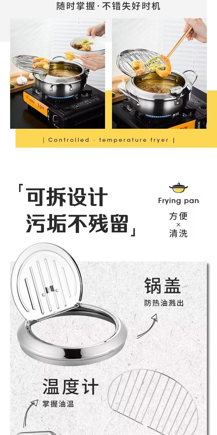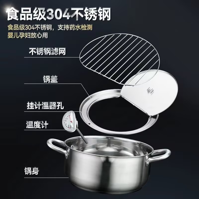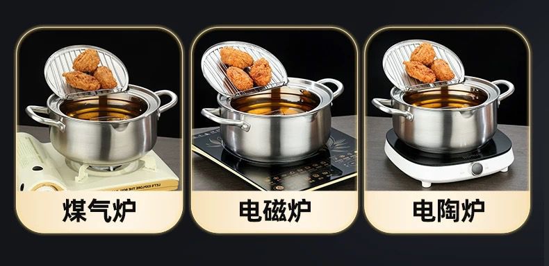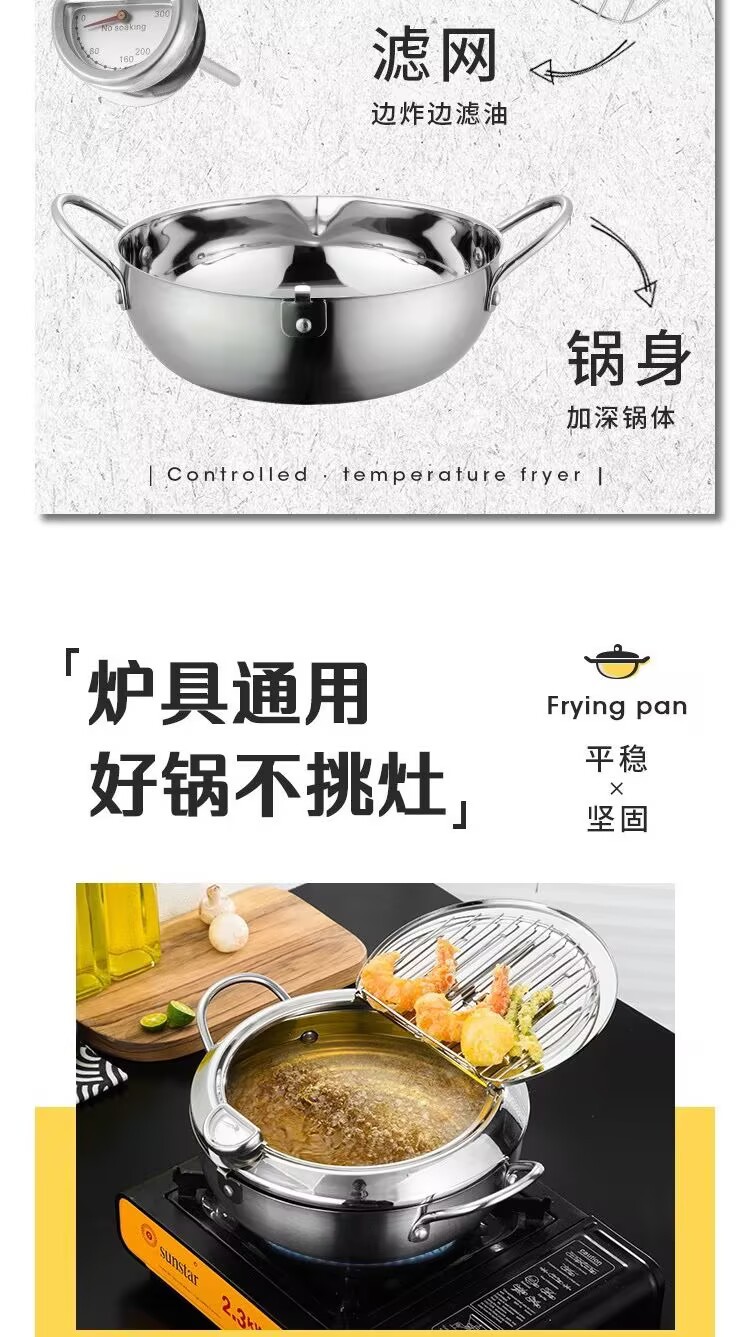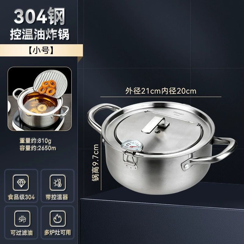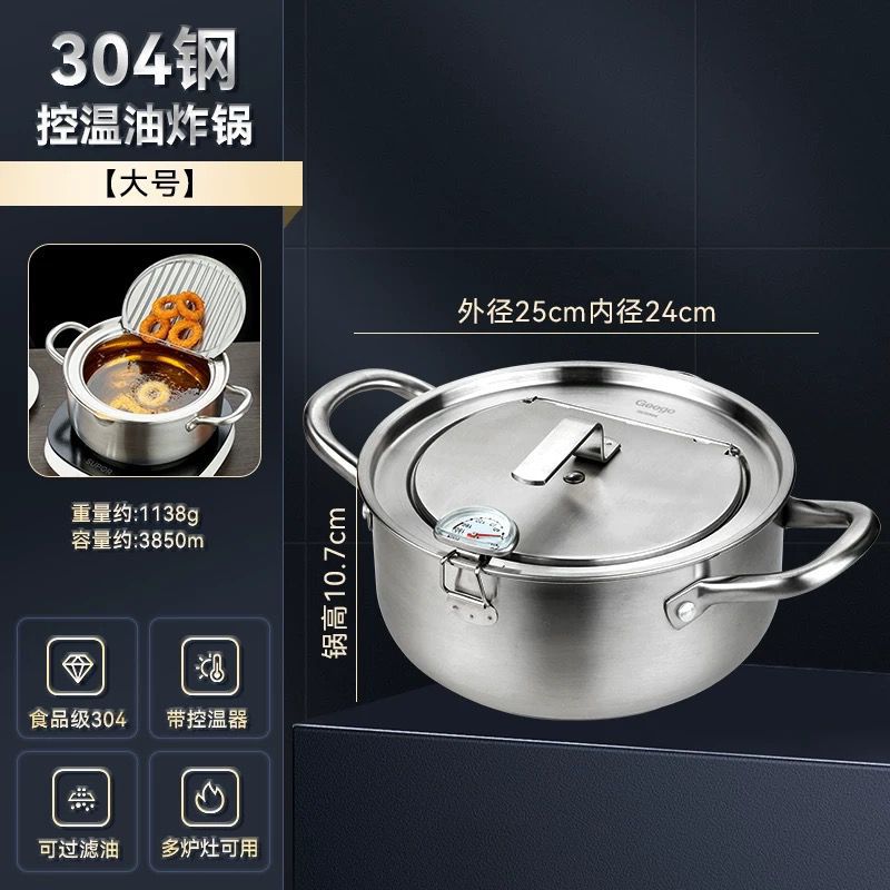 국경 304 온도계 프라이어 프레임 온도 제어 작은 프라이어 수프 냄비 를 가진 일본 튀김 스테인리스 화합물 바닥 프라이어스토어 가기