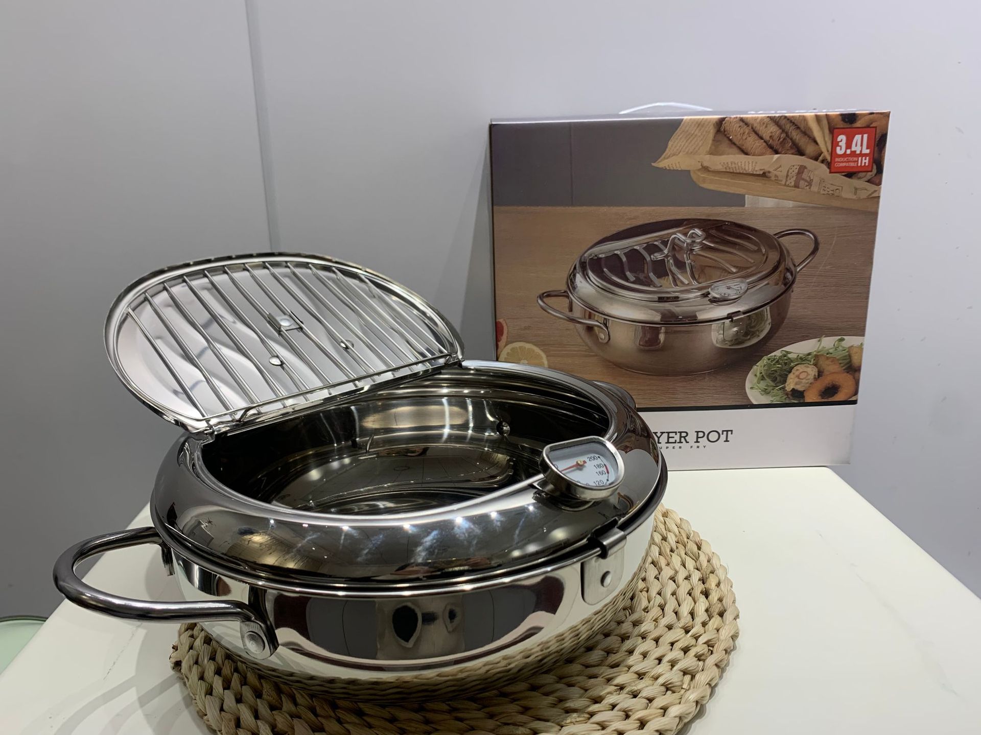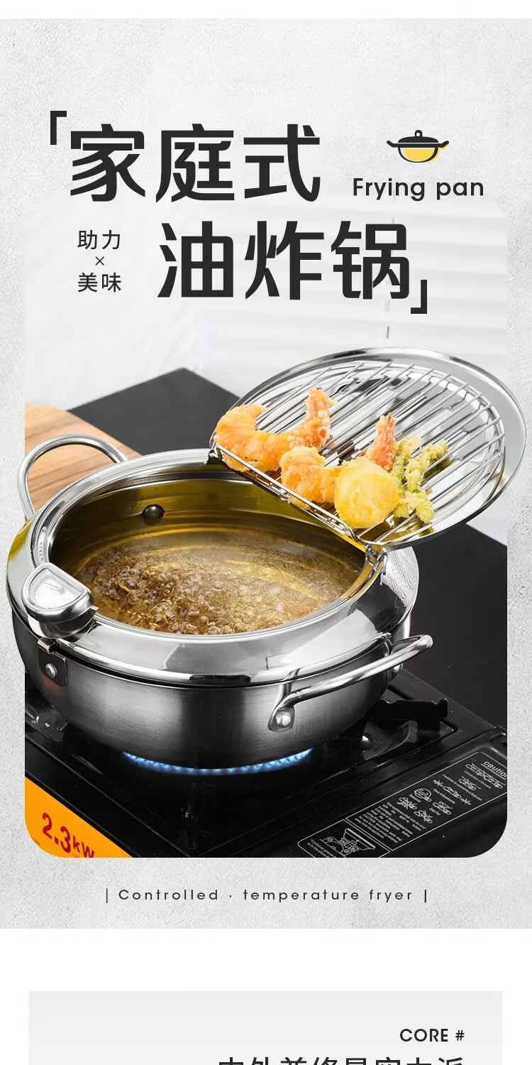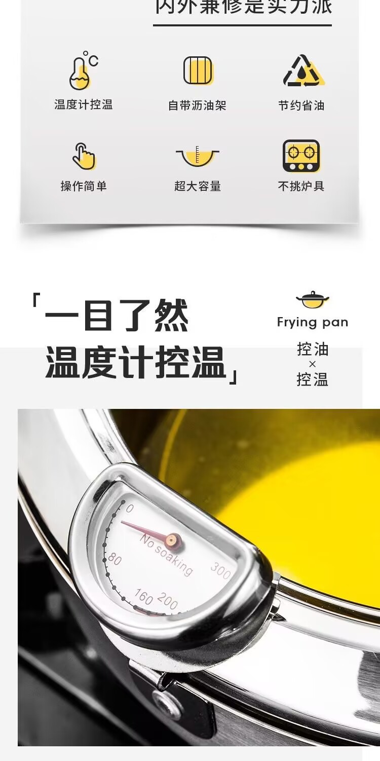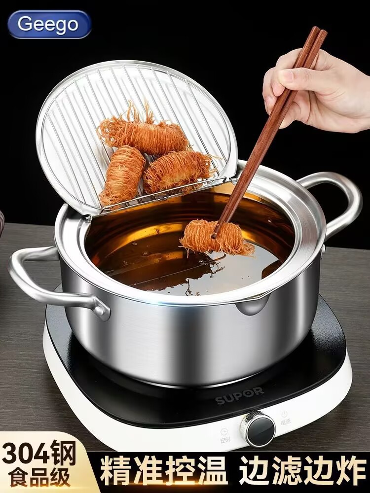 국경 304 온도계 프라이어 프레임 온도 제어 작은 프라이어 수프 냄비 를 가진 일본 튀김 스테인리스 화합물 바닥 프라이어스토어 가기