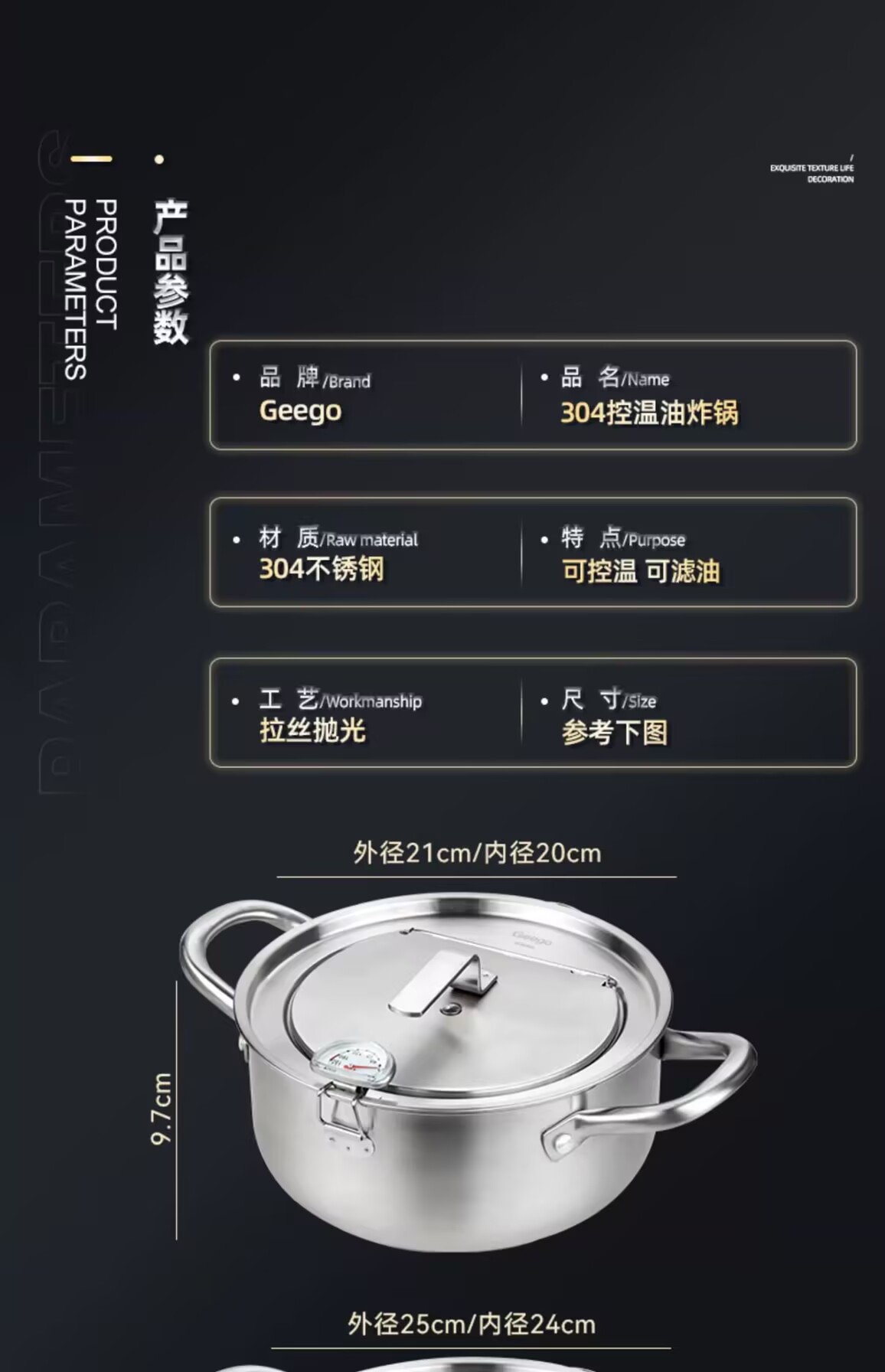 • 20CM304 소재 일본식 튀김기 (뚜껑 압연 버전)