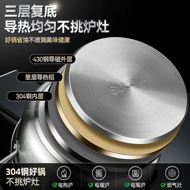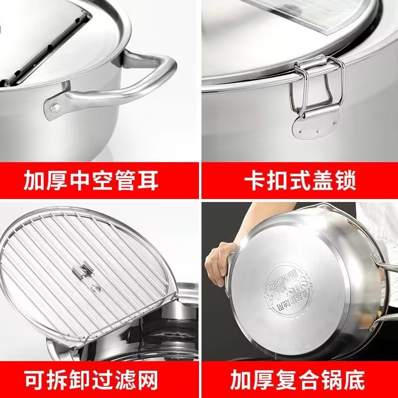 국경 304 온도계 프라이어 프레임 온도 제어 작은 프라이어 수프 냄비 를 가진 일본 튀김 스테인리스 화합물 바닥 프라이어