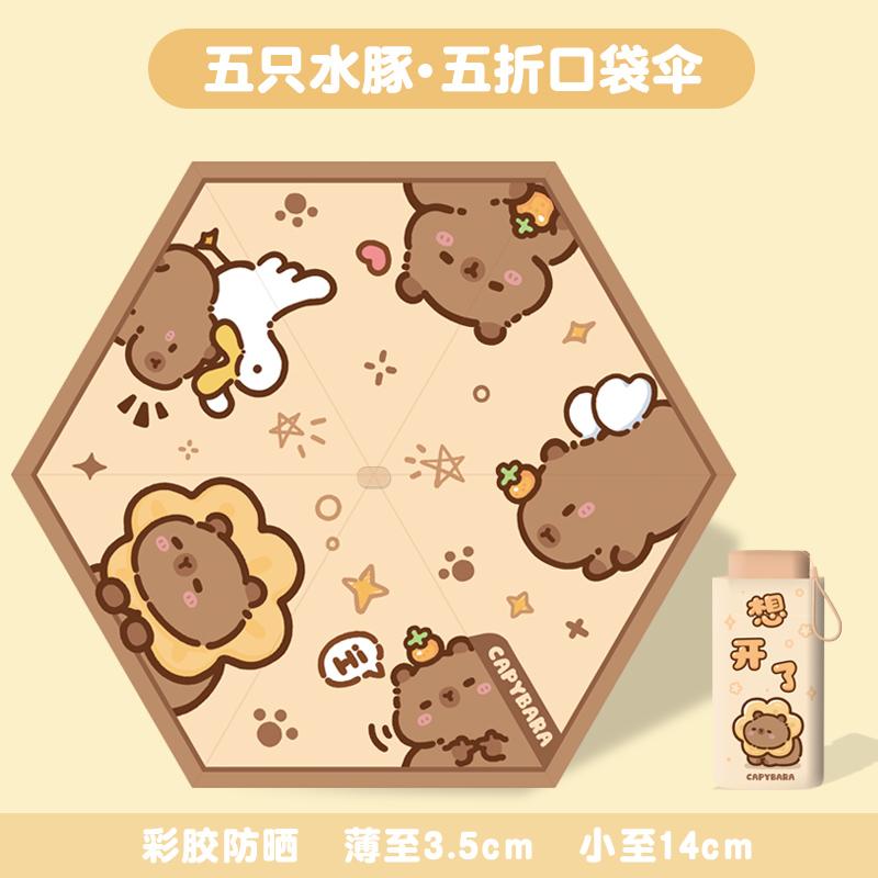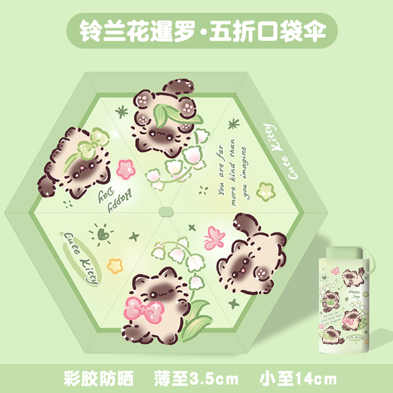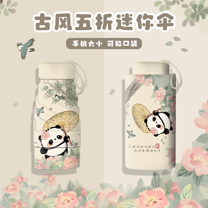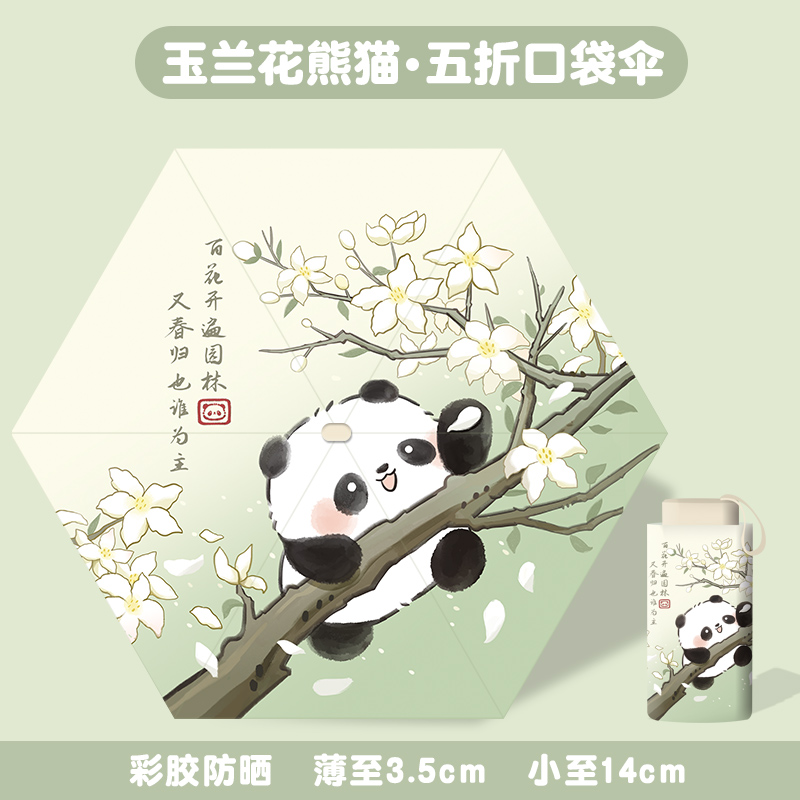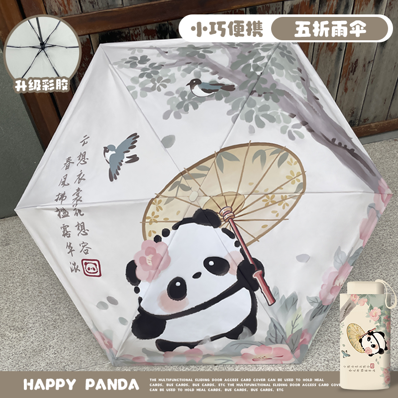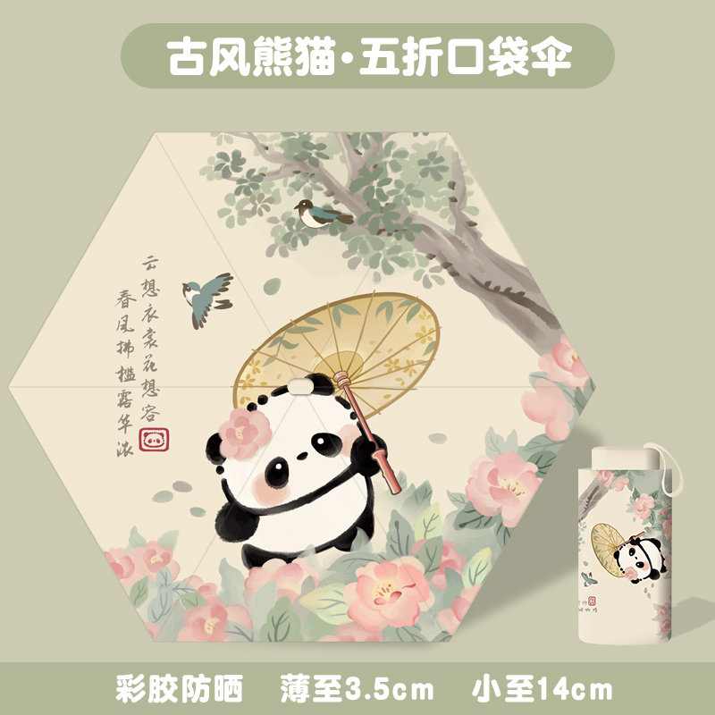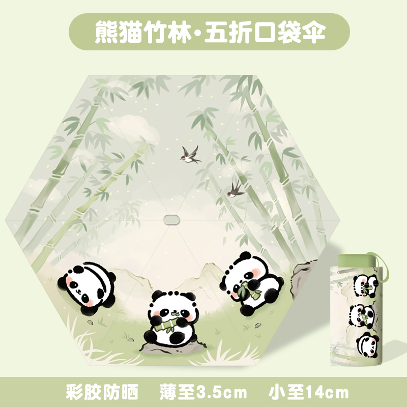 3YK 골동품 팬더 어린이 접는 우산 작은 휴대용 초등학교 우산 수동 포켓 너무스토어 가기