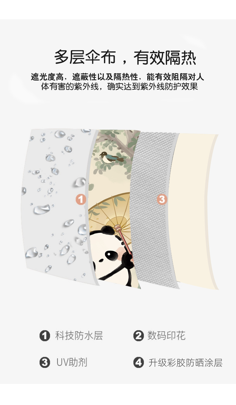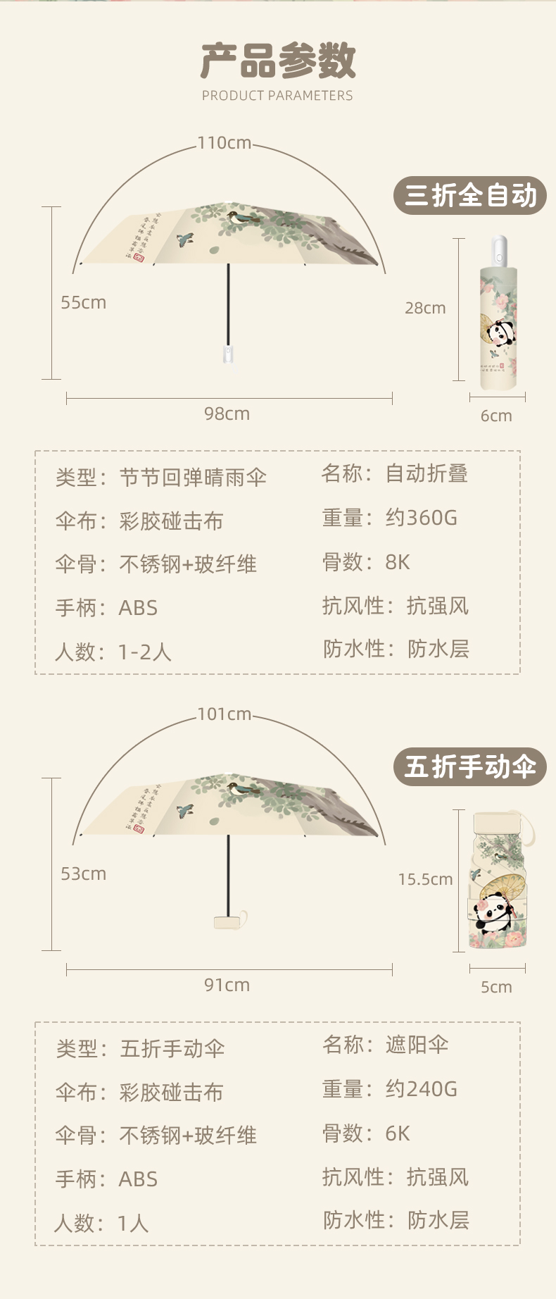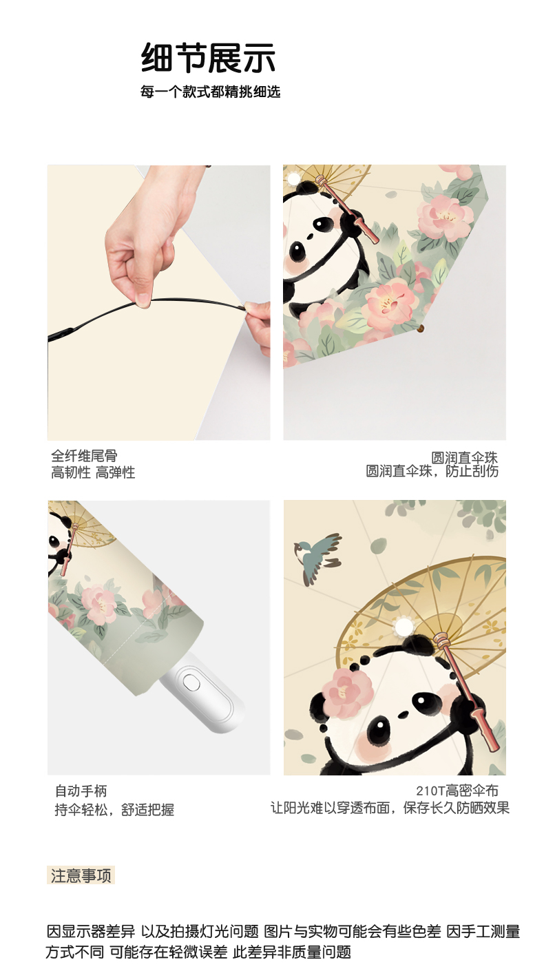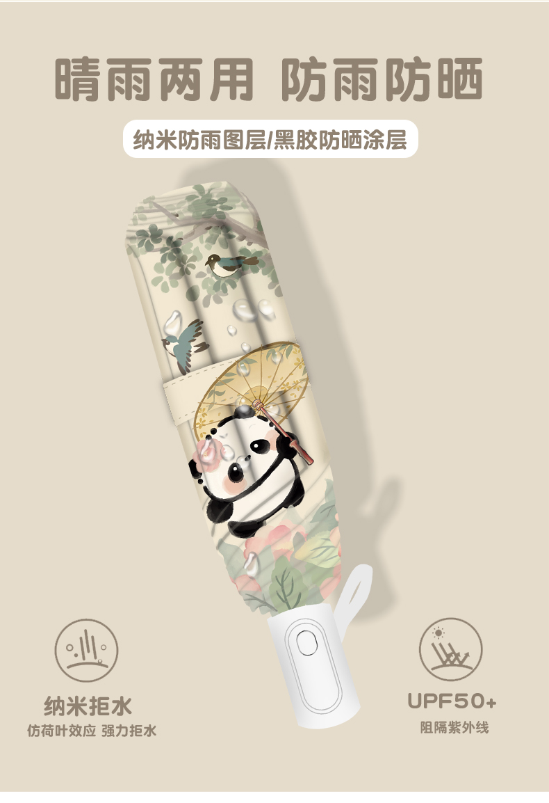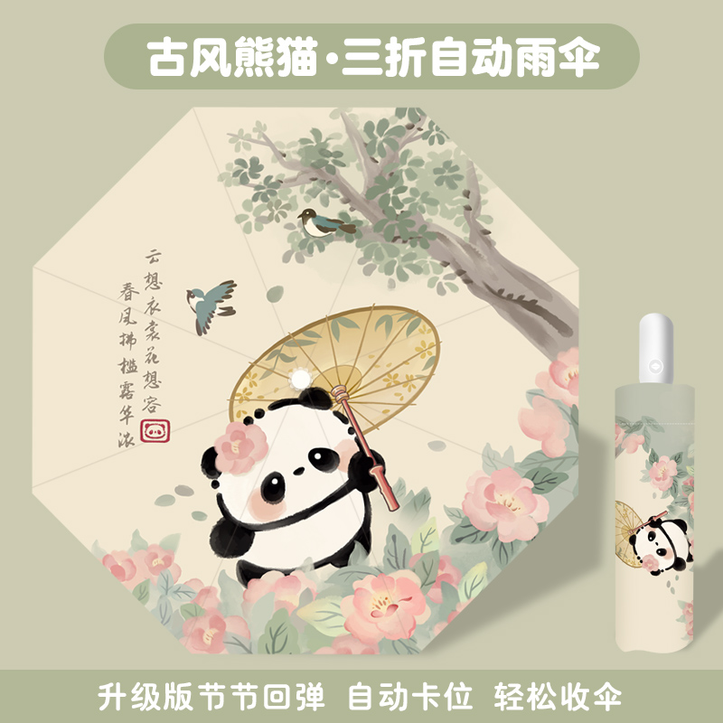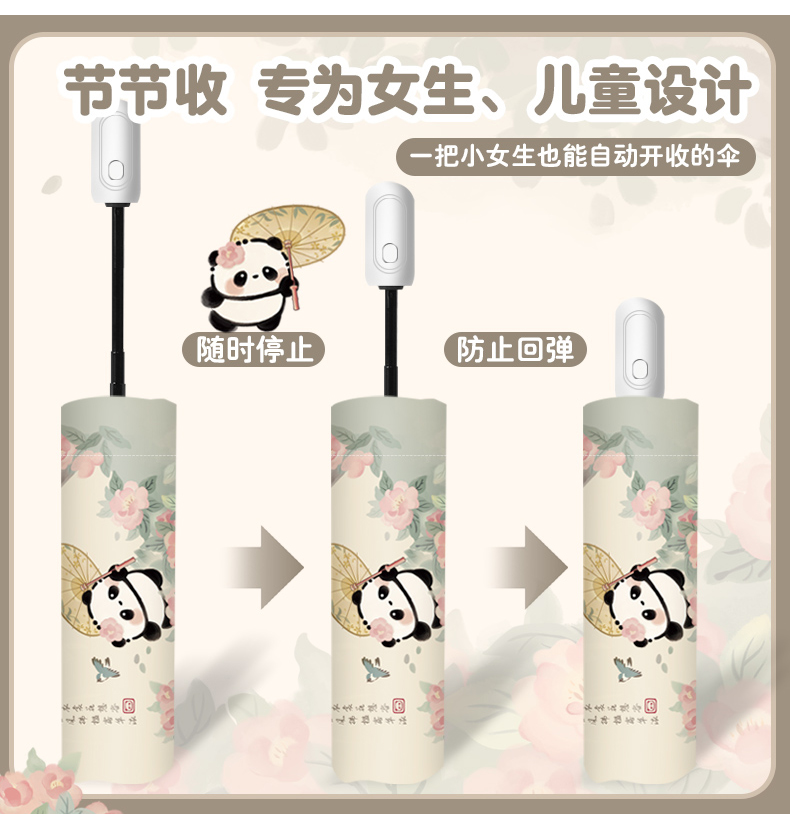 3YK 골동품 팬더 어린이 접는 우산 작은 휴대용 초등학교 우산 수동 포켓 너무