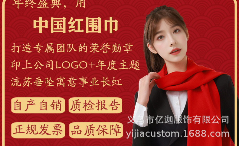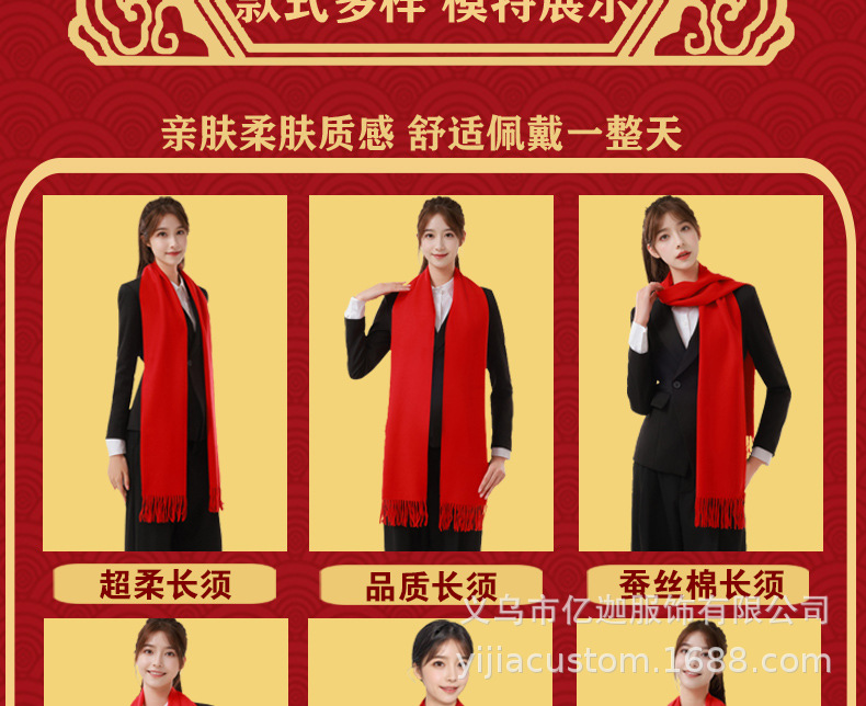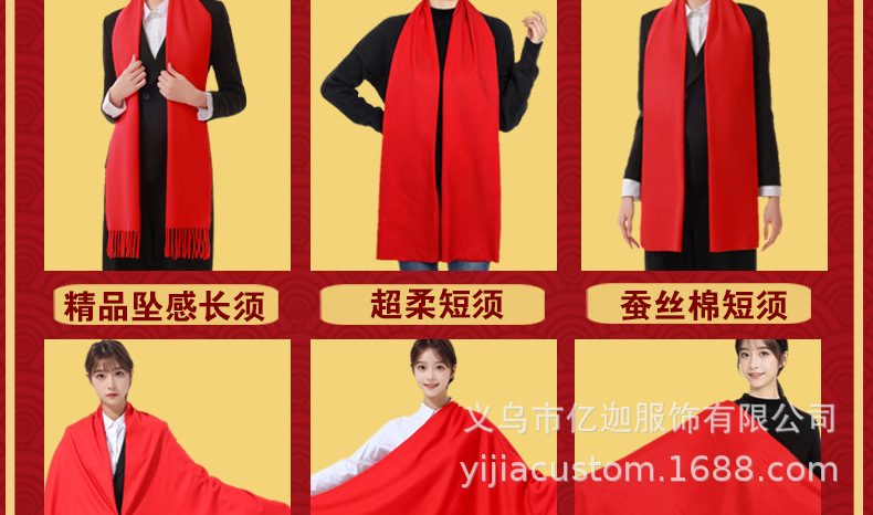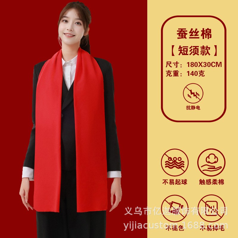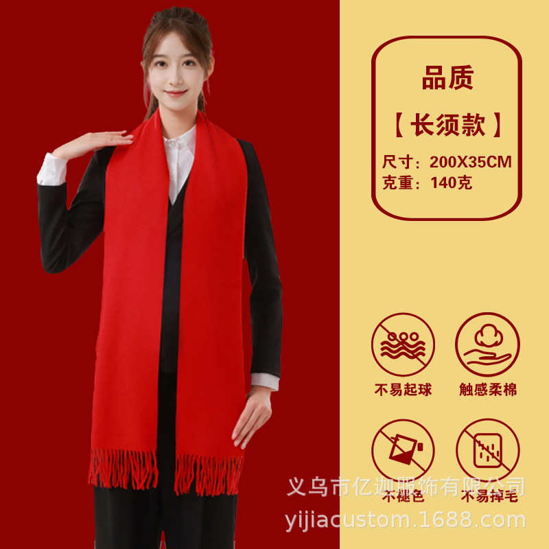 뱀 도매 중국 빨간 스카프 맞춤형 회사 연례 회의 인쇄 로고 자수 겨울 따뜻한 빨간 스카프의 해 오픈