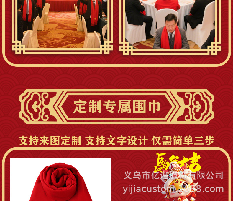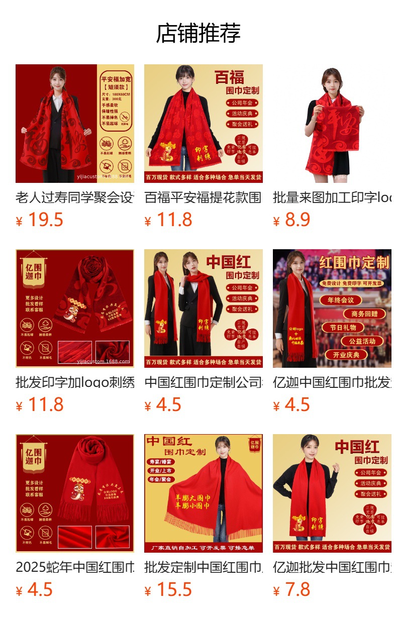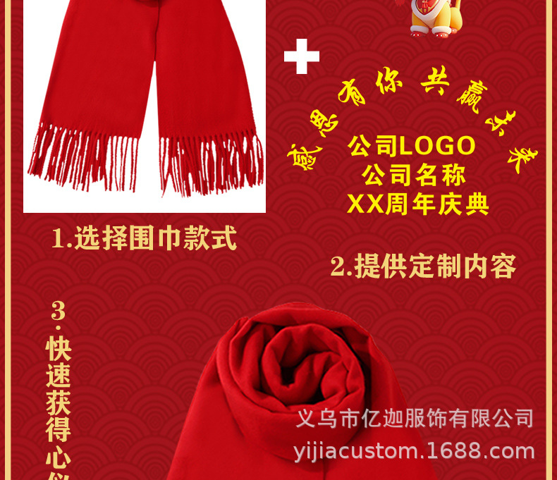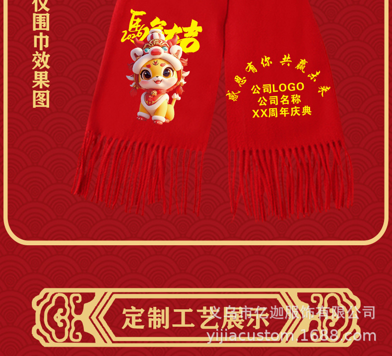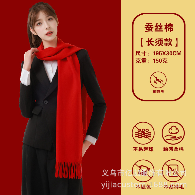 뱀 도매 중국 빨간 스카프 맞춤형 회사 연례 회의 인쇄 로고 자수 겨울 따뜻한 빨간 스카프의 해 오픈스토어 가기